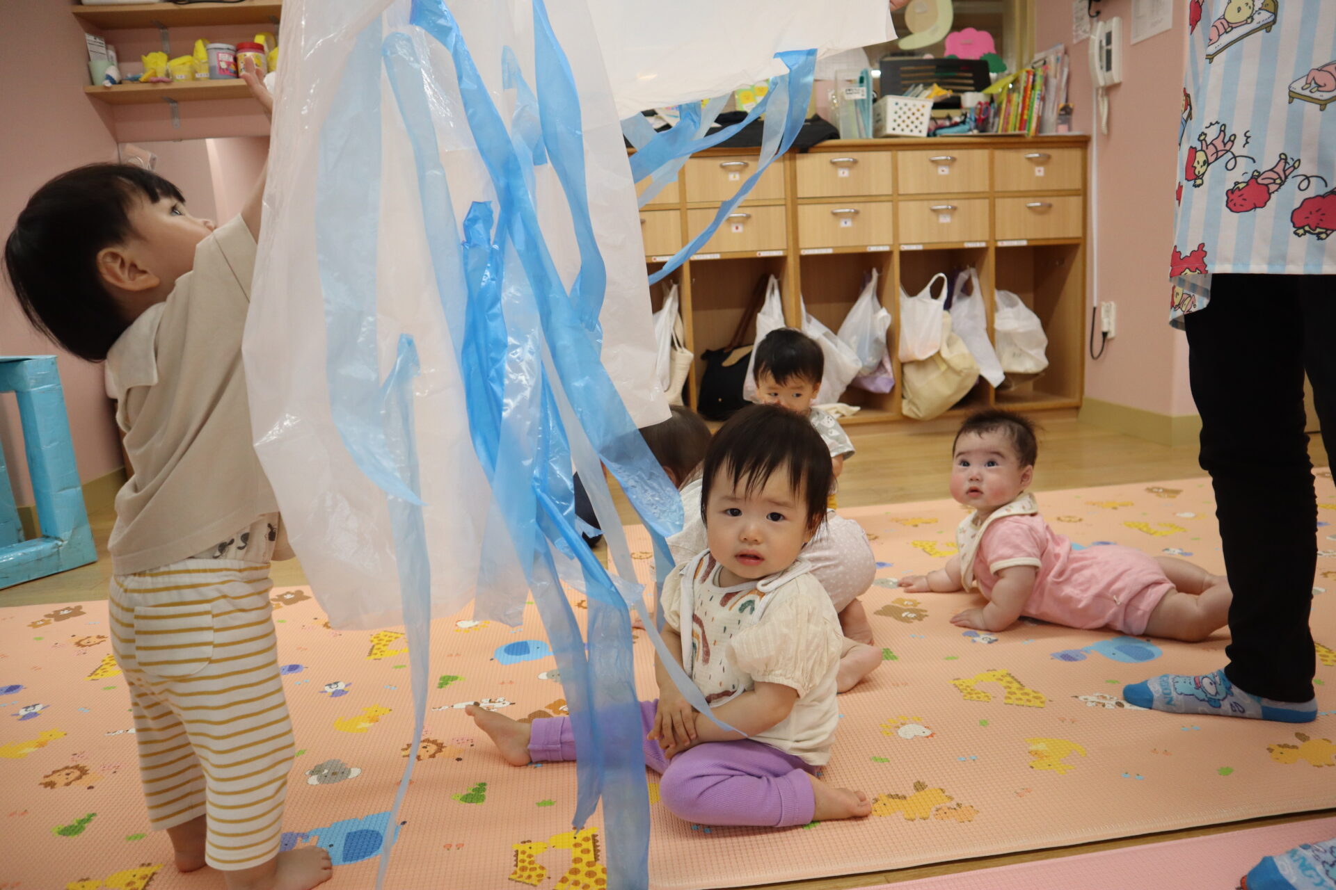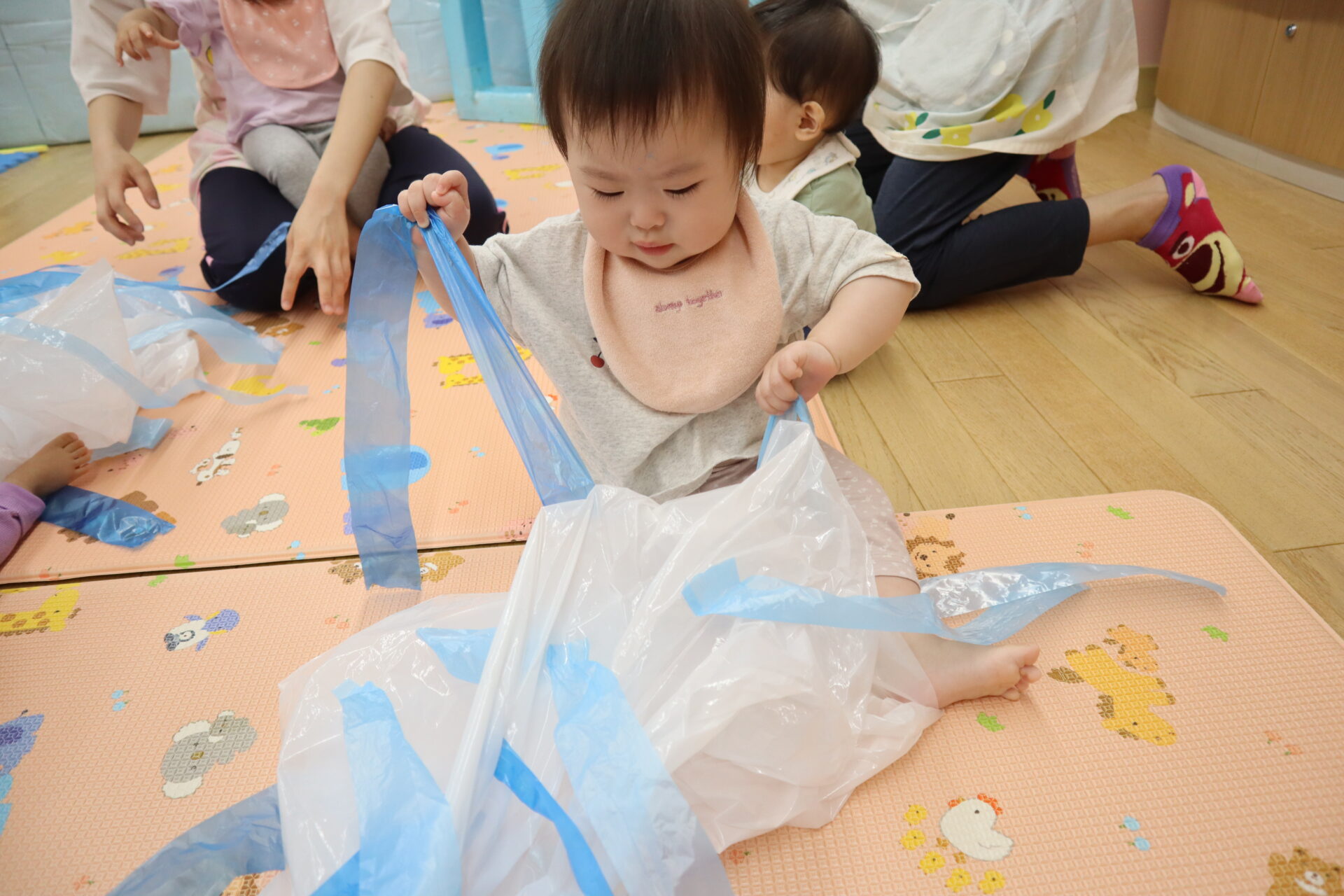 先日ビニール袋を使って遊んだので、子ども達の遊んでいる様子をお伝えします。