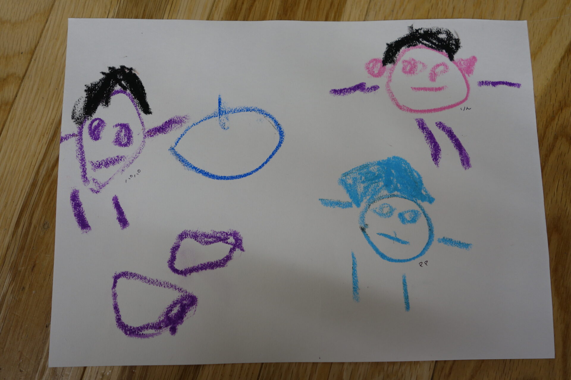 「リレーが楽しかった!ママとパパが見ててくれた!青い丸はバトン。持って走ったから描いたの!」