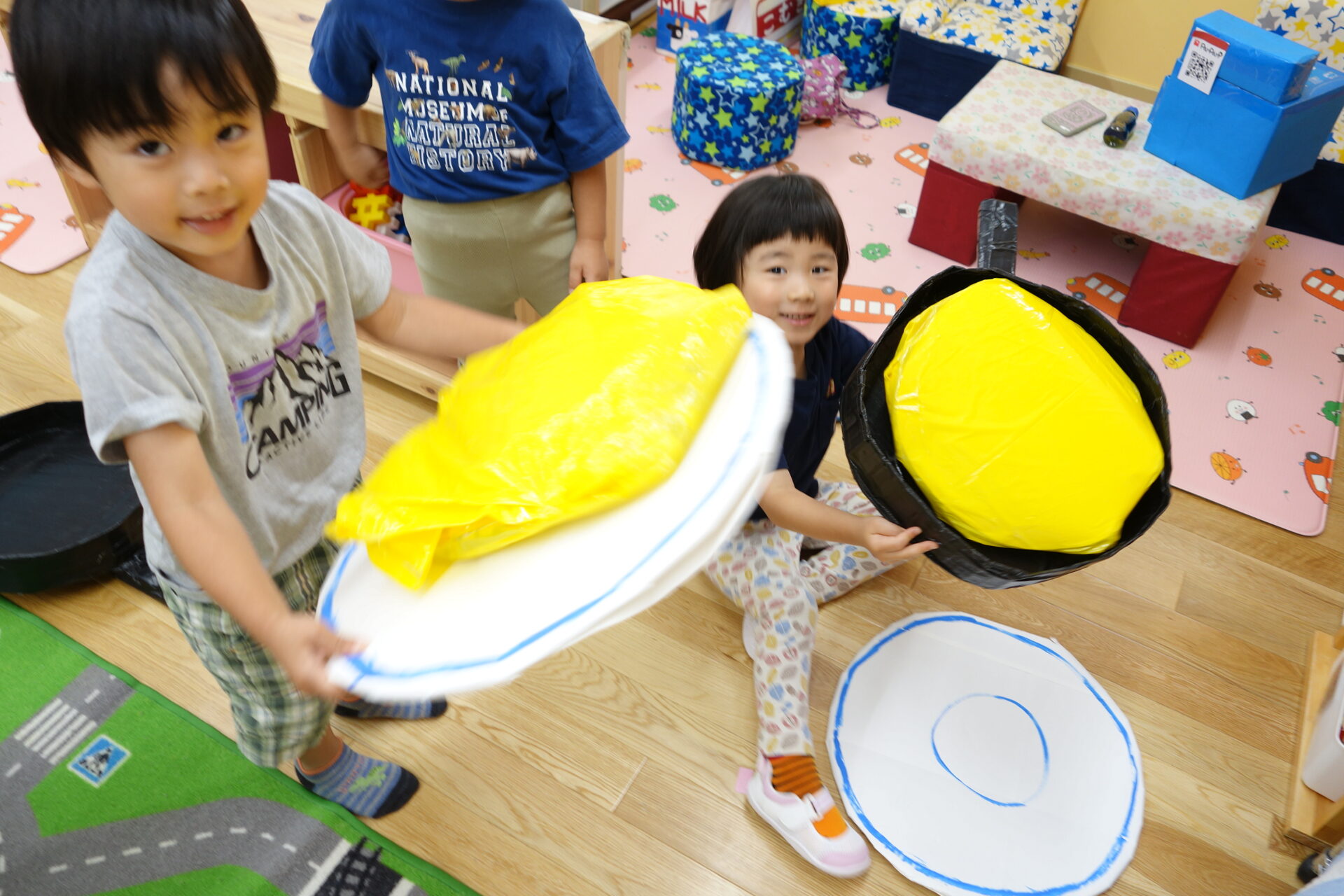 大きいカステラ作れた!と運動会の余韻をままごとコーナーでも楽しむ子ども達でした。