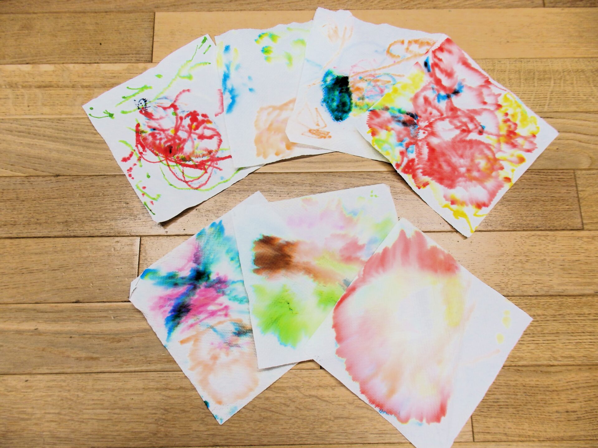 最近はカラーペンや絵の具など様々な道具を活用して絵を描いてきましたが、今回はキッチンペーパーへのお絵描きに挑戦です♬