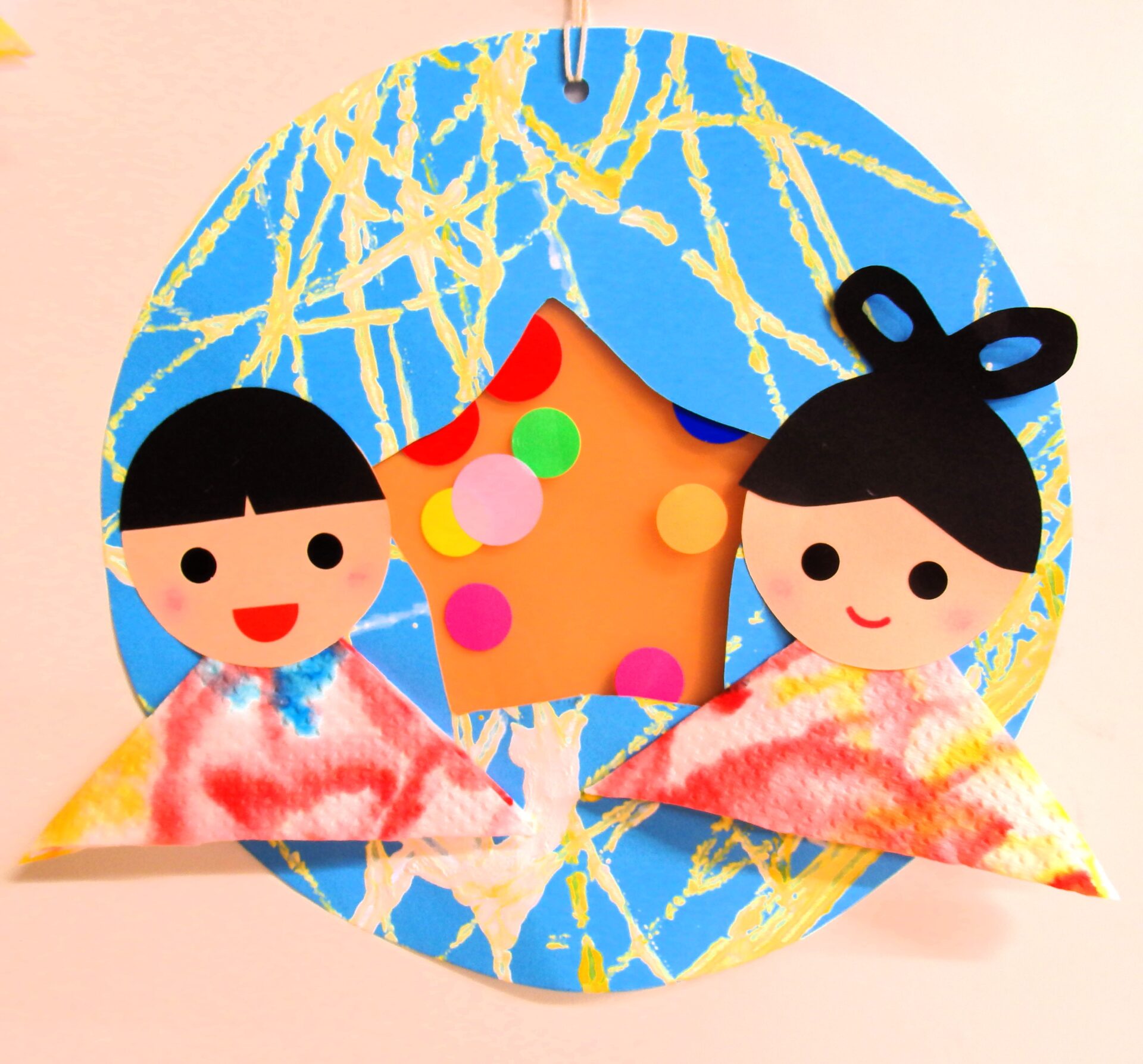 最後に出来上がった材料を組み合わせ、織姫と彦星を貼り付ければ完成です♬