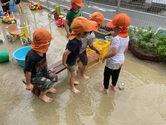 「今日は水遊びする?!」と毎朝の天気を見ながら保育者に尋ねています。