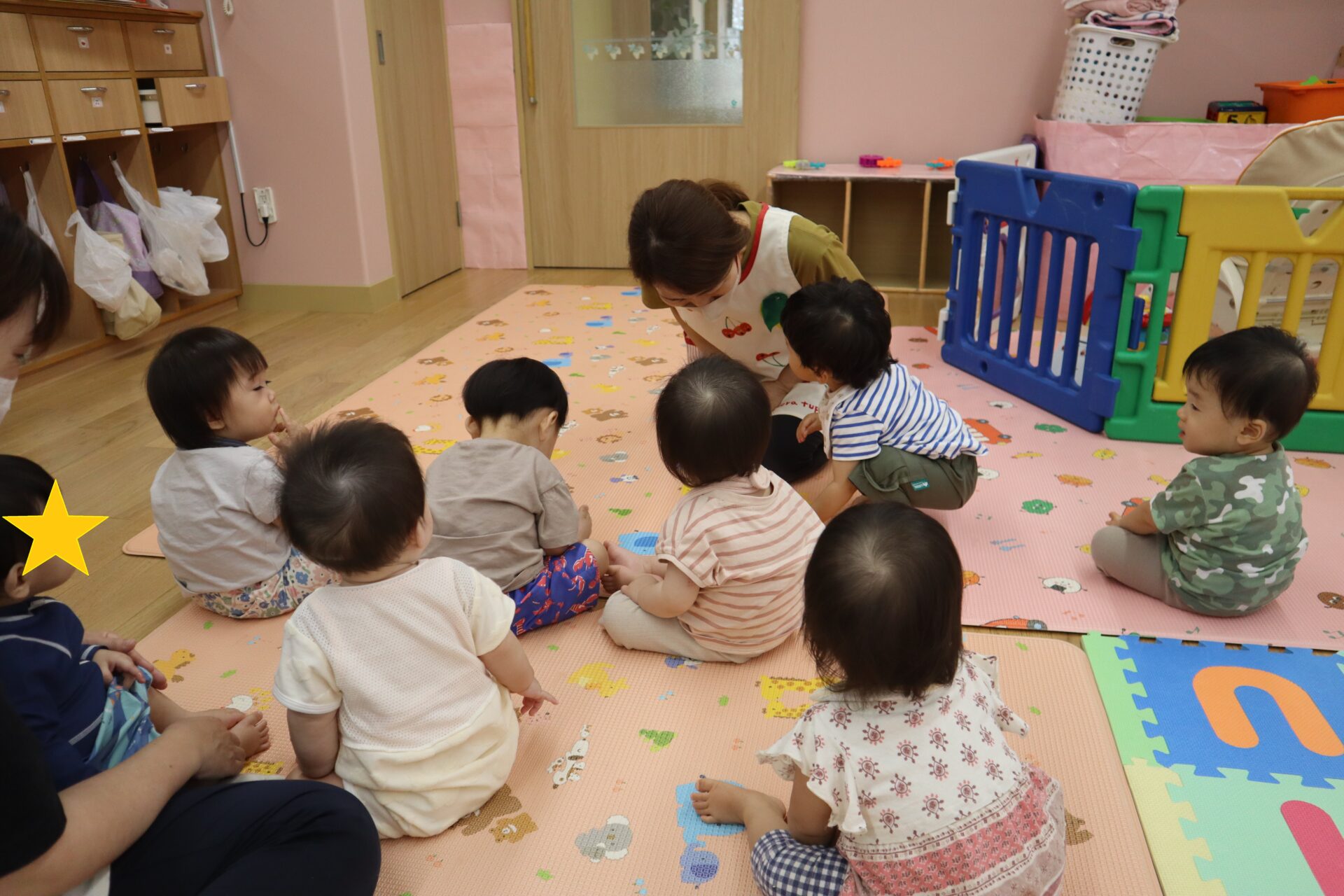 まずは午前の活動です。みんなで集まって、手遊びをしたり歌を歌ったりします。