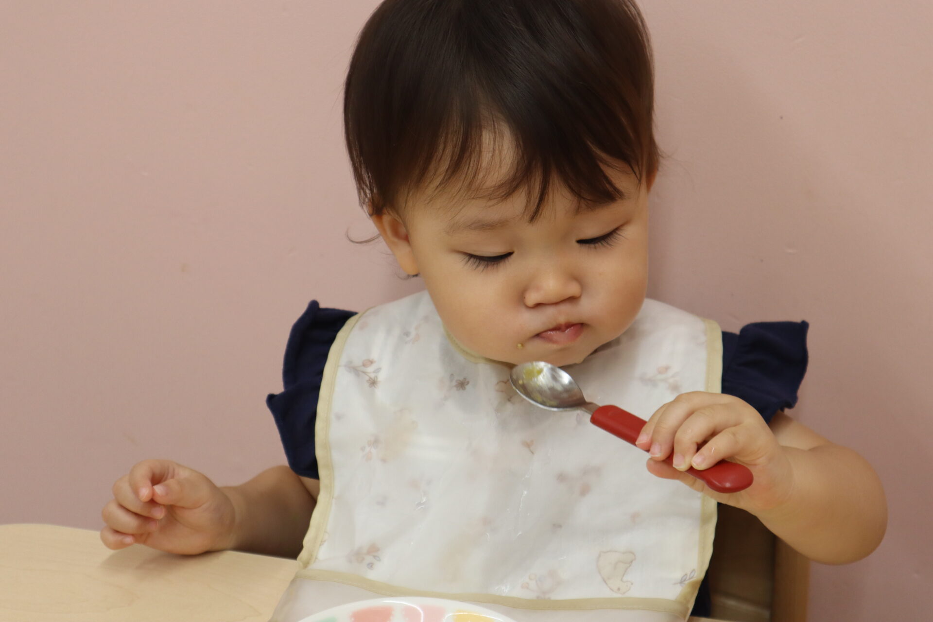 離乳食を食べている子、手掴みで食べる子やスプーンに興味を持ち始めた子など成長がそれぞれ違いますが、みんな給食が大好きで美味しそうに食べてくれます。
