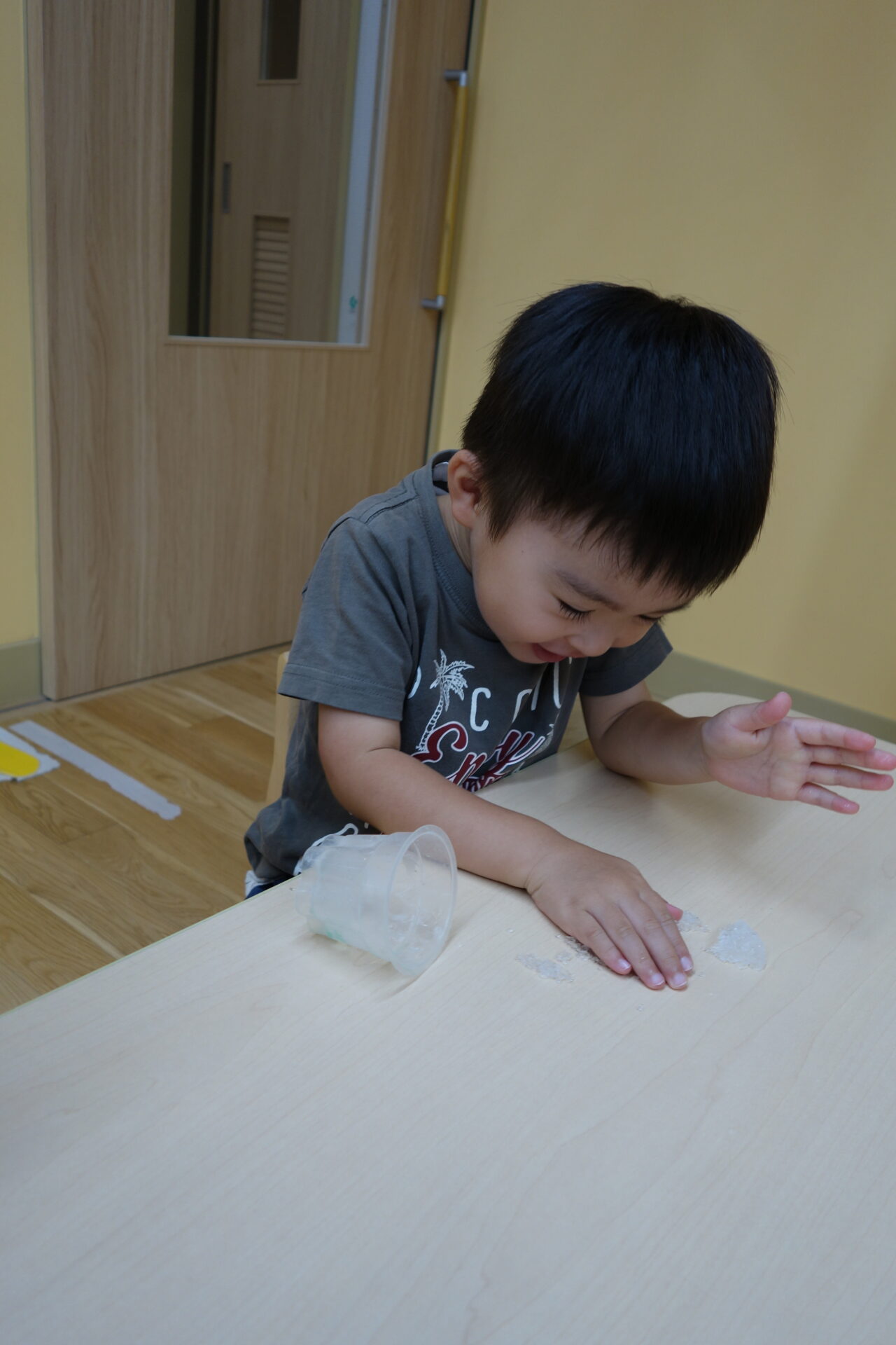 自分でカップいっぱいにかき氷を作った後は触って遊んでみました。