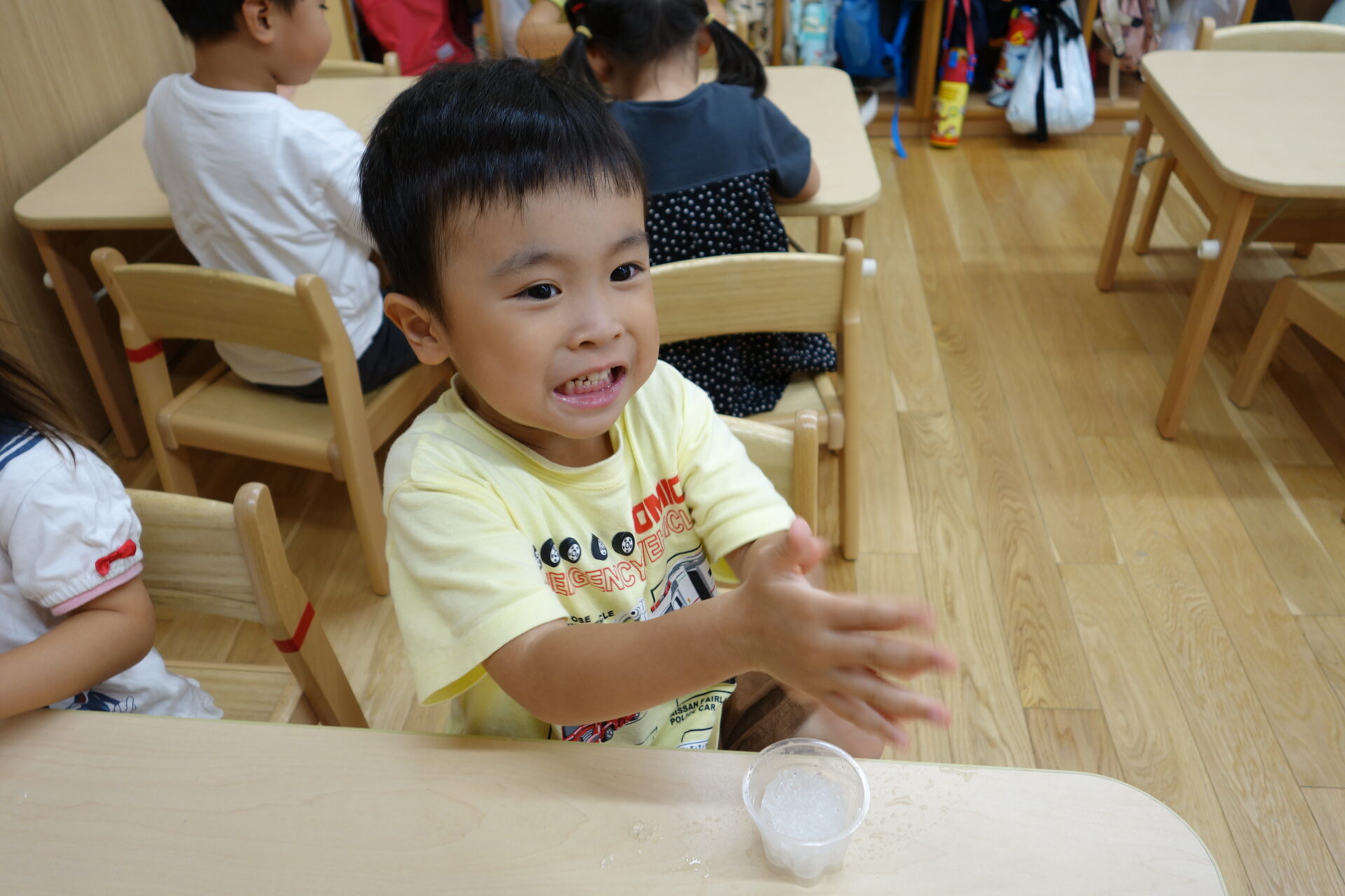 おいしいかき氷出来上がり!(3歳児)