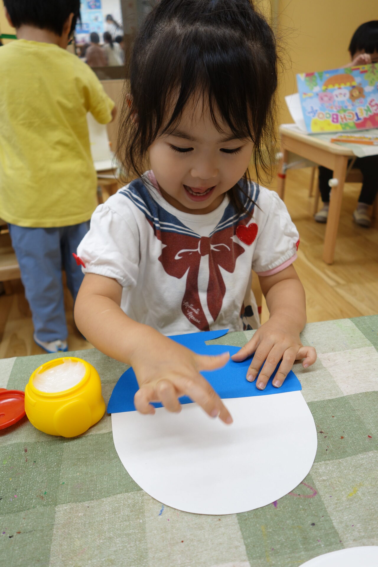 まずはのりを白い部分に塗っていきます。のりも使い方も上手になってきました。