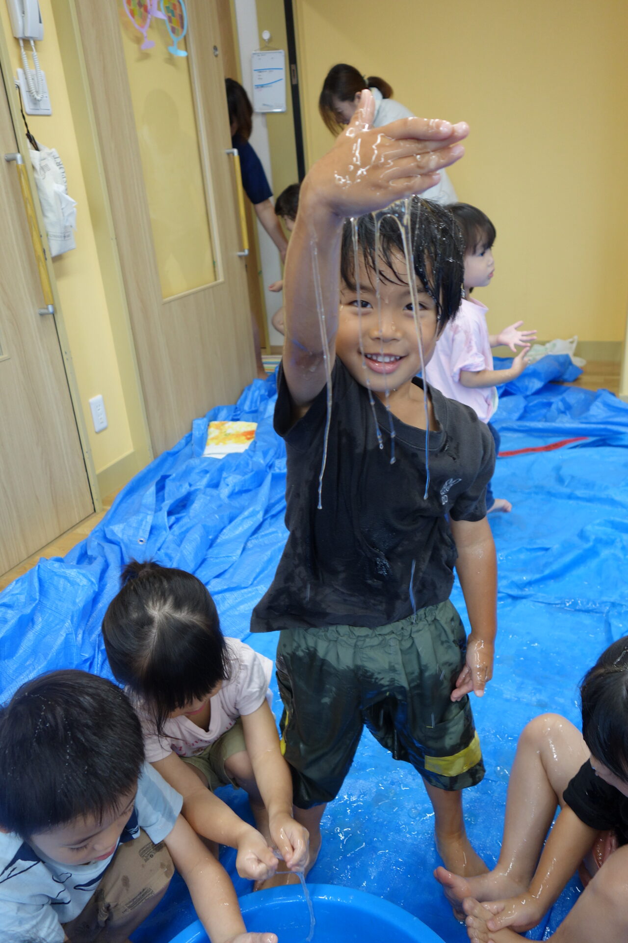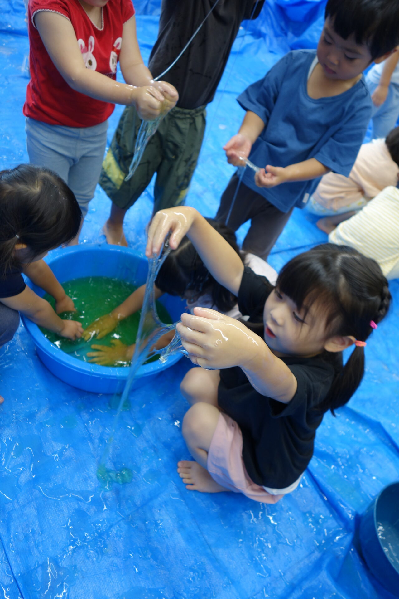 タライいっぱいのたくさんのスライムなんて見た事がない子ども達。
