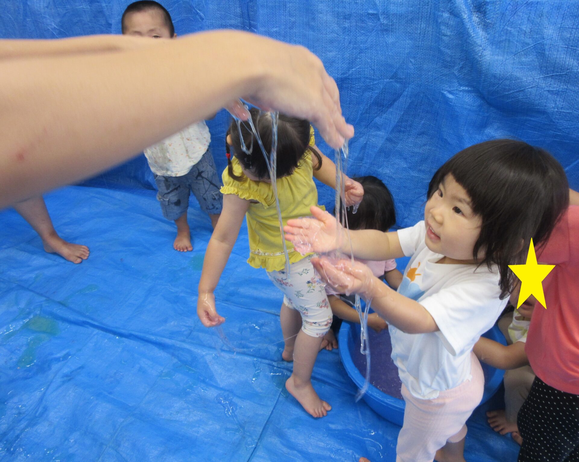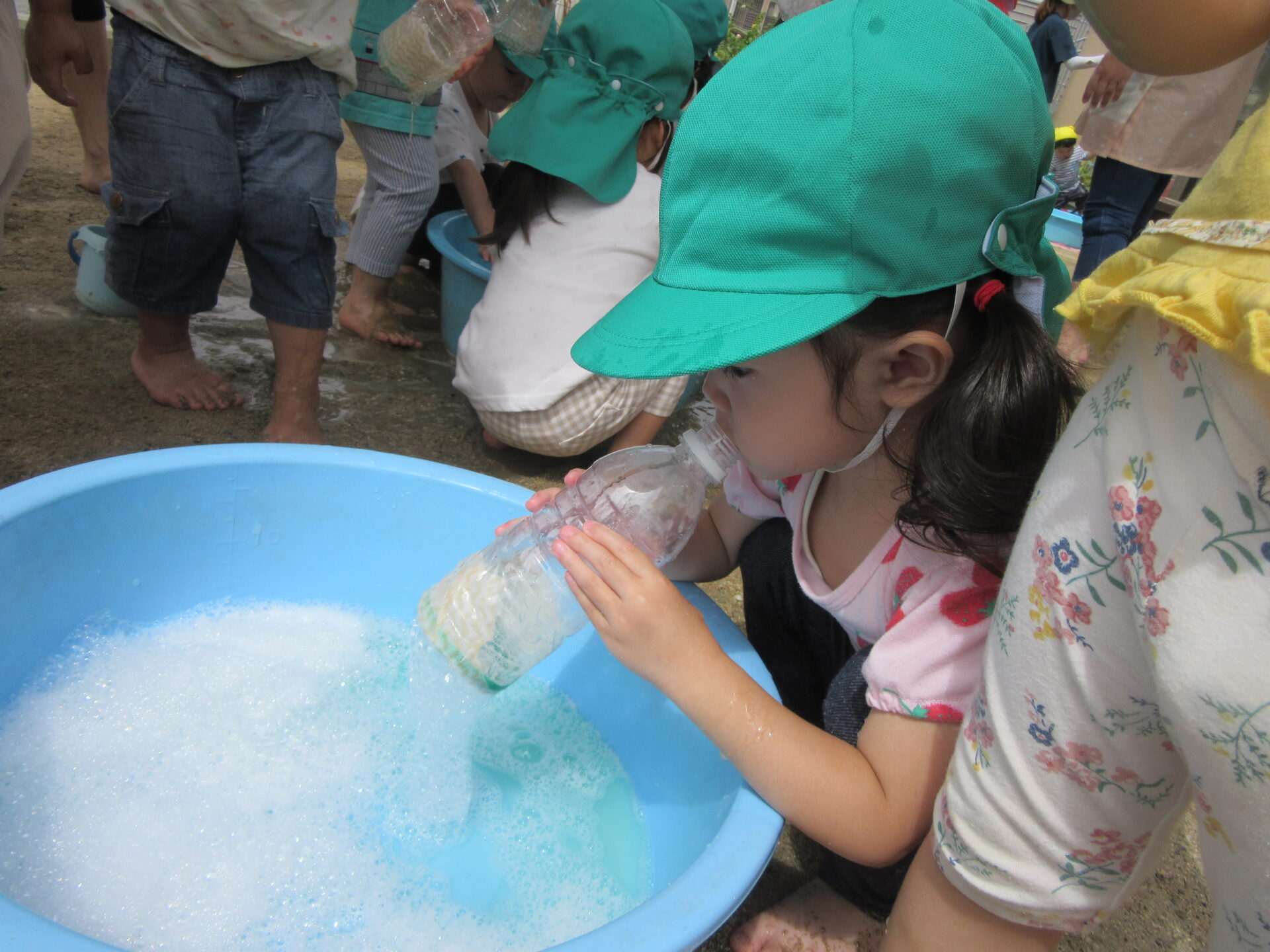 水の感触に触れ、気持ちよさを知った子ども達。