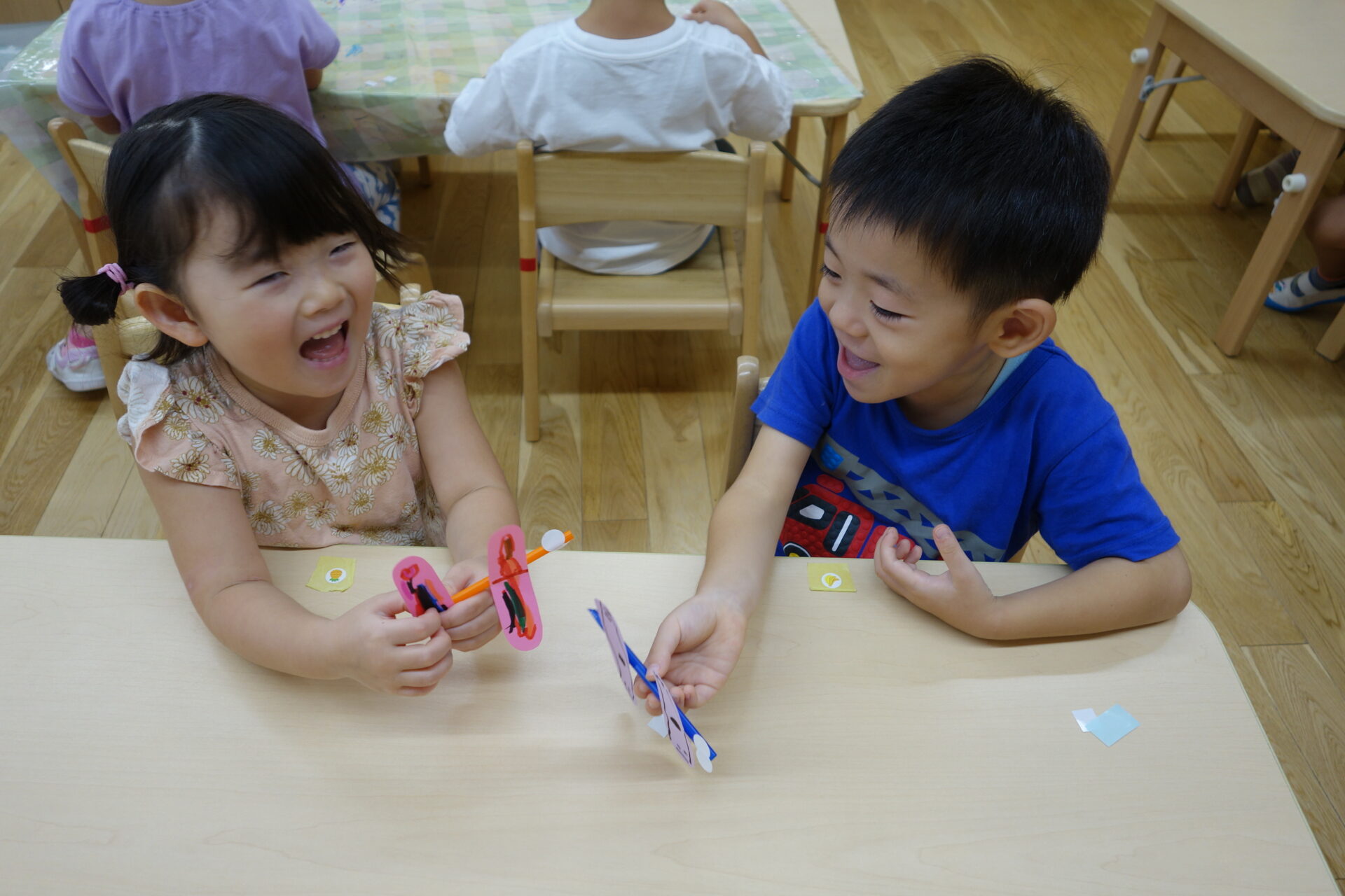 「仲間だと思ったんかなー?もう一回作ったトンボを飛ばしてみよう!」と嬉しそうでした。