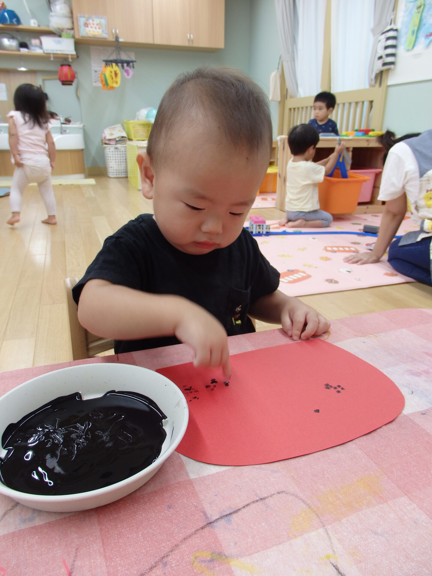 9月の製作🍊中から出てくるのは・・?(1歳児)