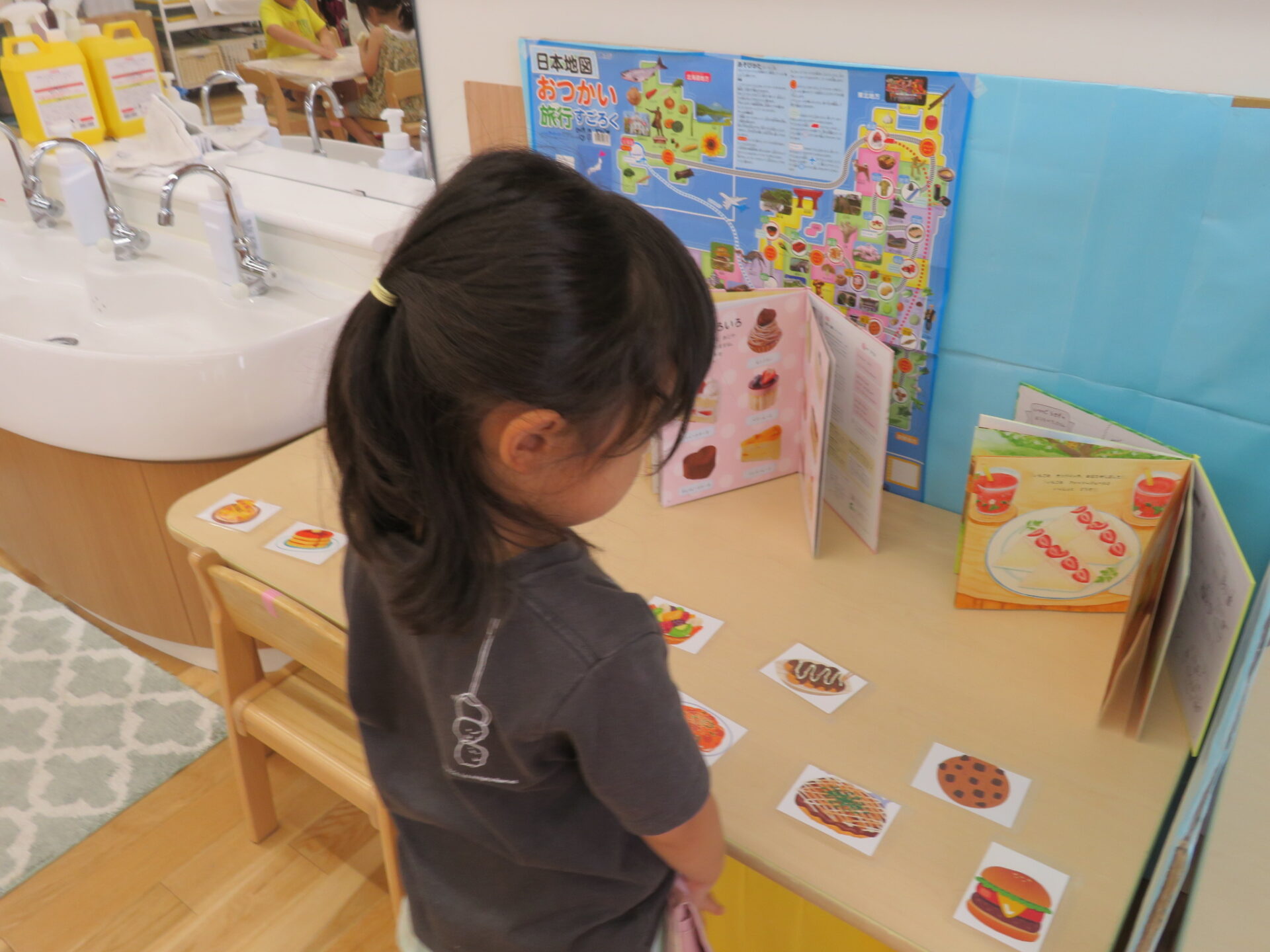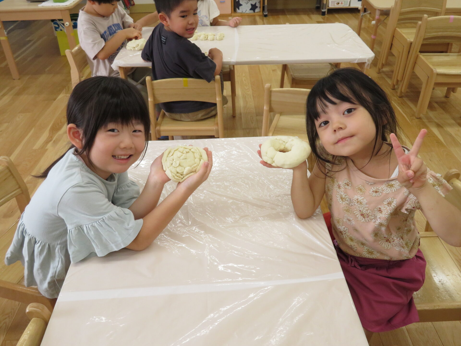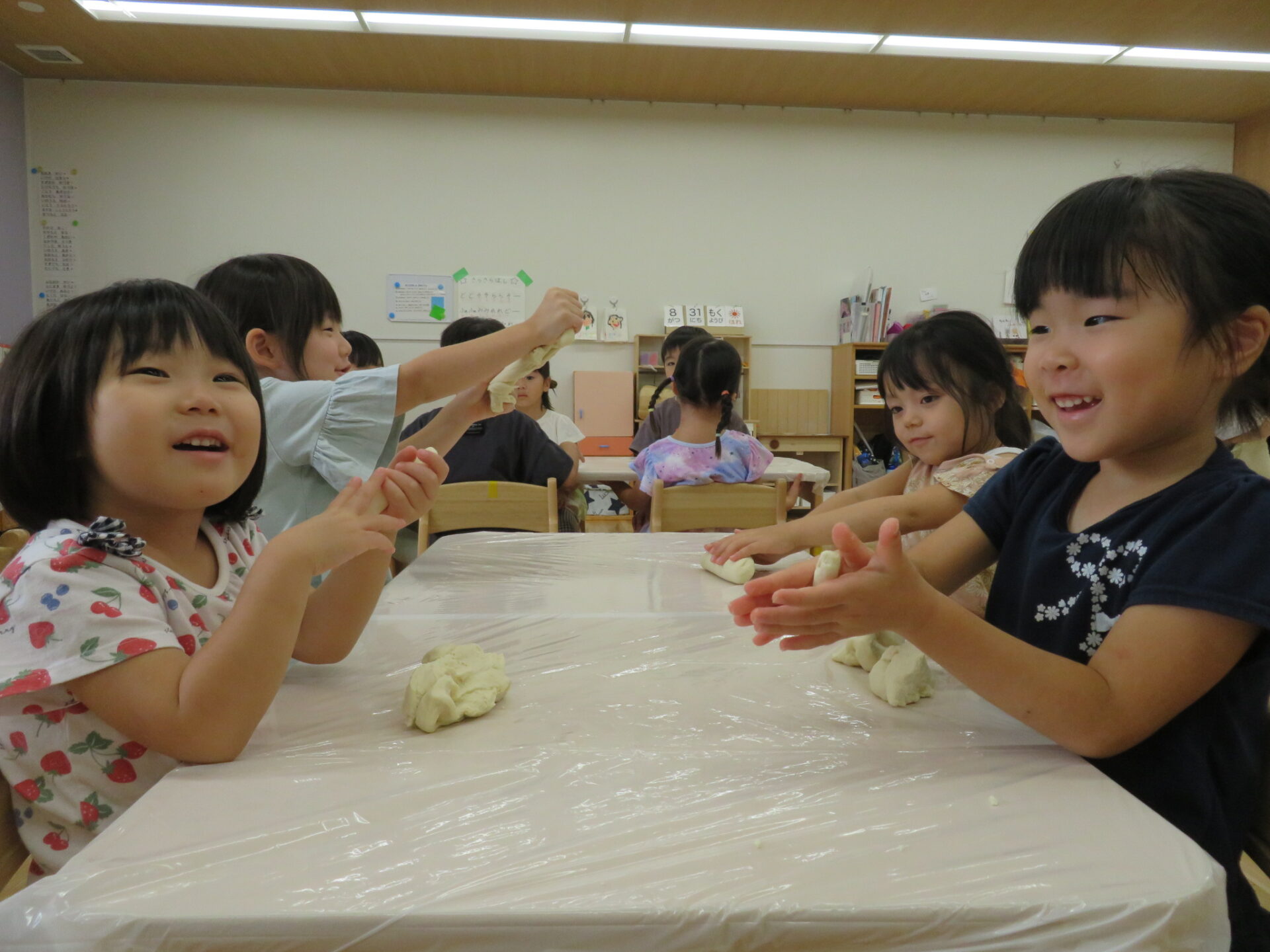 夏の遊びとして取り入れた小麦粉粘土を「またやりたい!」と話す子ども達が多かった為、『小麦粉ってなあに?』というお話から『小麦粉を使った食べ物はどんなものがあるだろう?』という話をしました。