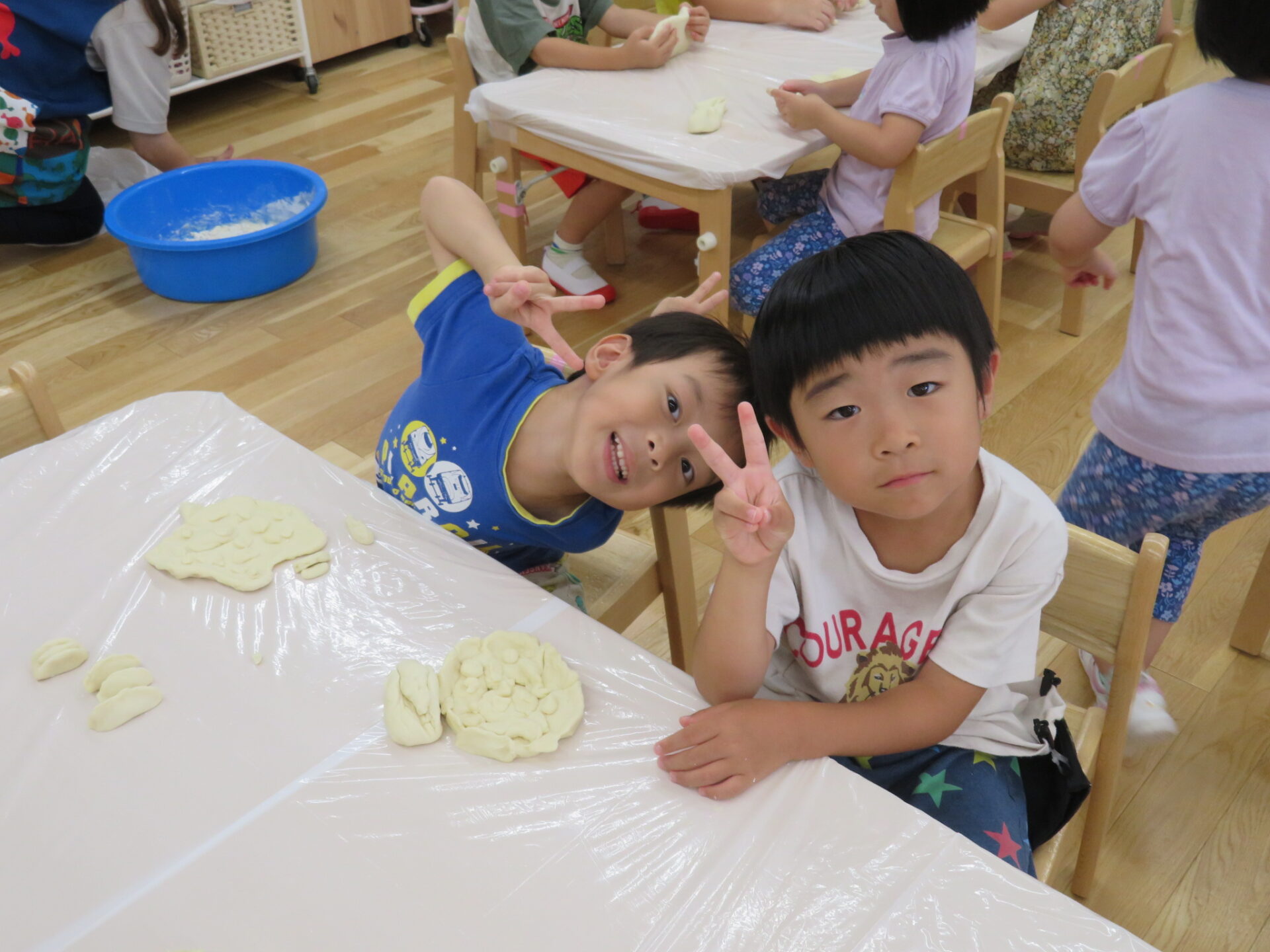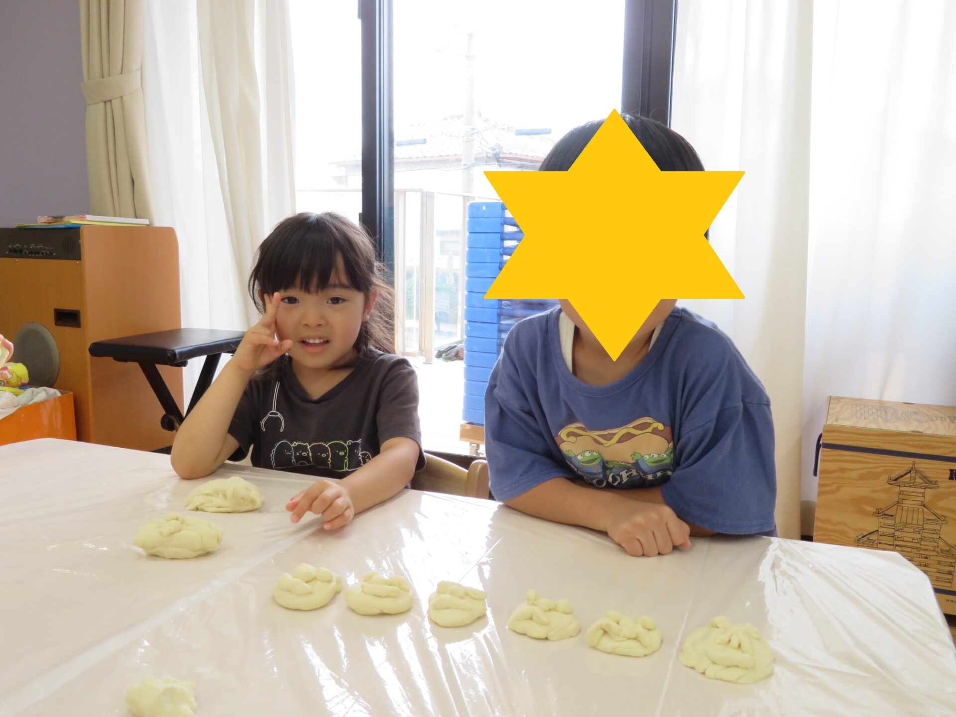 隣のお友だちが作ったのは顔の形をしたパンです。
