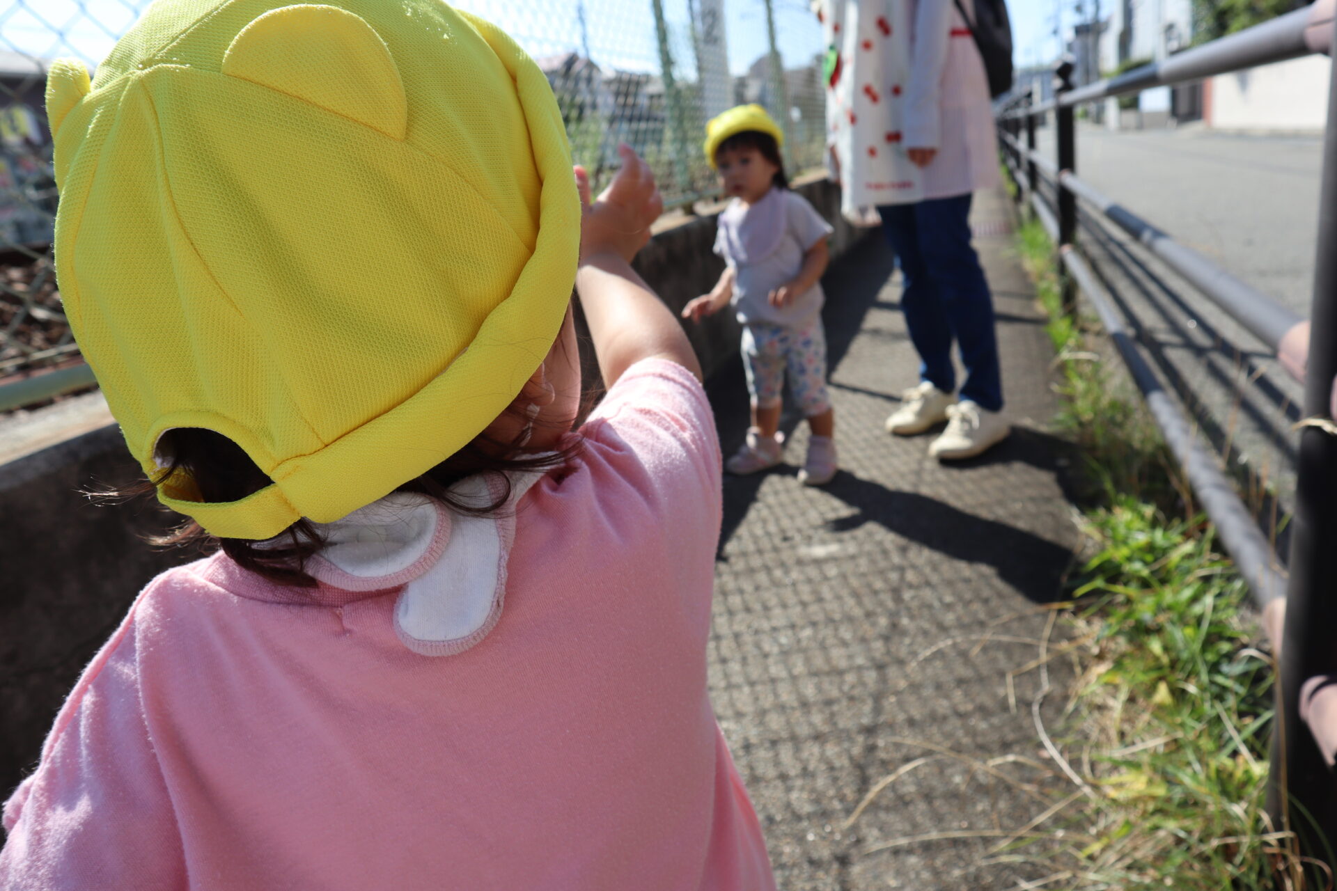 電車が通り過ぎると、見えなくなるまで手を振る可愛いうみ組の子ども達です🥰
