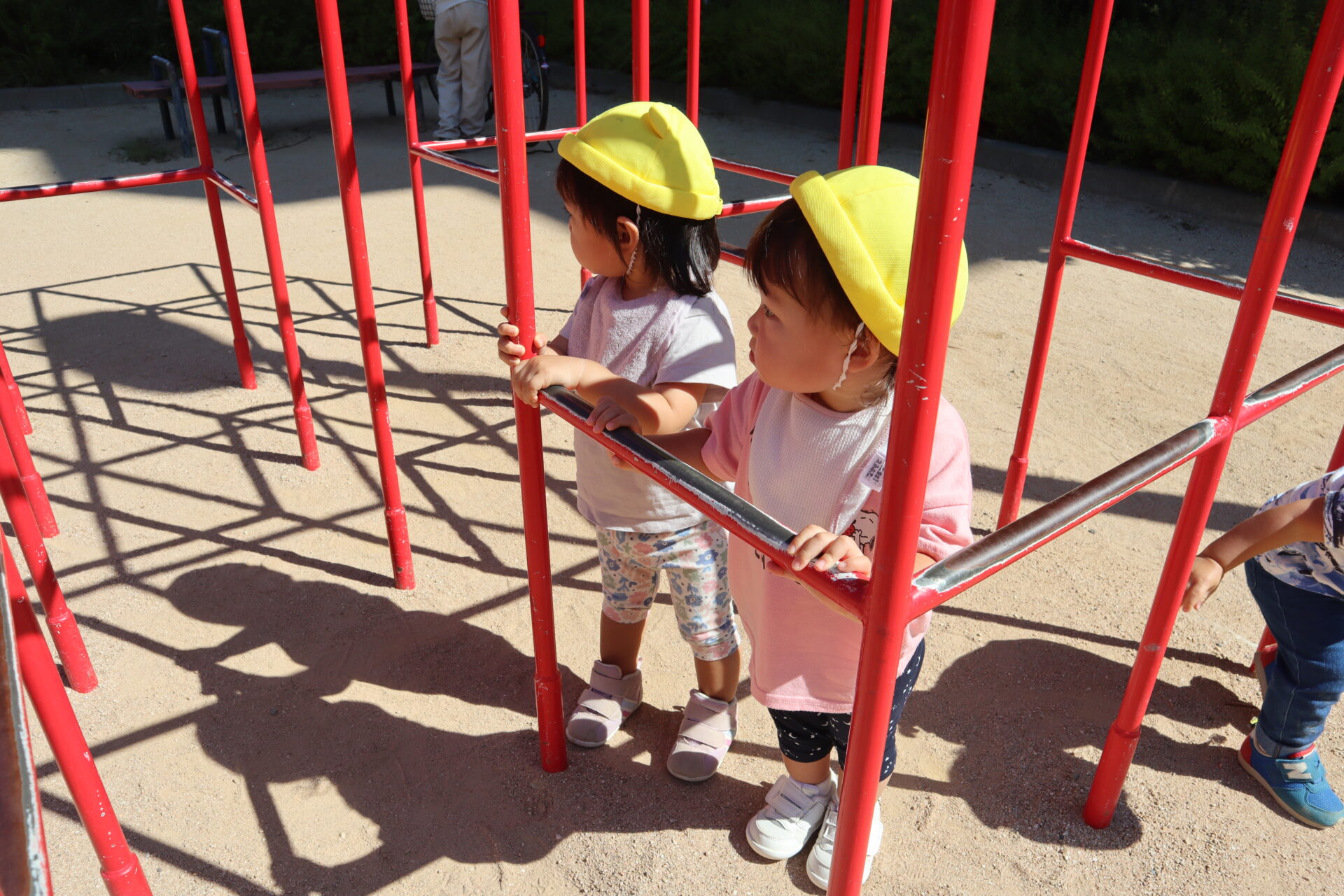 10月になり涼しくなってきたので、0歳児クラスで平松児童遊園地へ散歩に行きました。