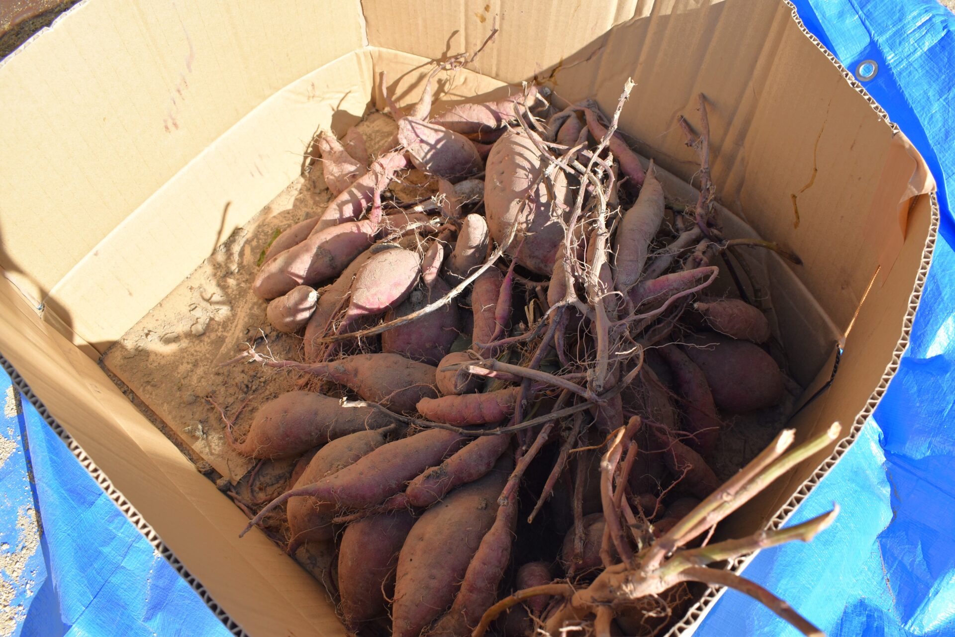最後に芋のつるを飾ることで、本物の芋畑のようです。