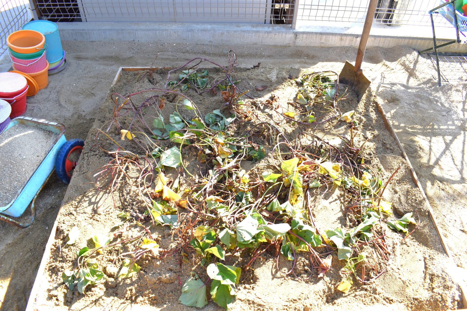 4.5歳児は親子芋ほりに行ったので、行っていない0歳児から3歳児は園庭で