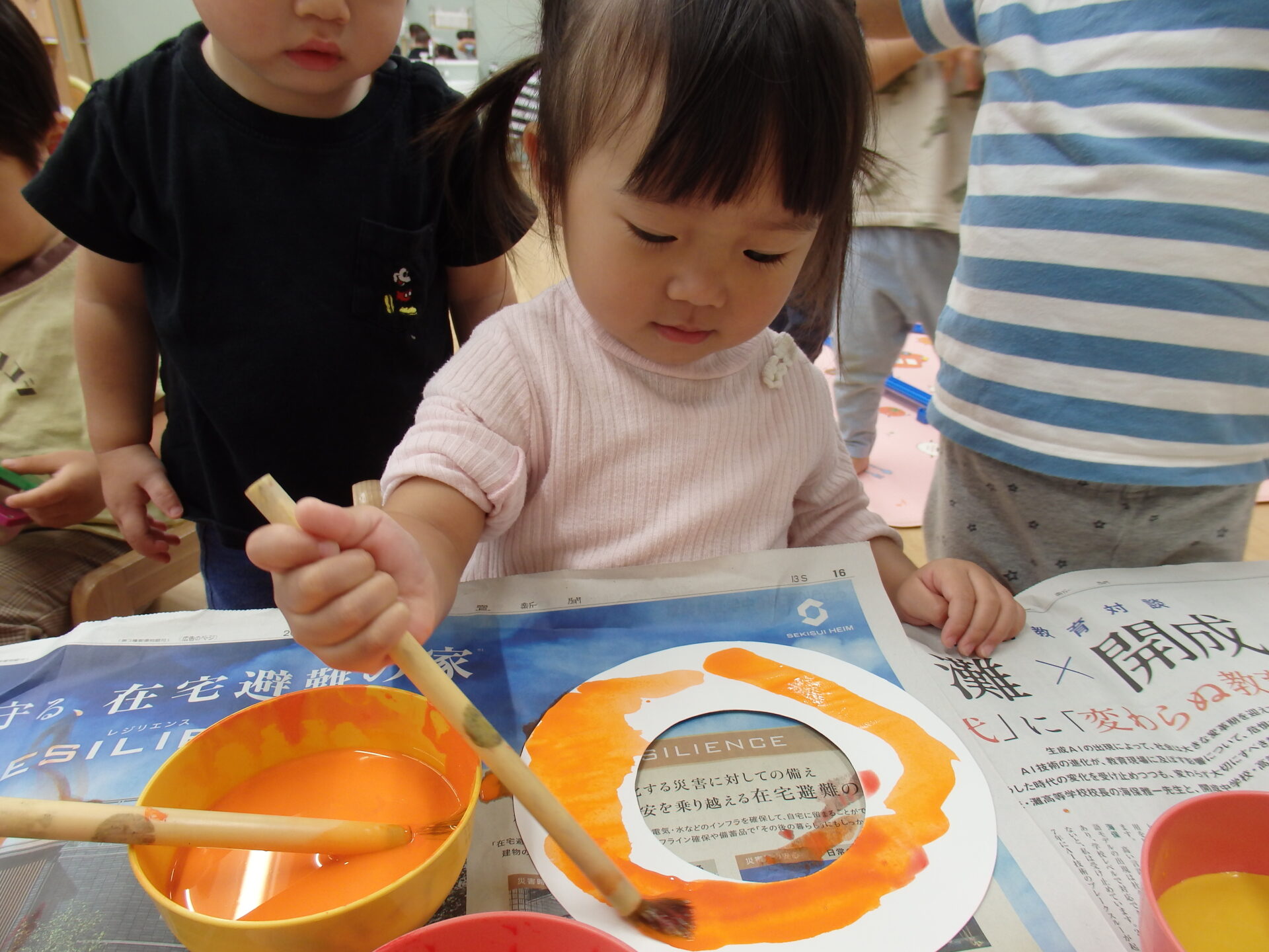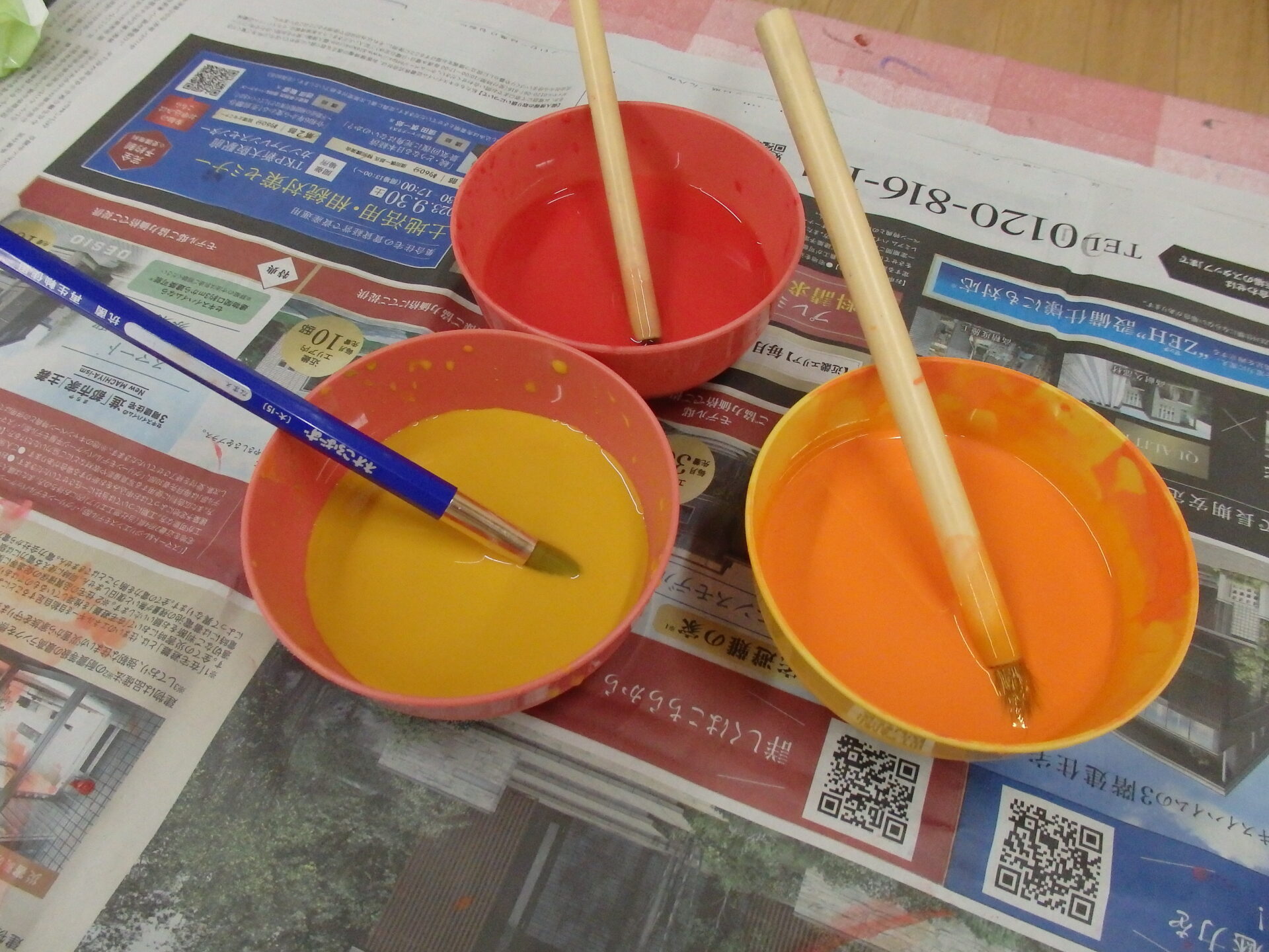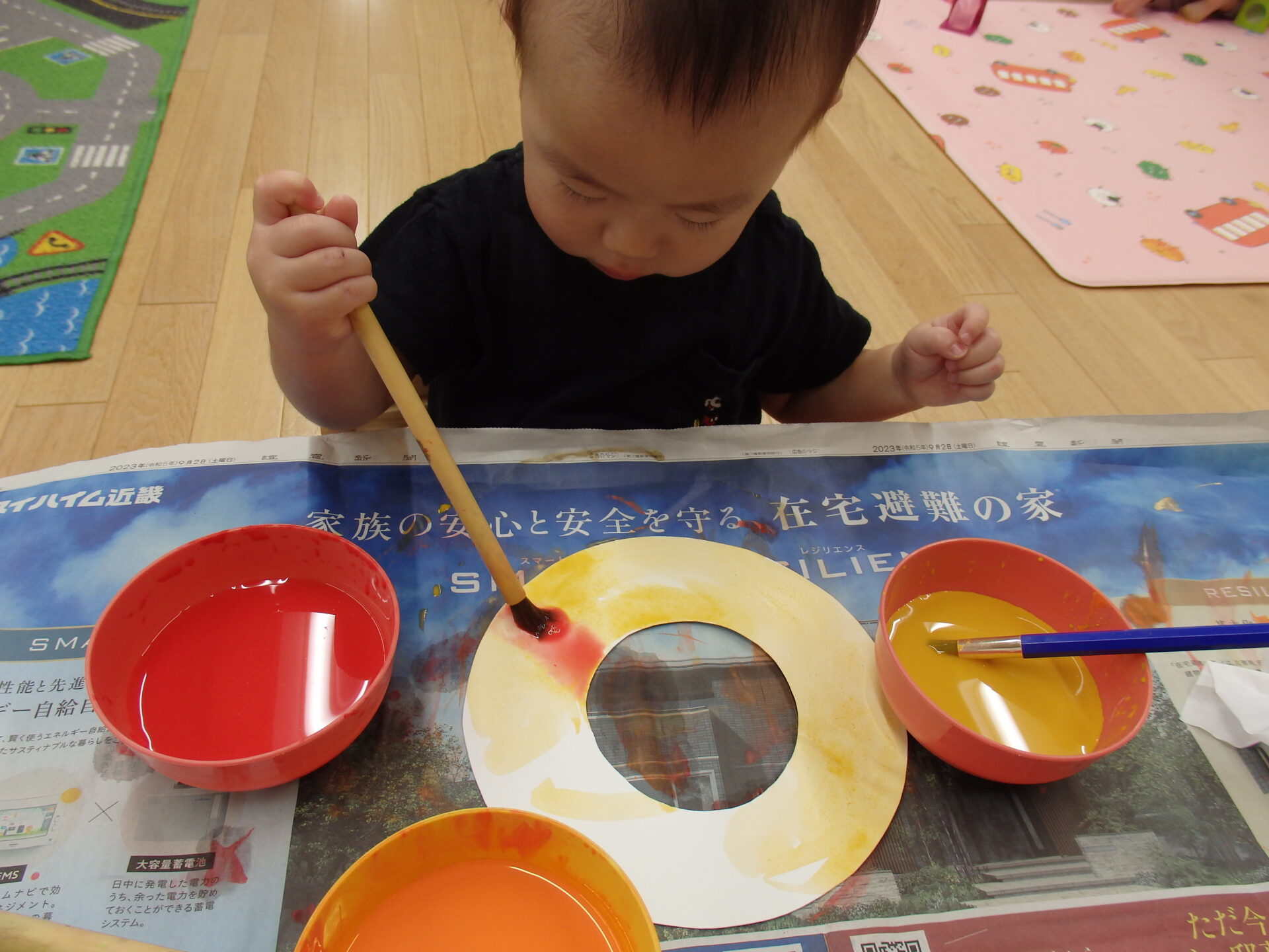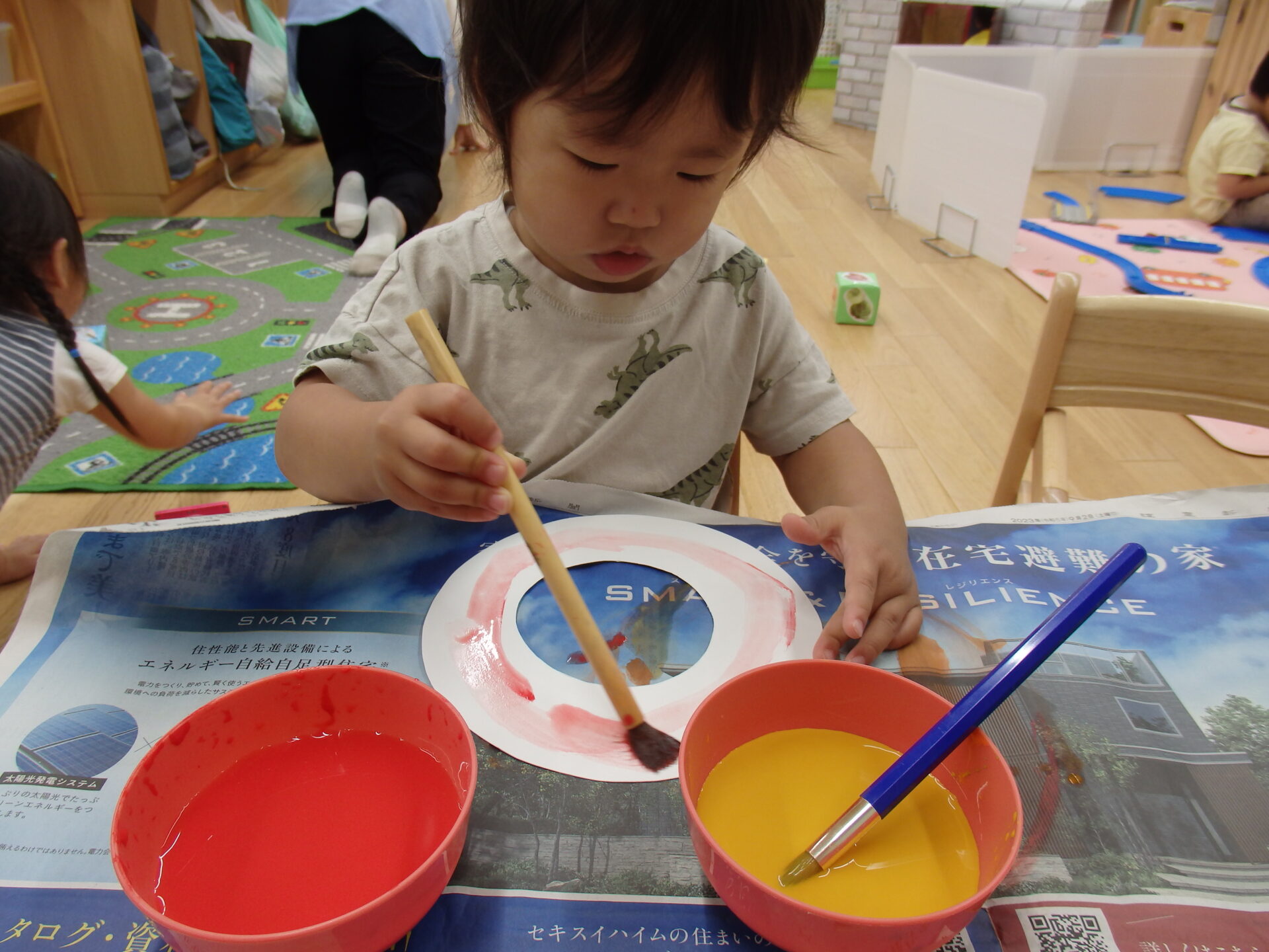 子ども達は絵の具を見るなり「早くやりたい!」と大興奮!!