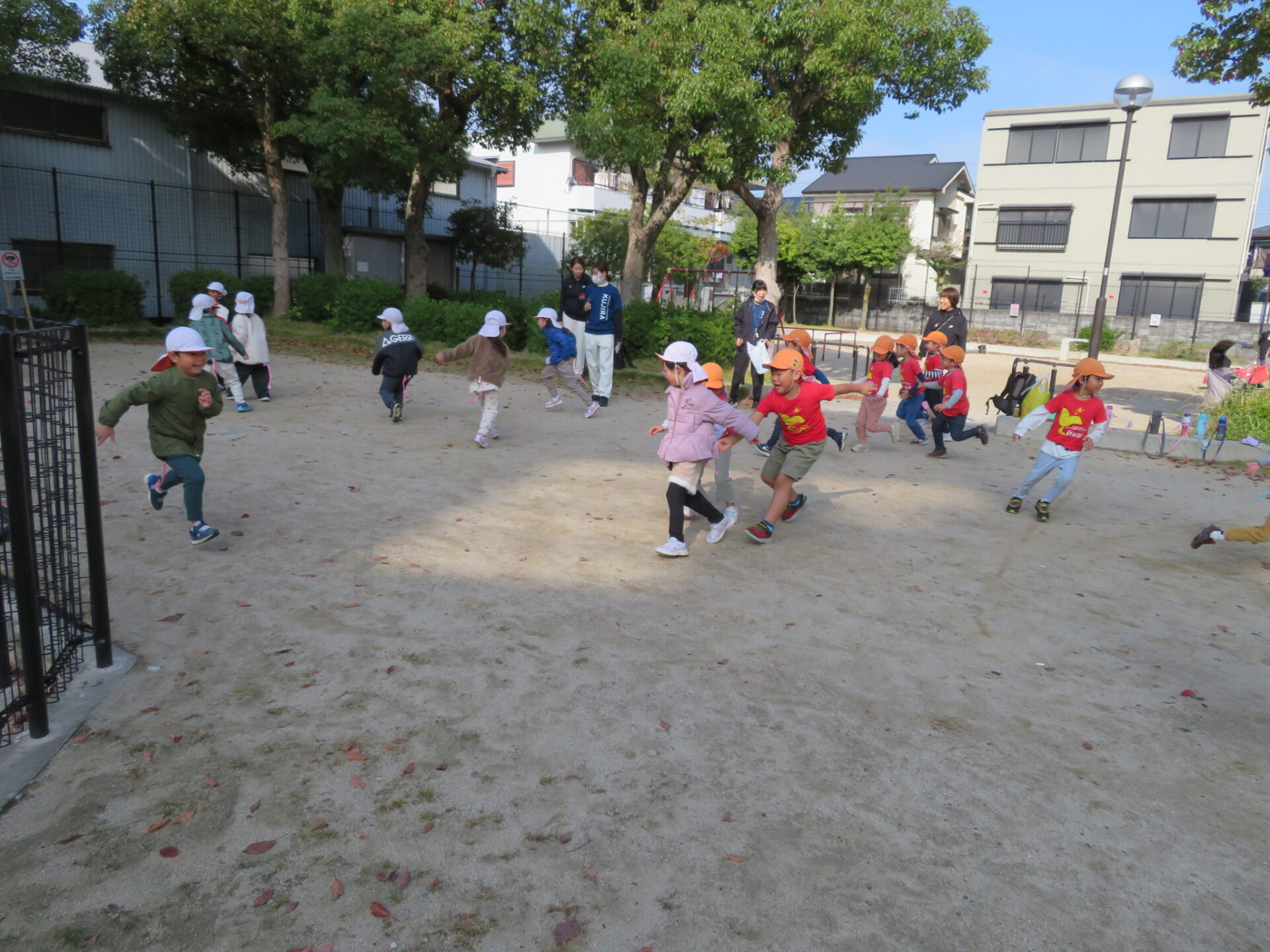 『しっぽを取る事』に一生懸命な伊丹くじら保育園のお友だちとは正反対に、『逃げ切る事』に一生懸命な梅ノ木くじら保育園のお友だち。