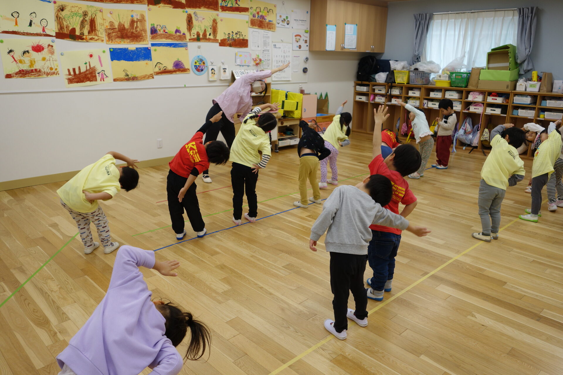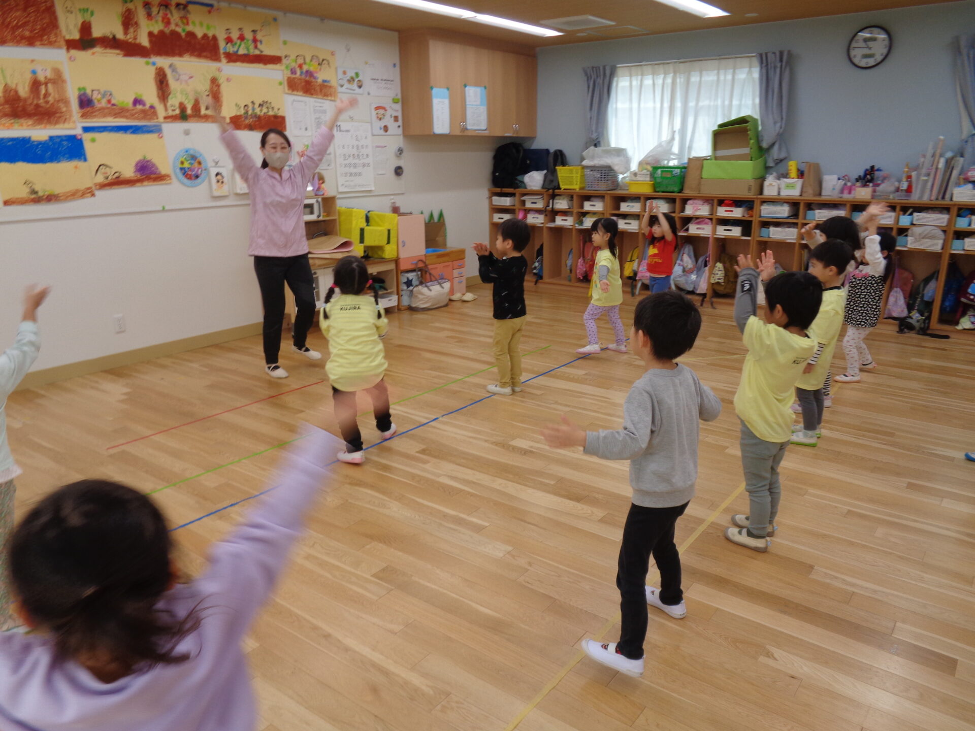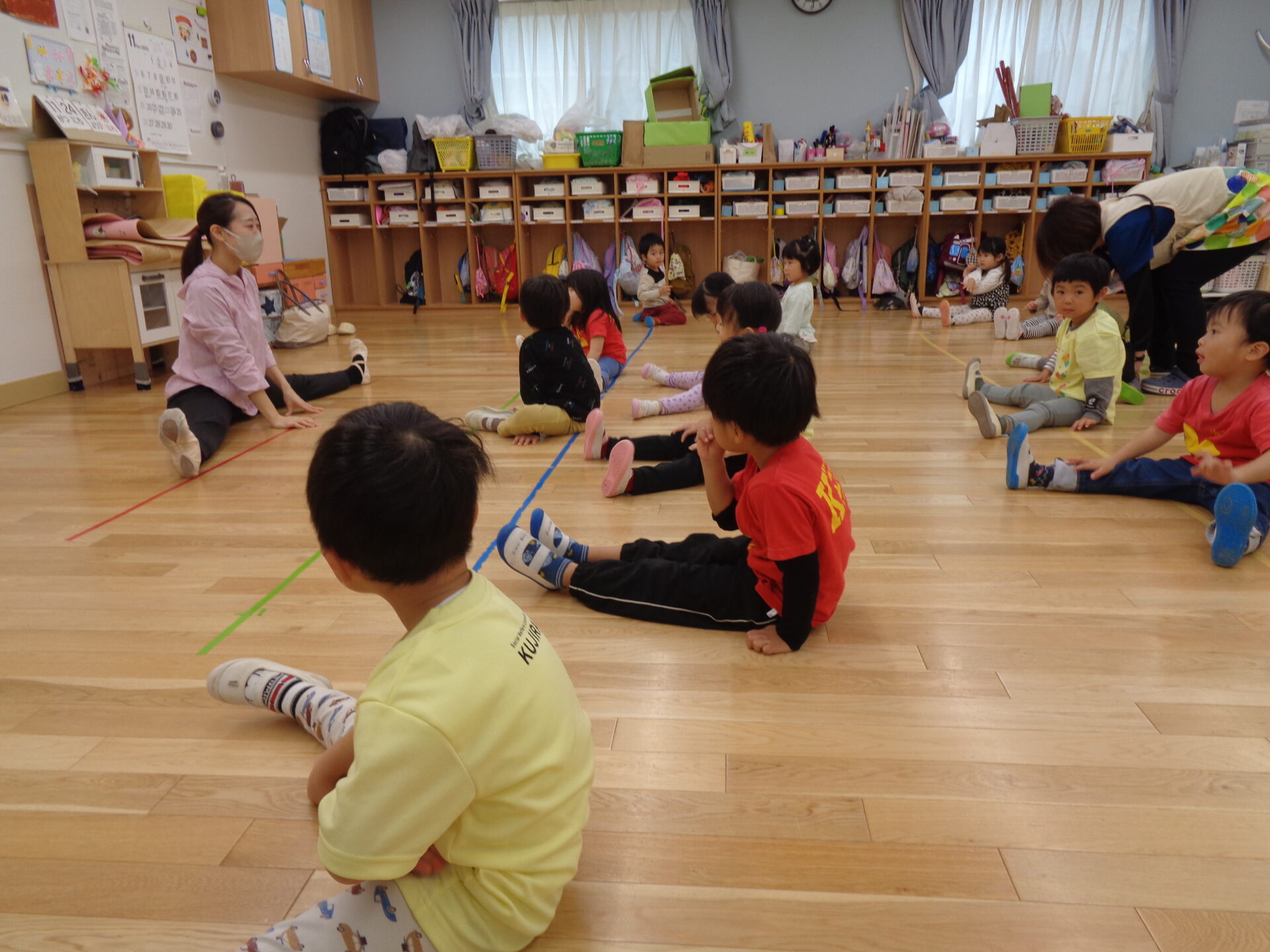 先生の真似をしながら、頑張って取り組む子ども達です。