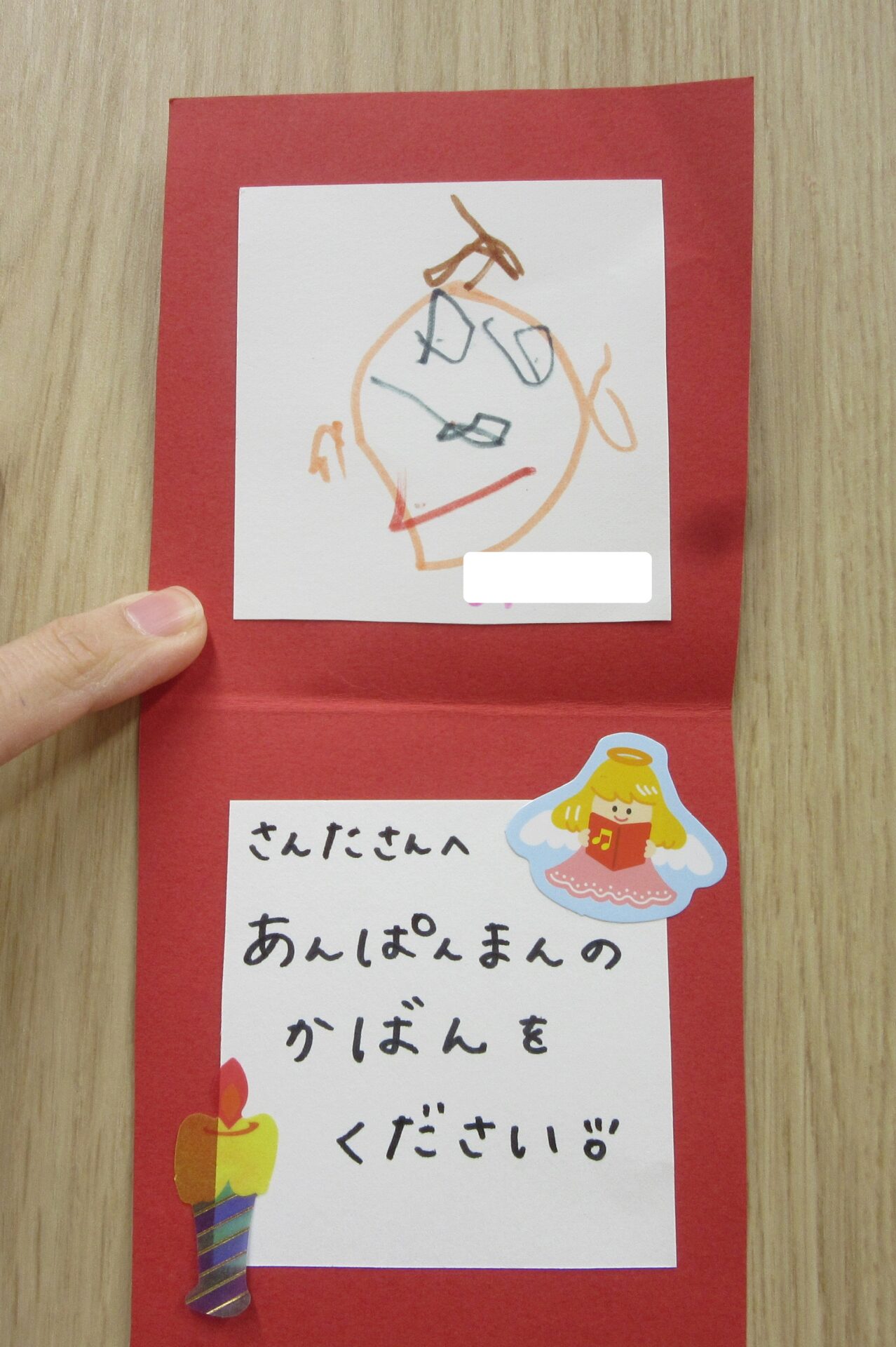 そして、クリスマスを楽しみにしているのでサンタさんへお手紙も書きました。中に似顔絵と欲しいプレゼントを描いて部屋に飾っています!