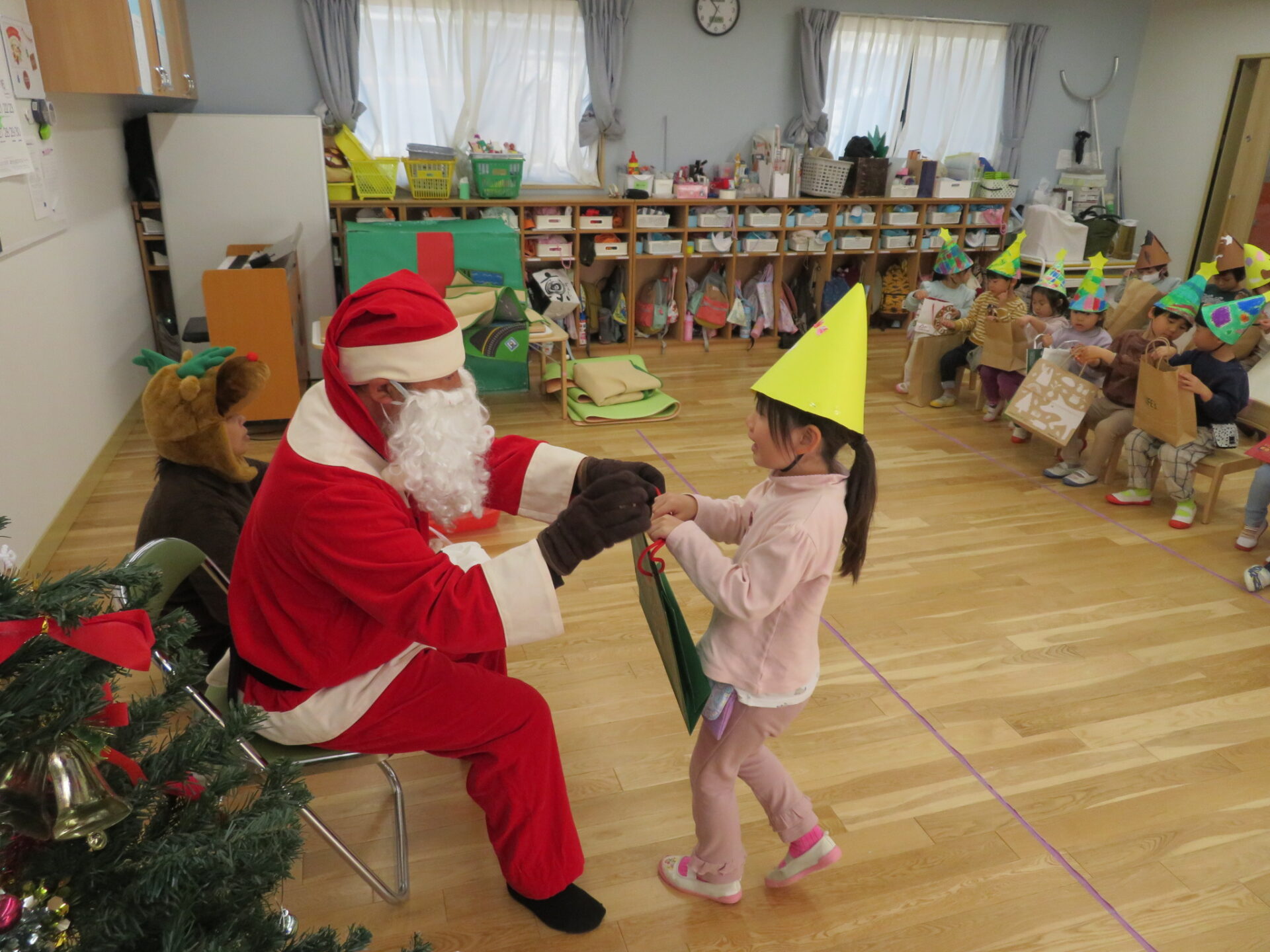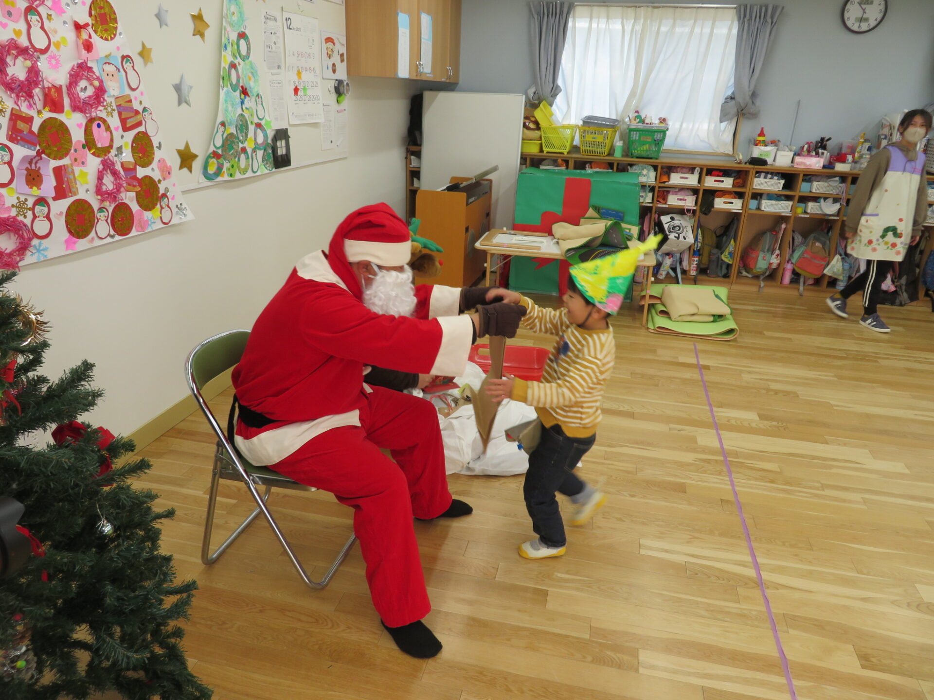 サンタさんから一人ひとりプレゼントを直接手渡ししてもらい、とても嬉しそうです✨