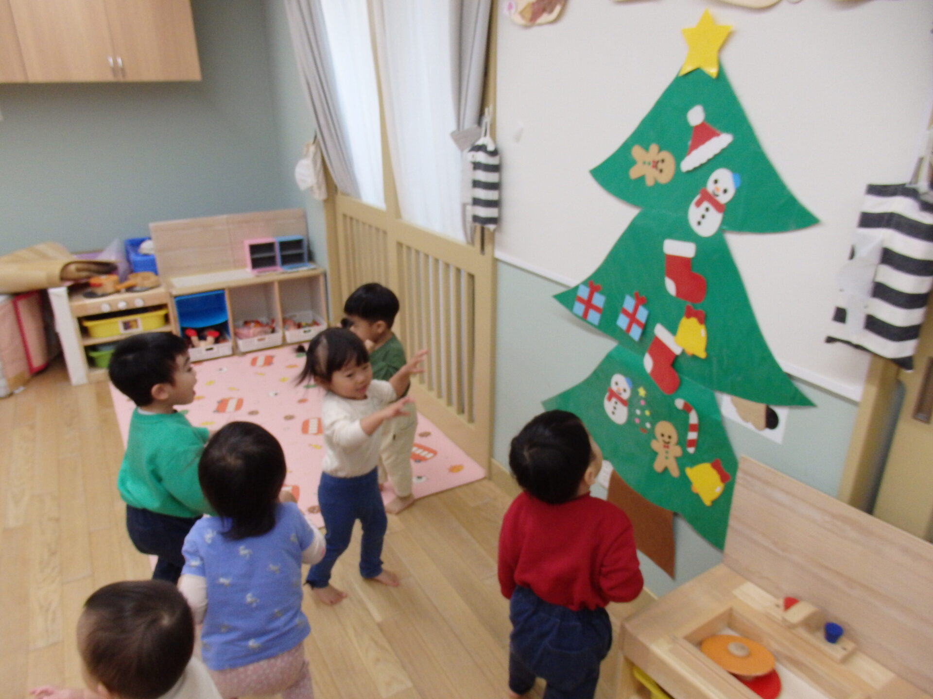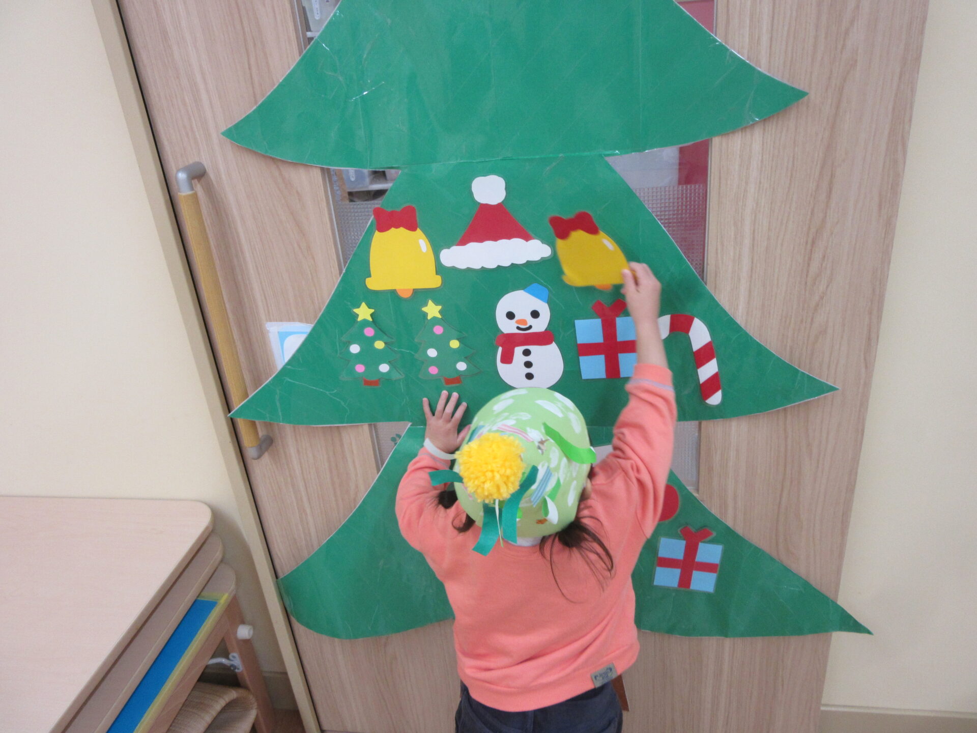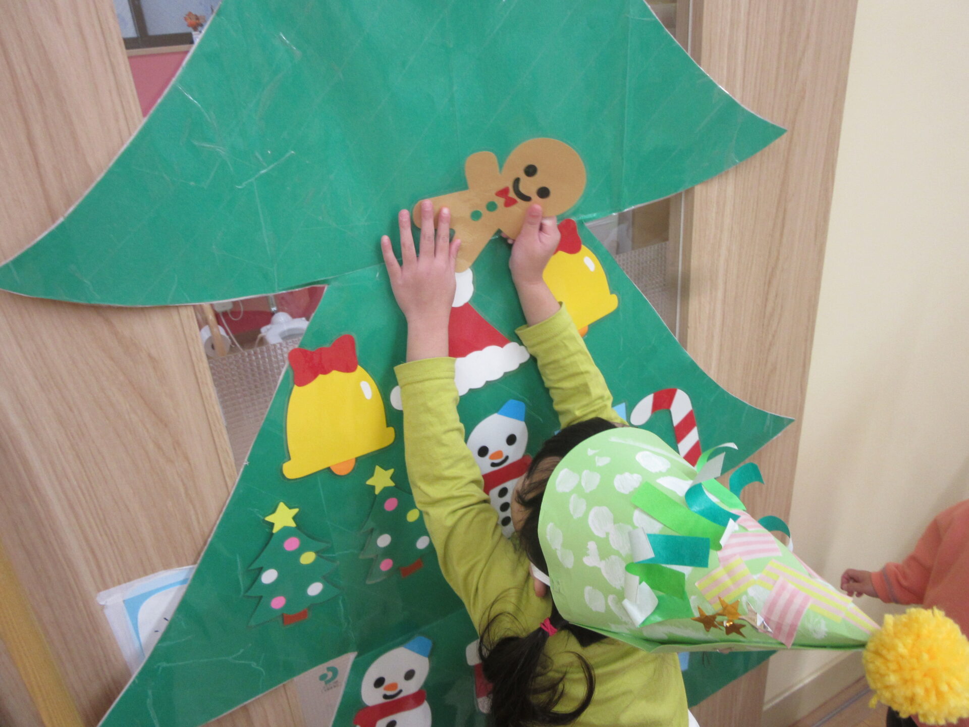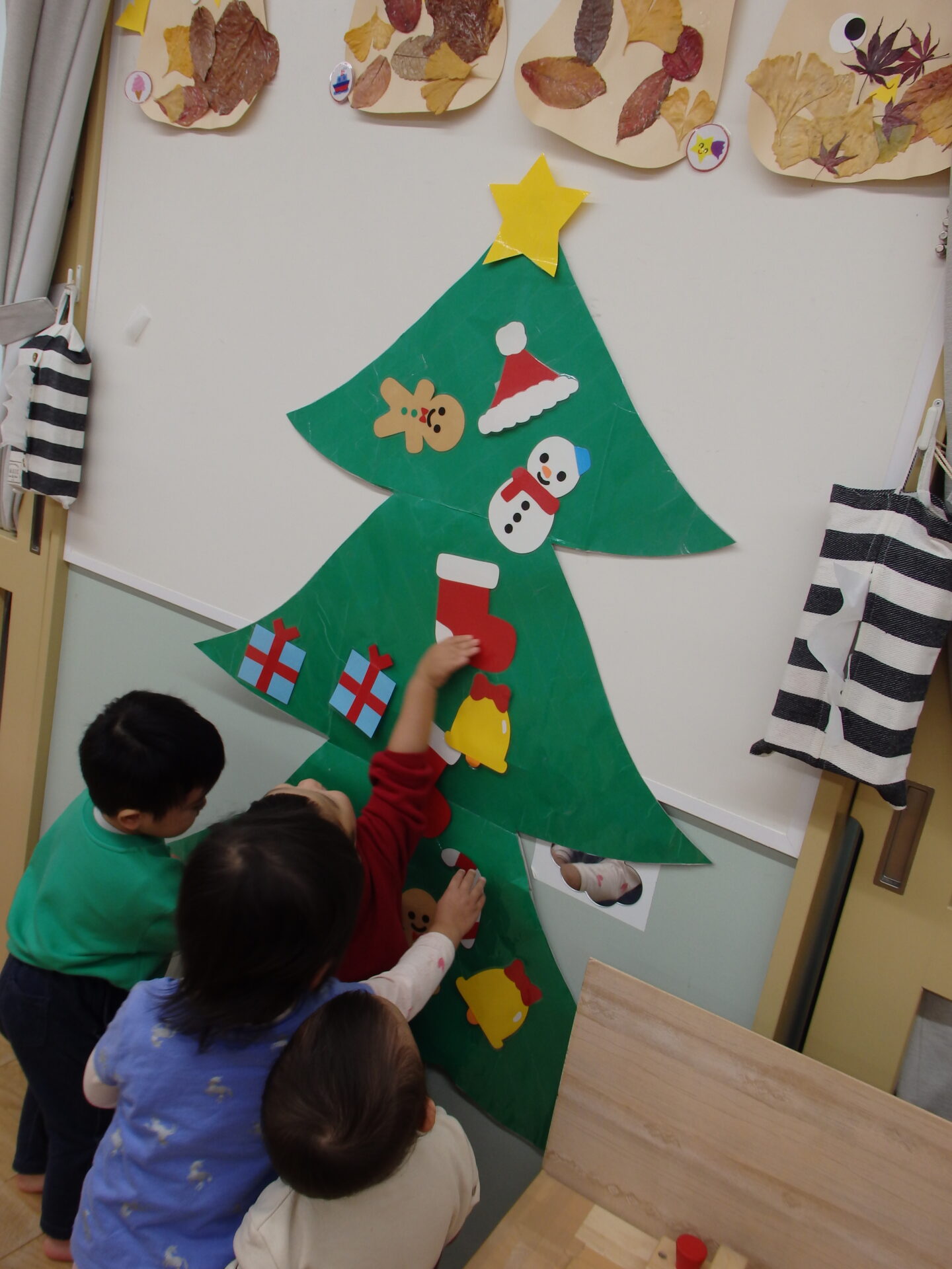 だいち組やあめ組は、部屋中に隠されたクリスマスのパーツを探し出して、ツリーに飾り付けていきました!