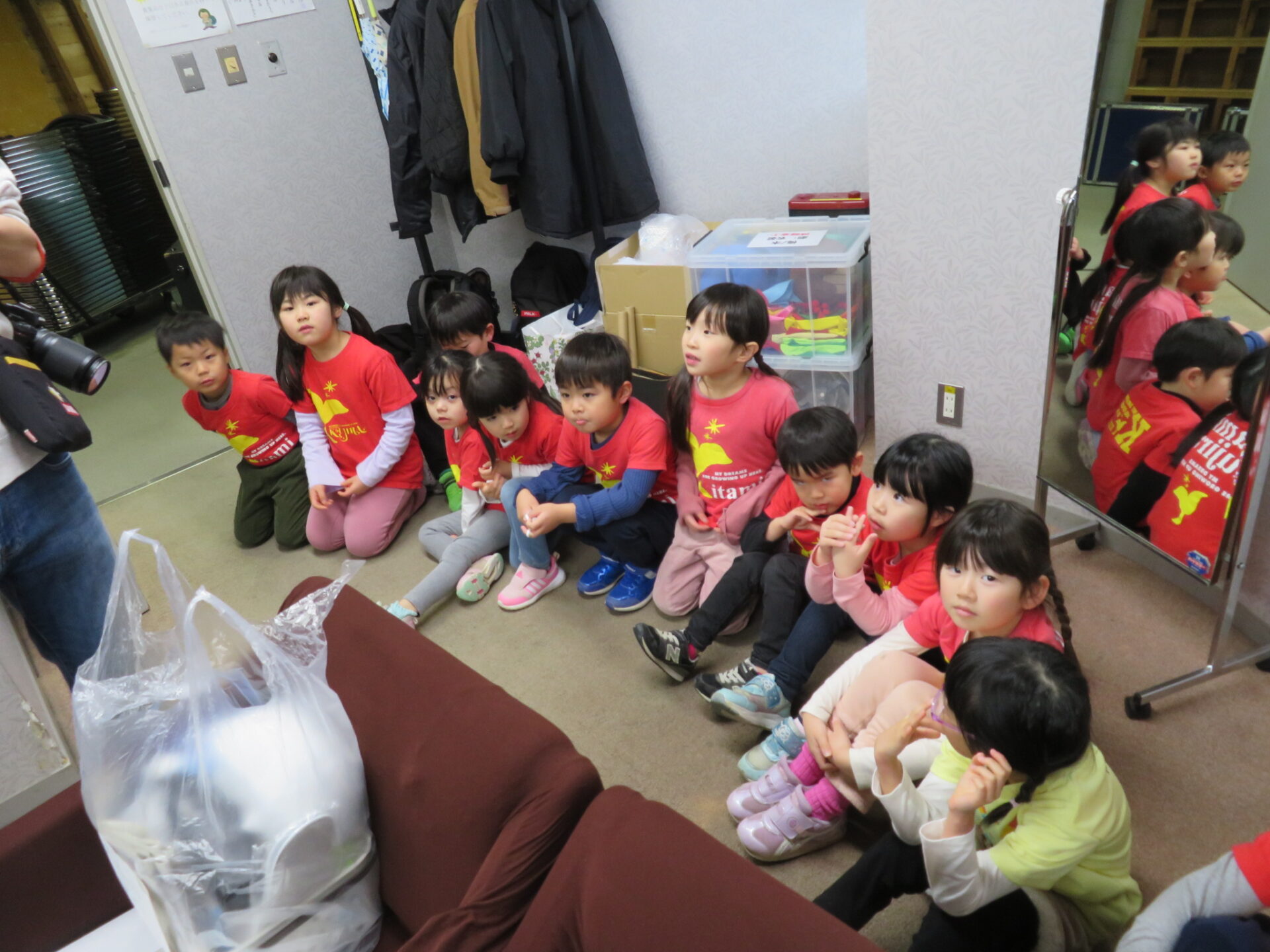会場は保育園の数倍は広いホールで行われた為、控室では少し緊張気味の子ども達。