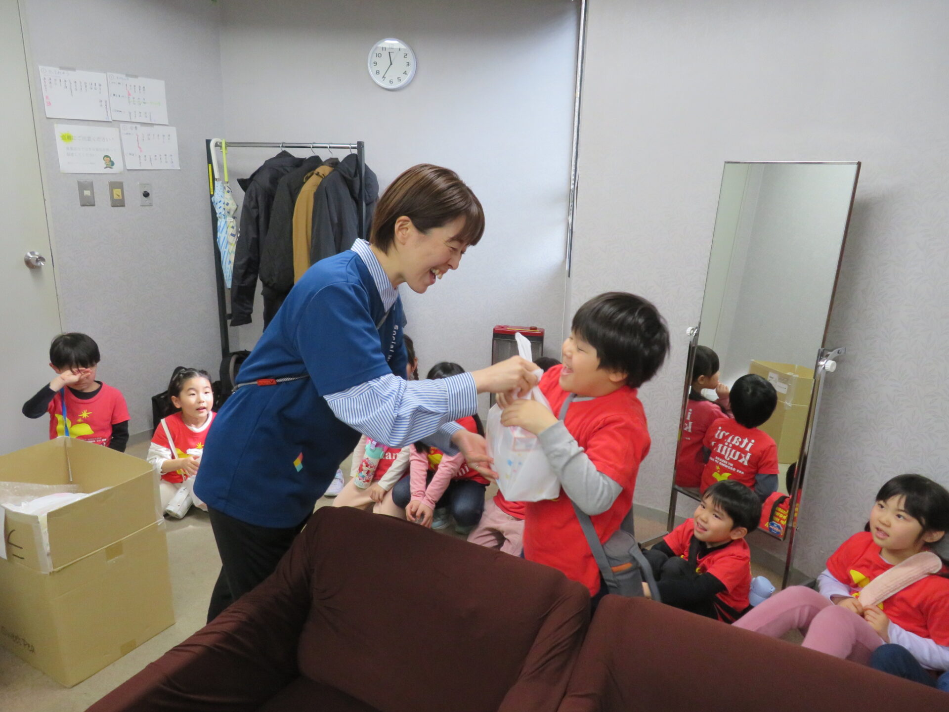 最後まで立派に舞台に立ち続けた子ども達に、最後は園長からお土産のプレゼントがありました。