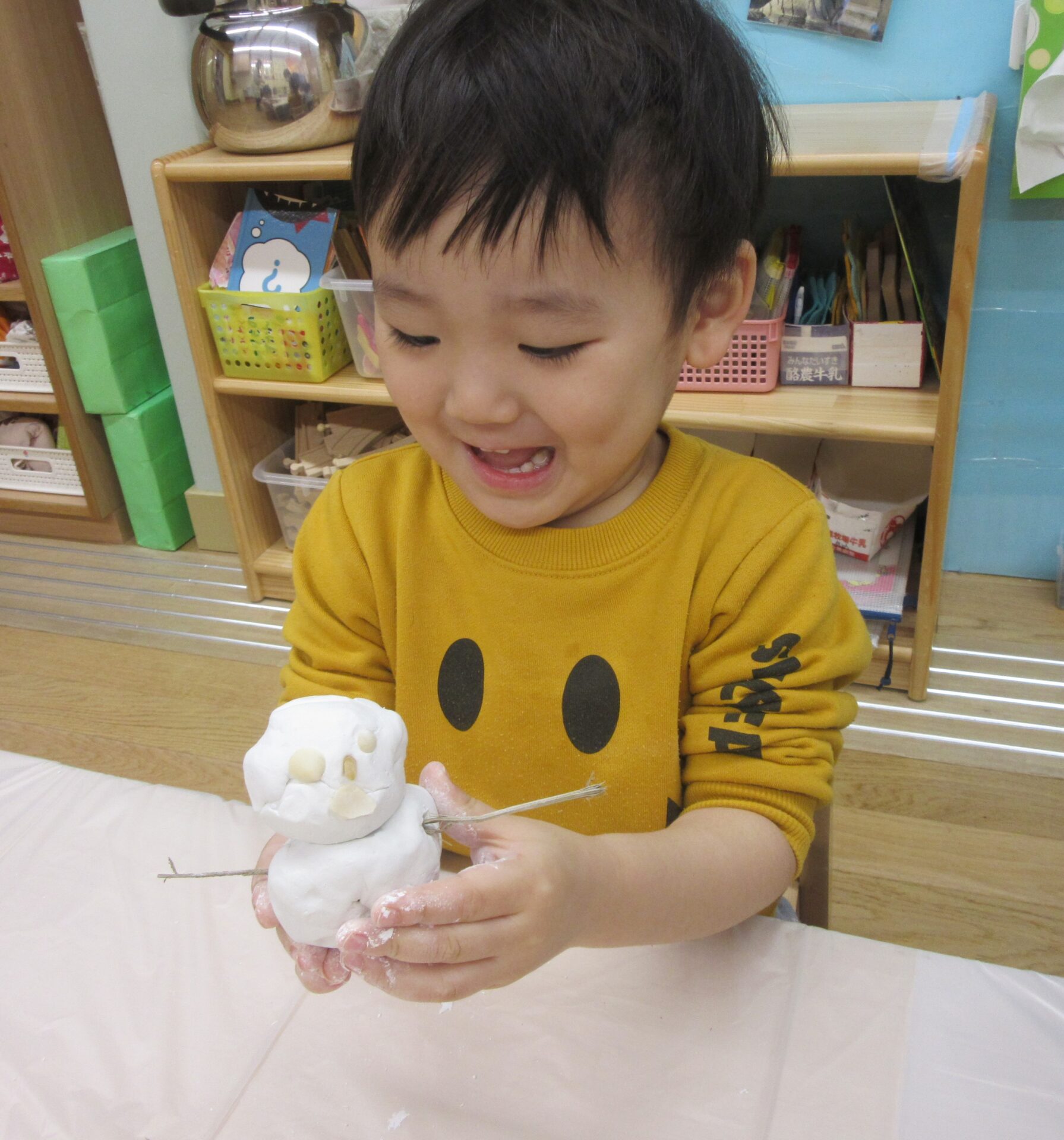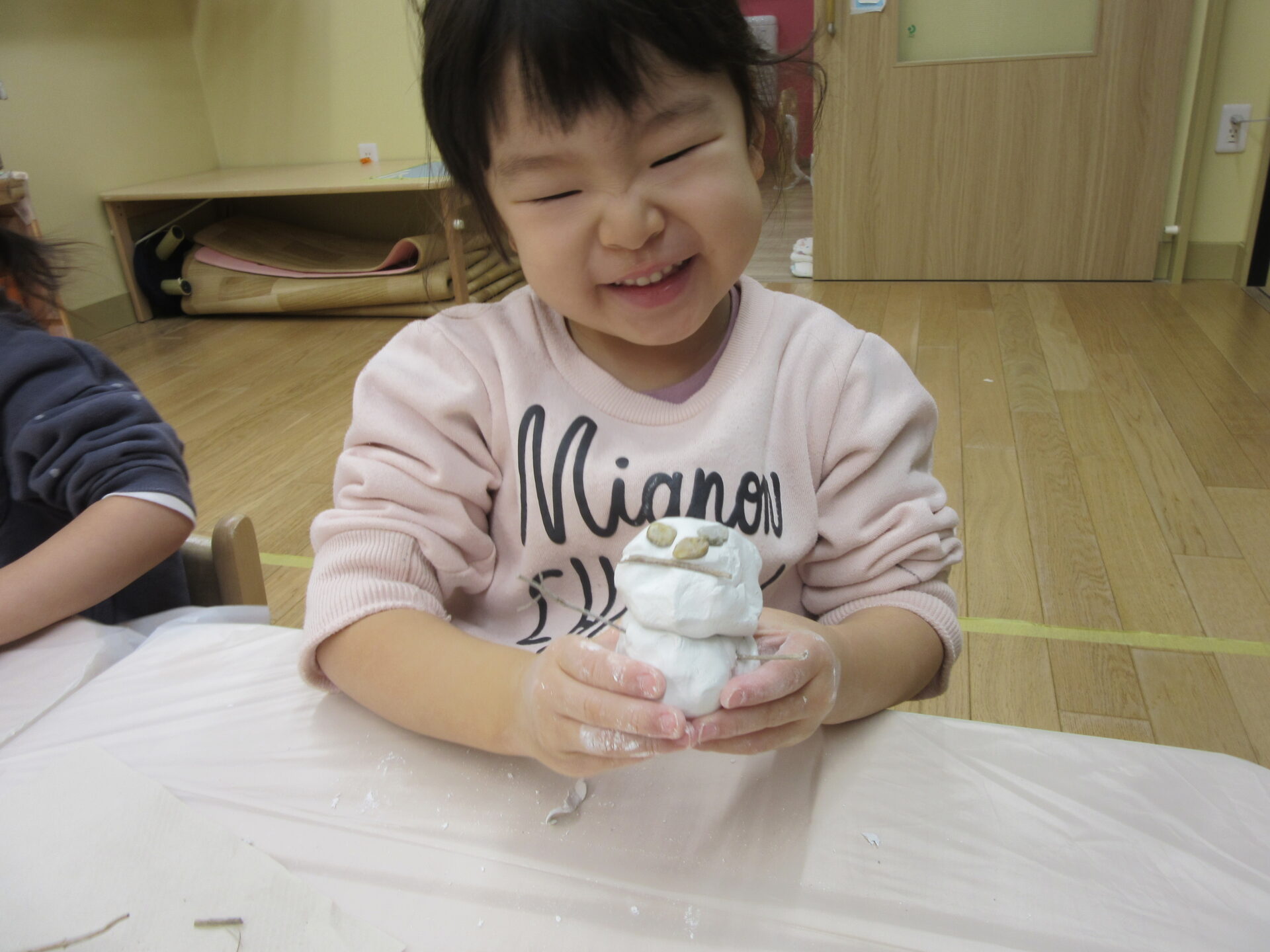 そこで紙粘土でオリジナルの雪だるまを作る事にしました!