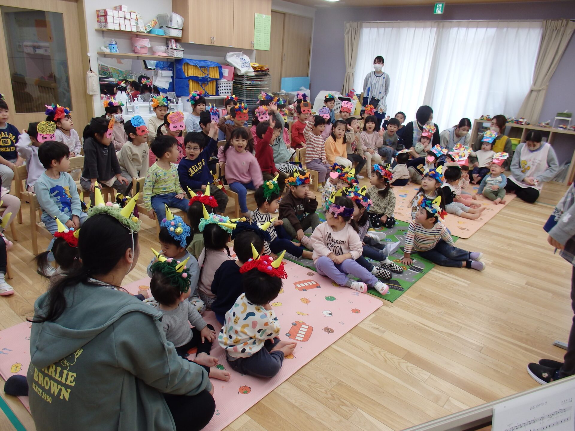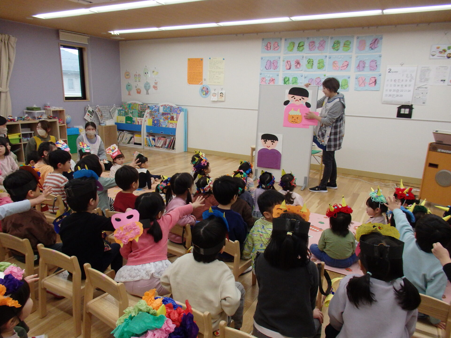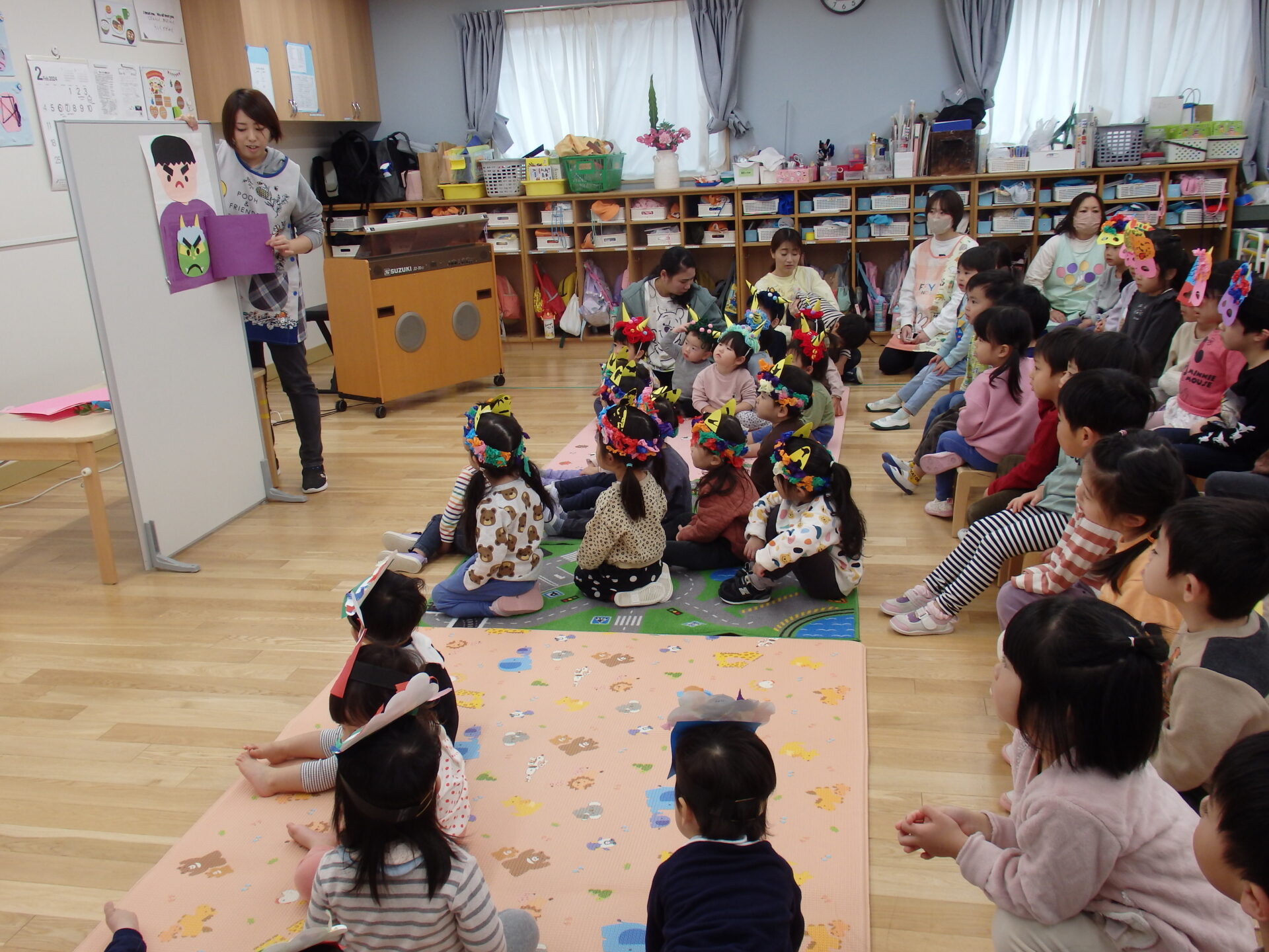 鬼さんと一緒に豆まきの歌も歌って、とても楽しい時間を過ごすことができました!