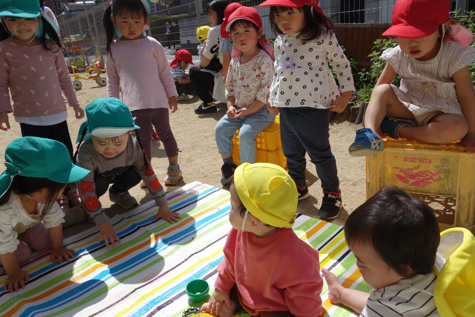 今日は2歳児のと3歳児のお友だちが「赤ちゃん見といてあげるから!」