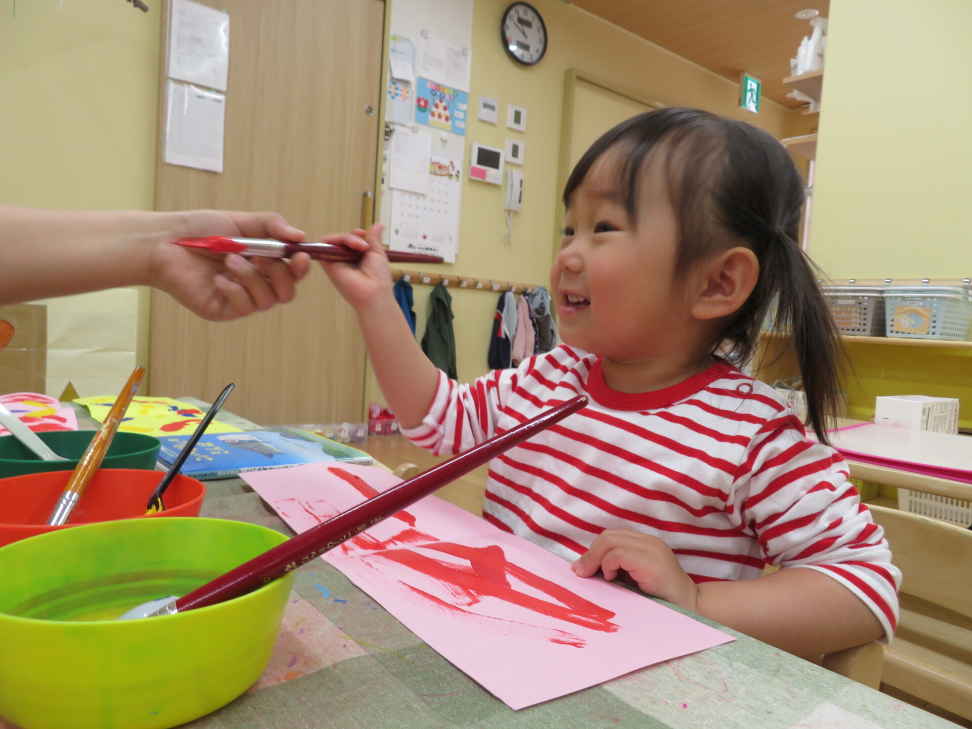 筆を使い、大胆に絵の具を画用紙につけていきます。
