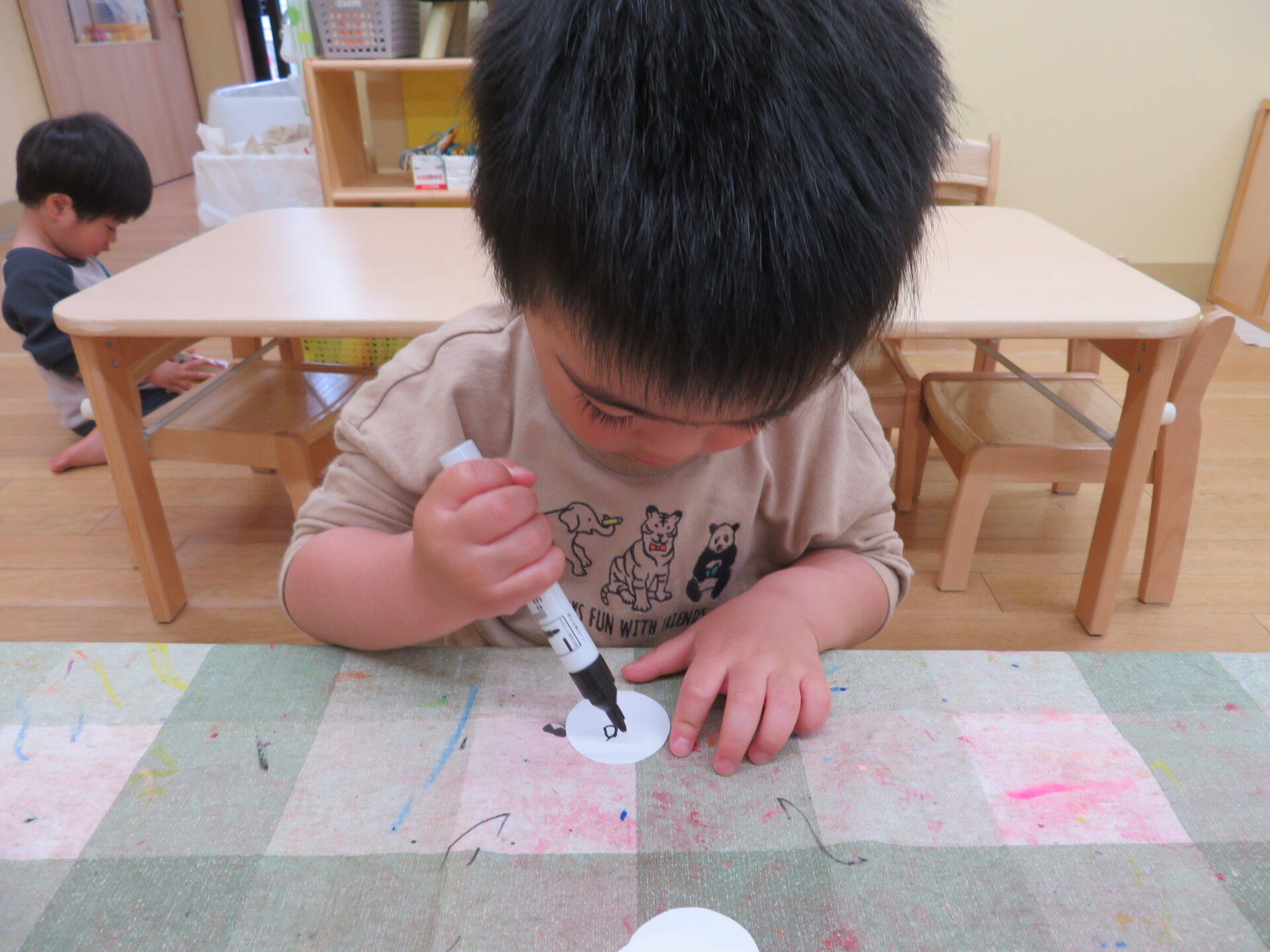 「次は、○○ちゃんだよ!やろう~!」と声を掛けられると、満面の笑みで椅子に座り、製作を始めていました。
