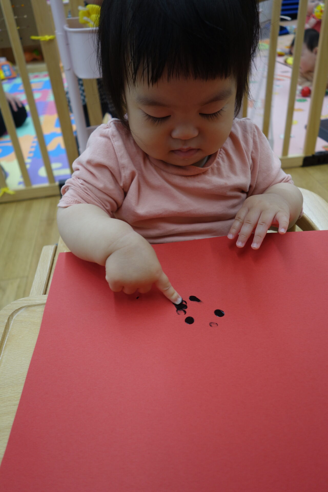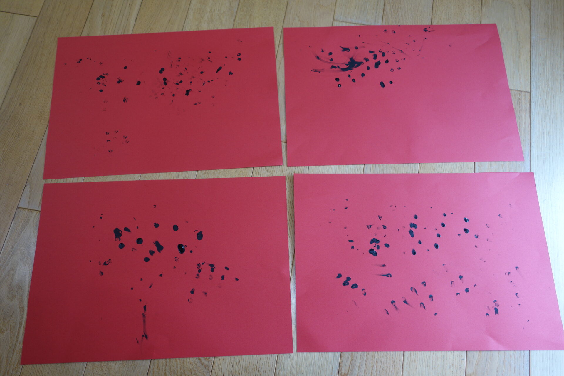 何度も画用紙をたたいて色をつけることを楽しんでいました。