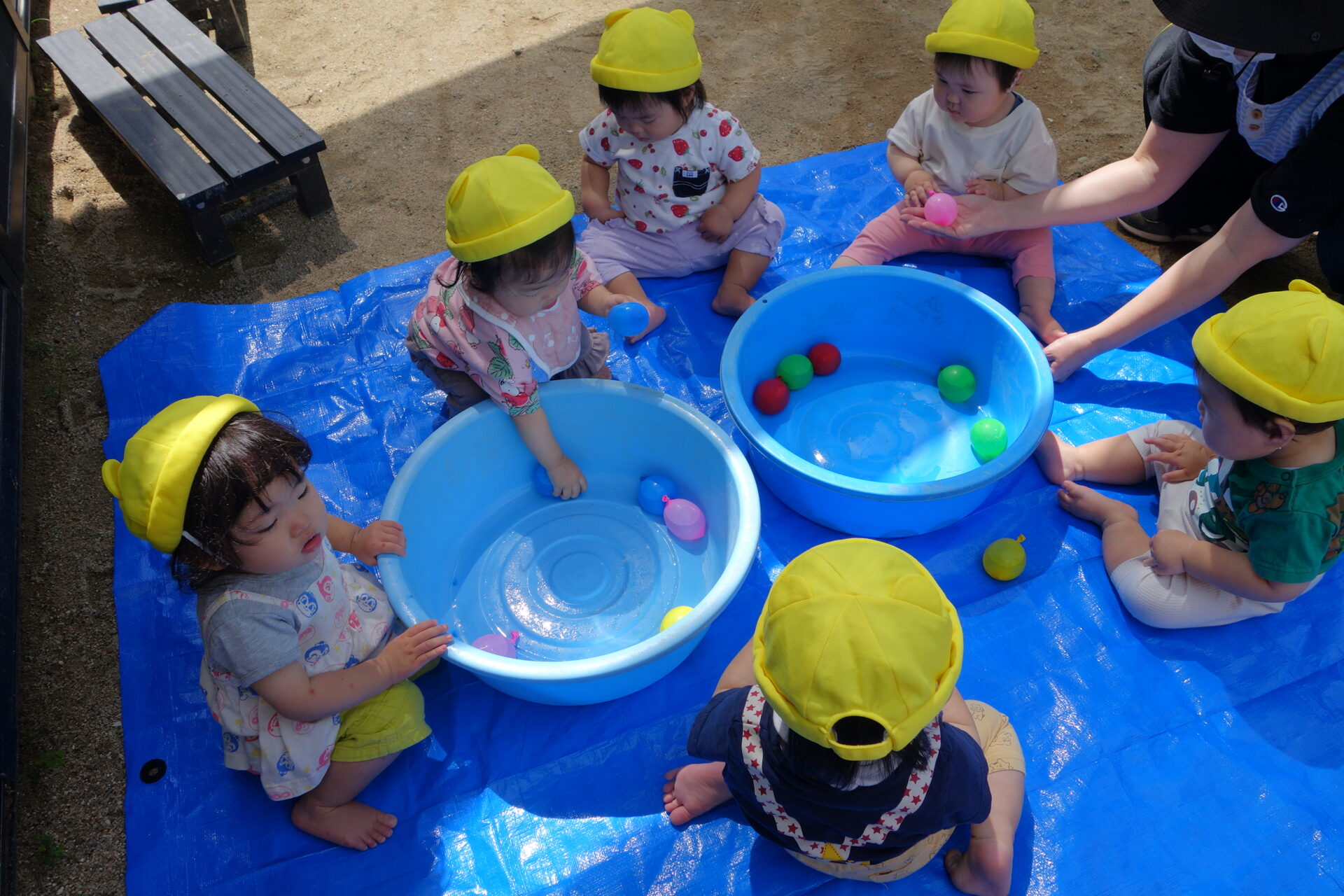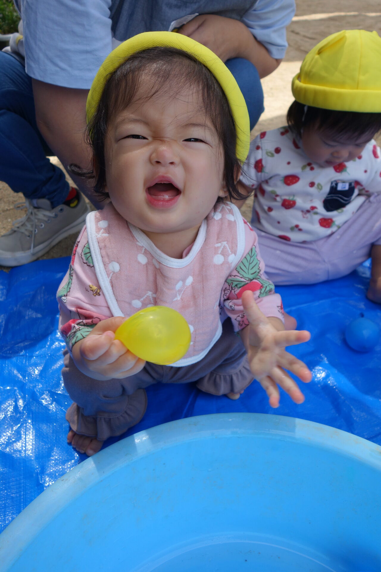 子ども達は嬉しそうに思いっきり握るので、いつ割れるか大人のほうがヒヤヒヤしました(笑)楽しく遊んでいたので水風船が割れる時もありましたが、子ども達はへっちゃらです!水が出てくると嬉しそうに水たまりになったところを触って遊んでいました。