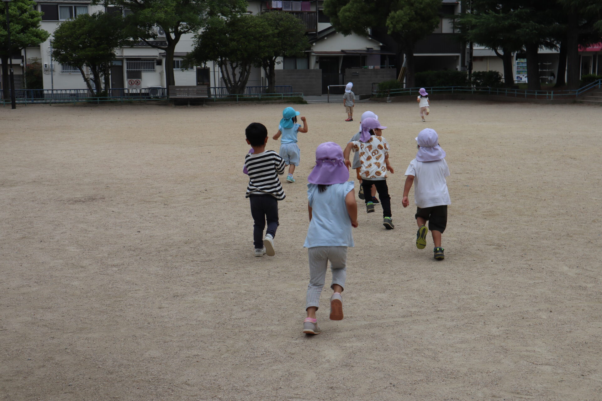 公園での遊び方やルールを聞き、いざ遊ぶ時間になると広場に向かって一直線に駆け抜けていく子ども達!