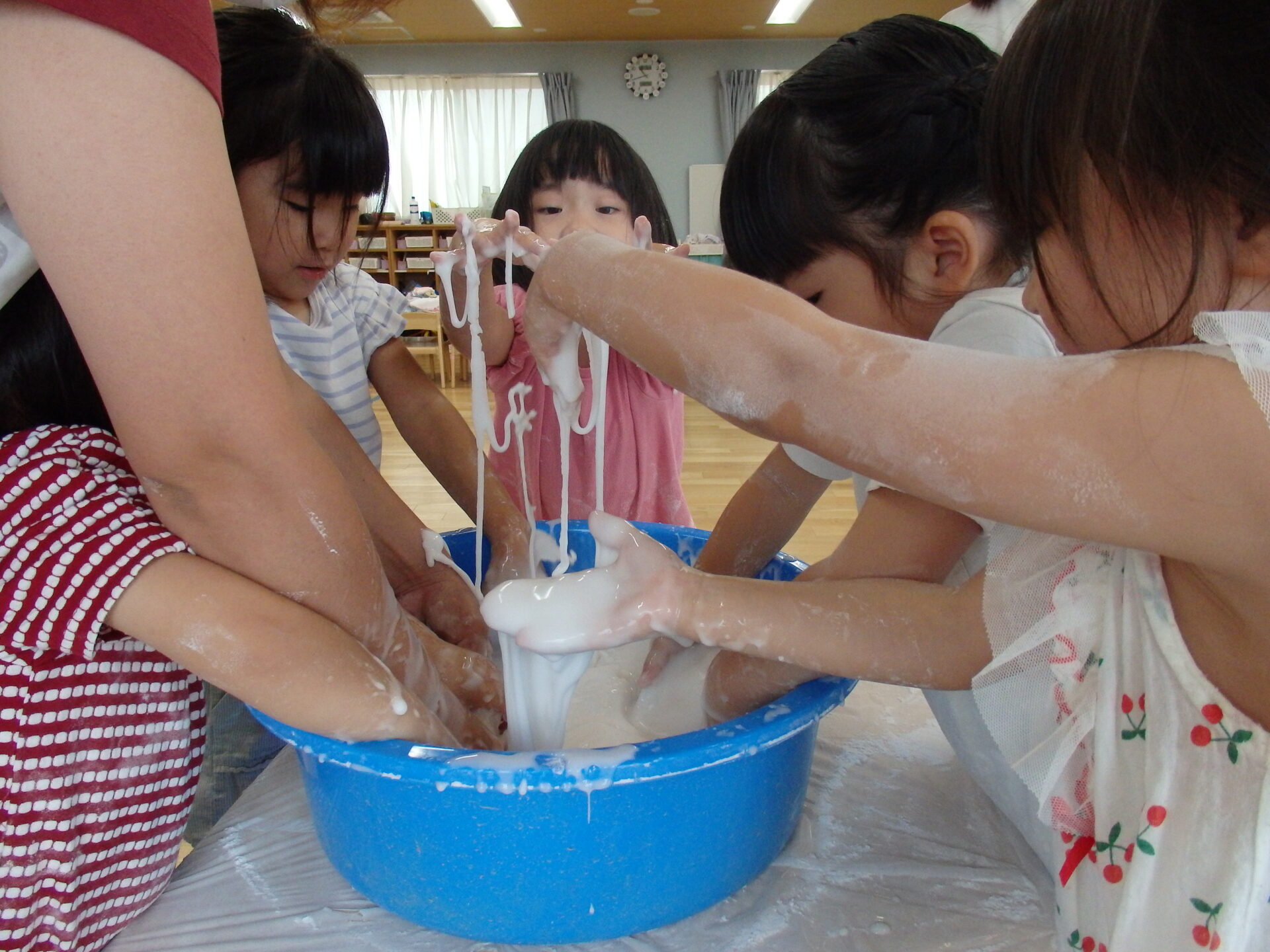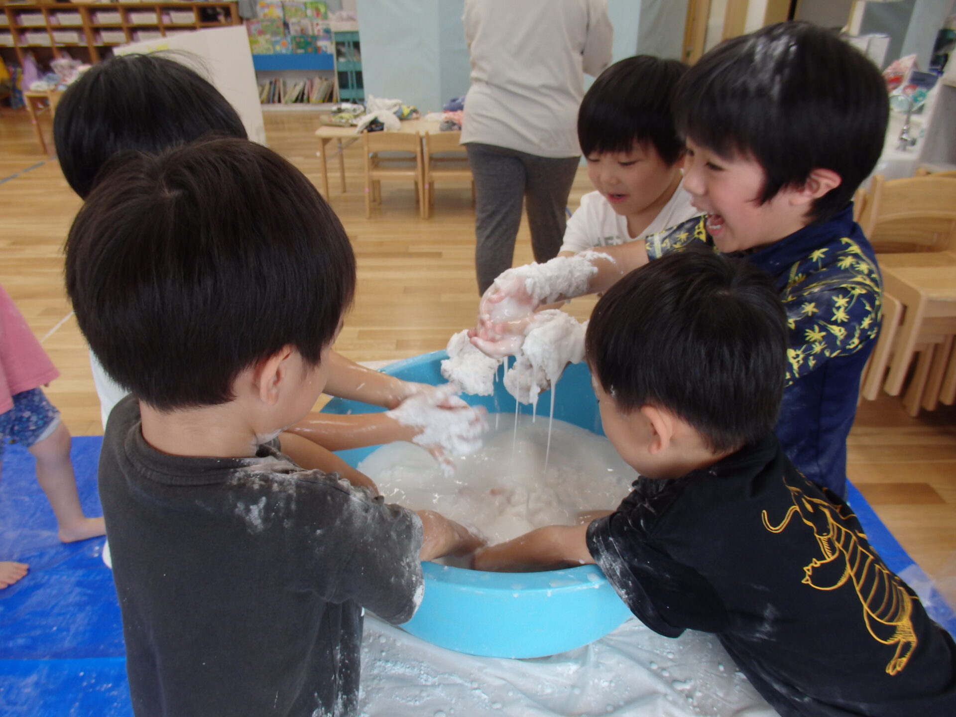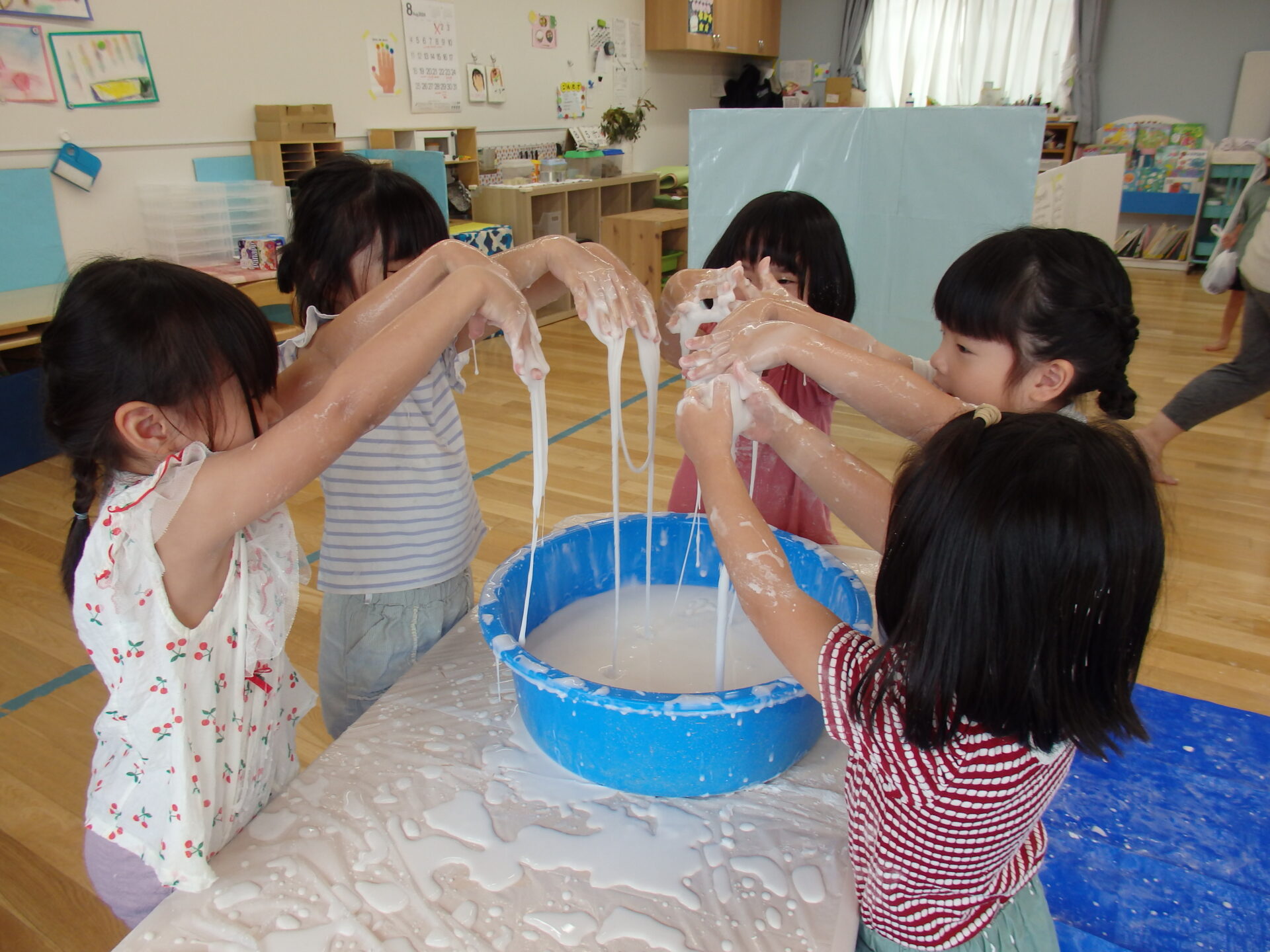 様々な夏の遊びを楽しんでいるくじら組さんですが、今月は様々な実験にも挑戦しています。