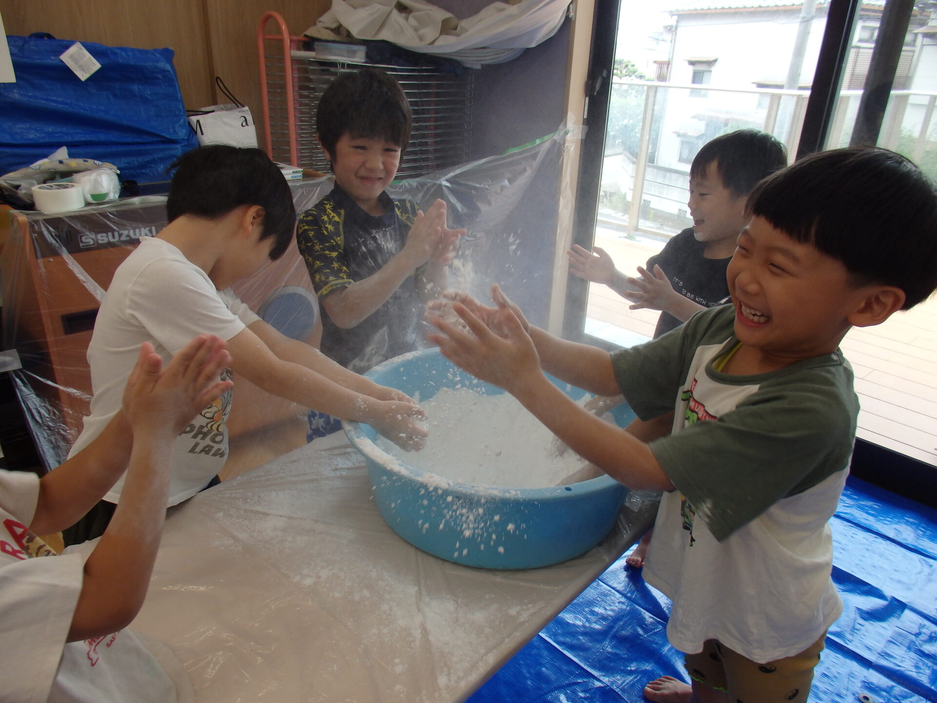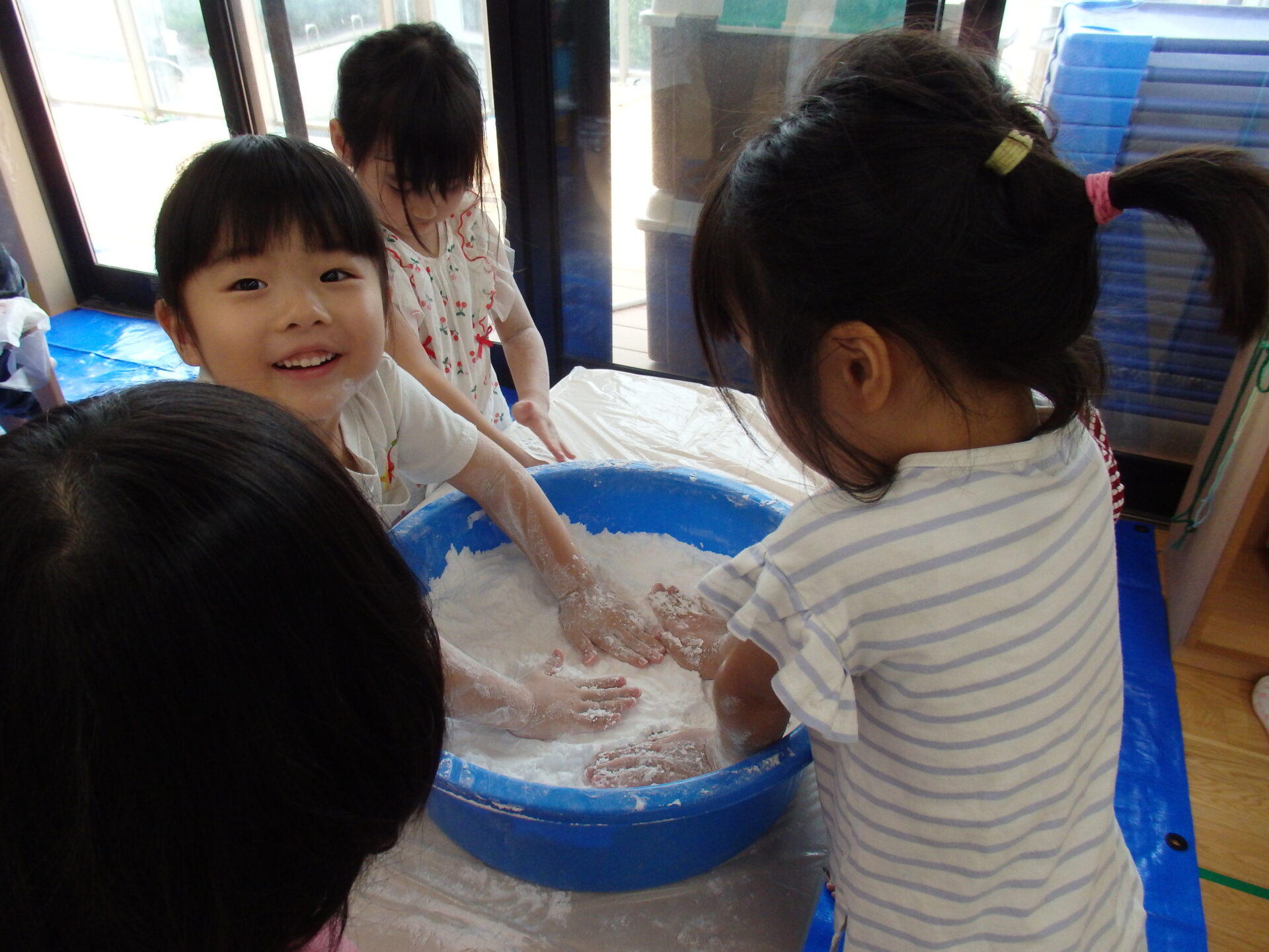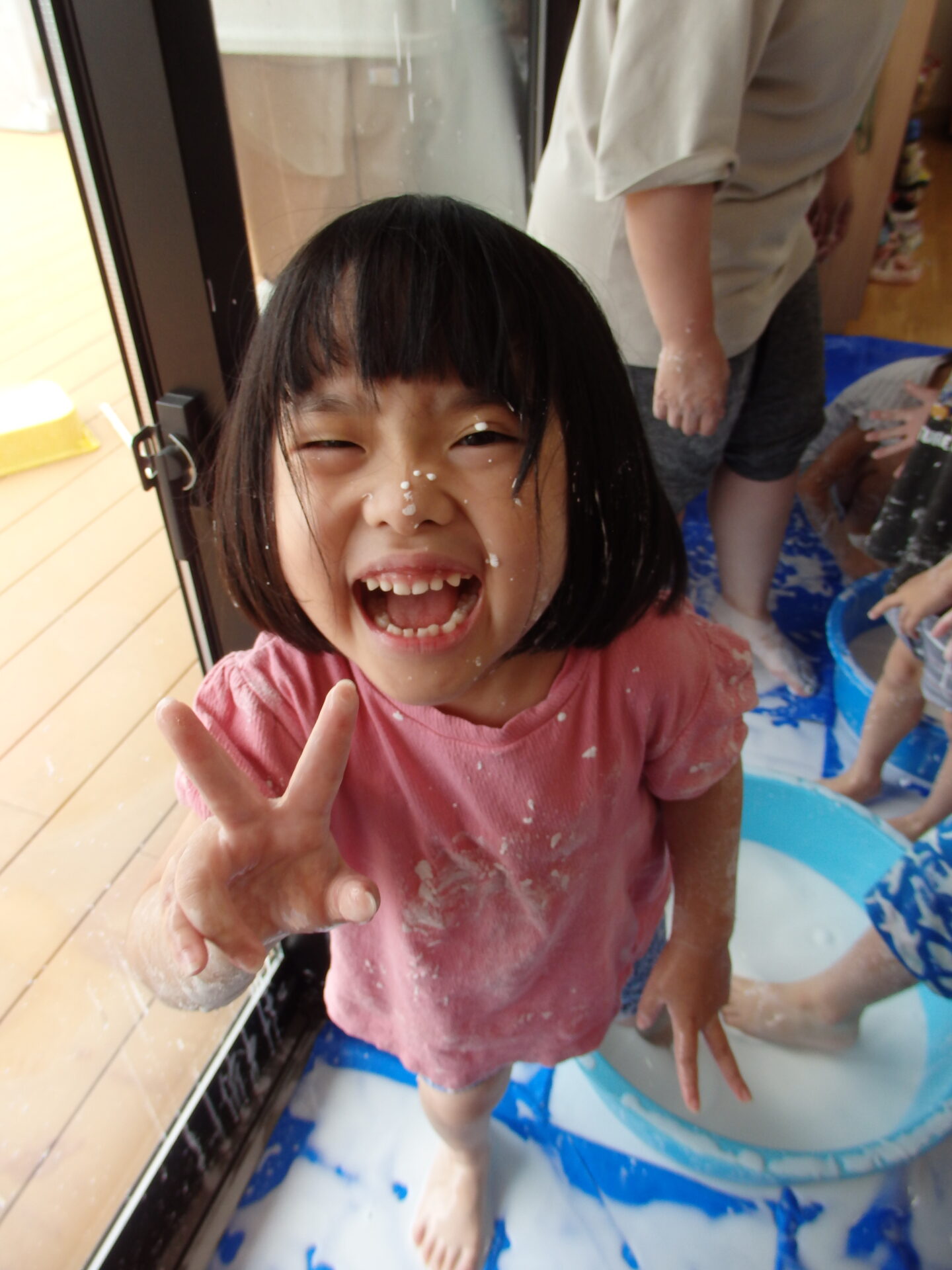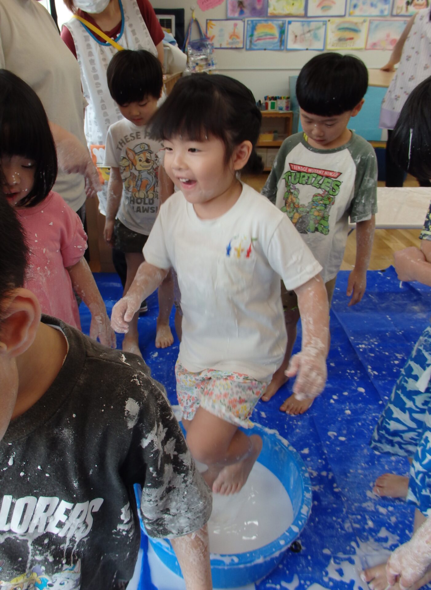 様々な夏の遊びを楽しんでいるくじら組さんですが、今月は様々な実験にも挑戦しています。