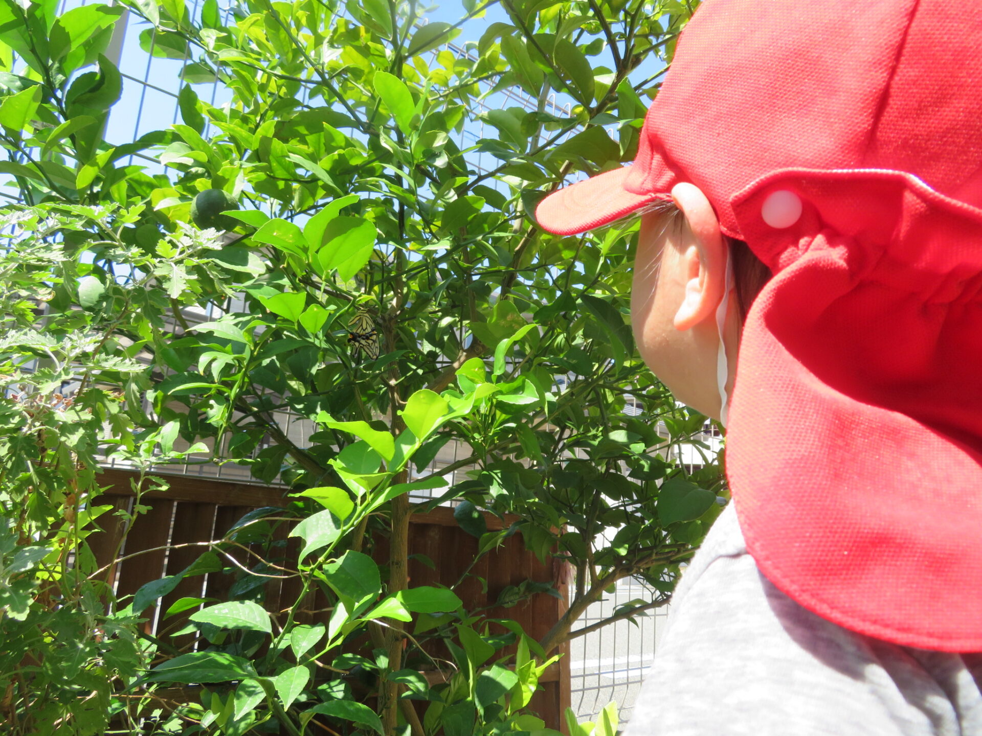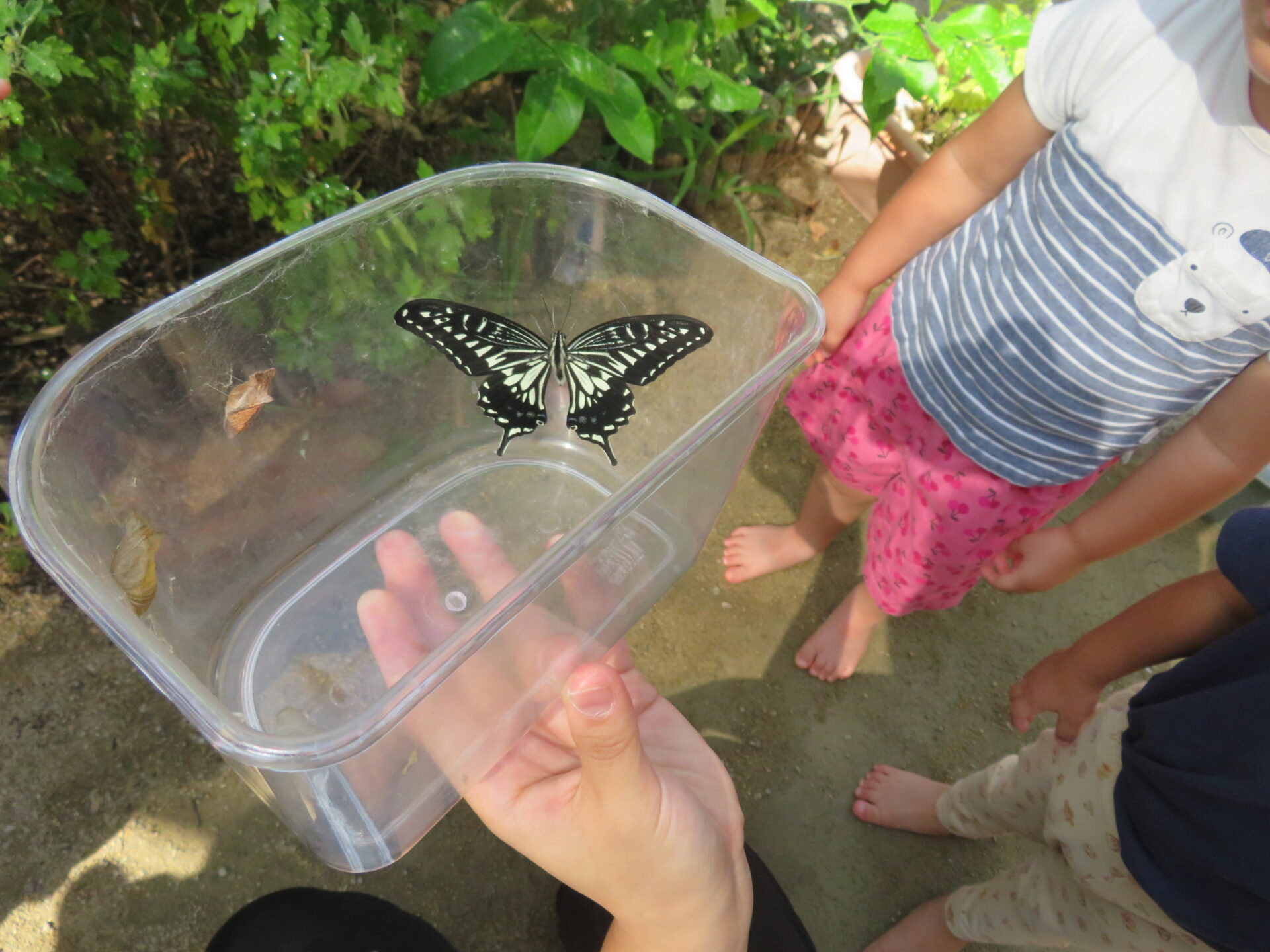 飛び立ったアゲハ蝶の姿を見守りながら、少し寂しそうな子ども達でした。