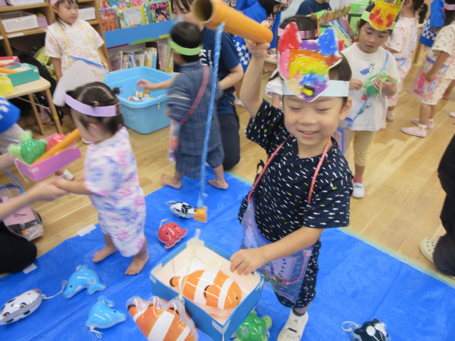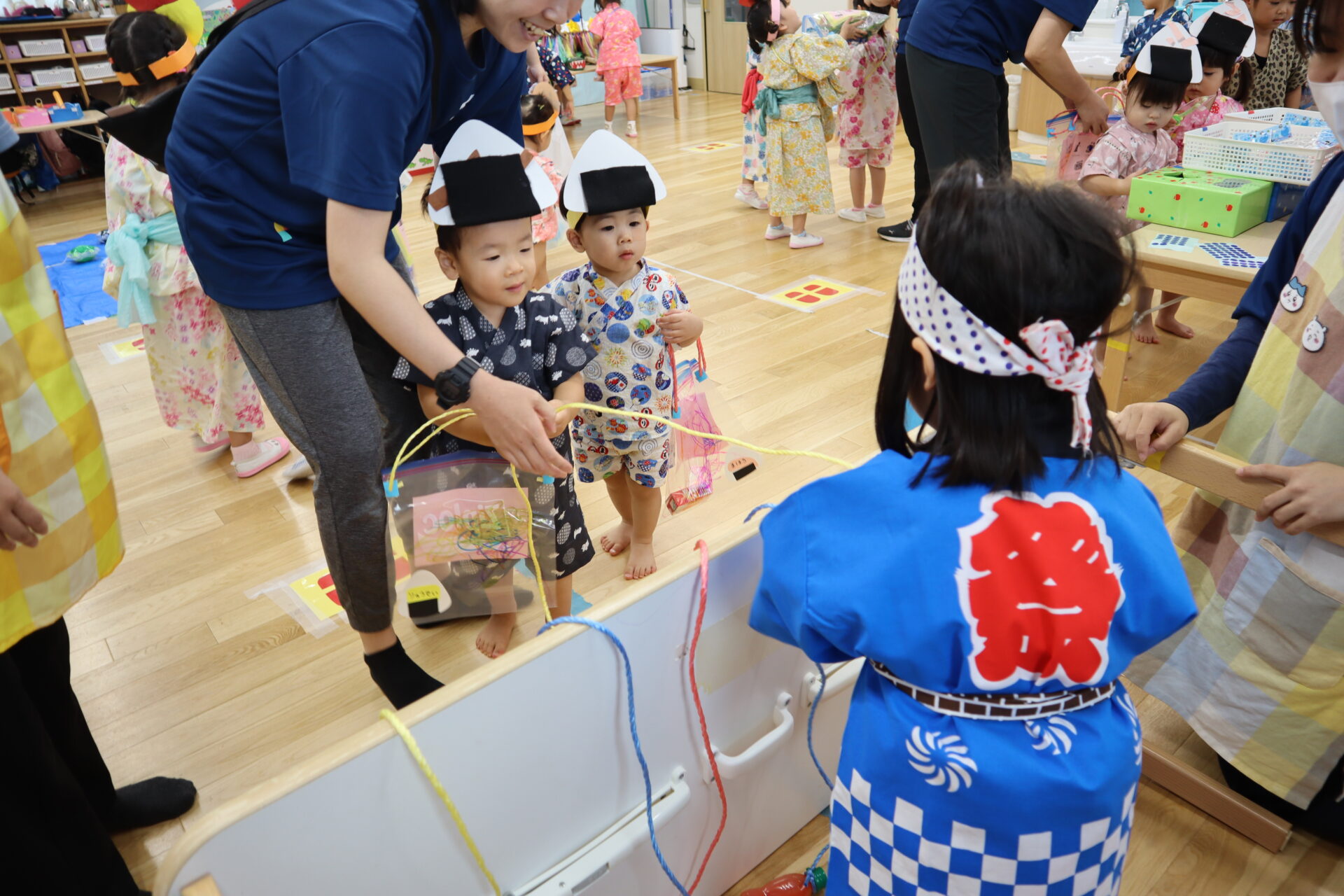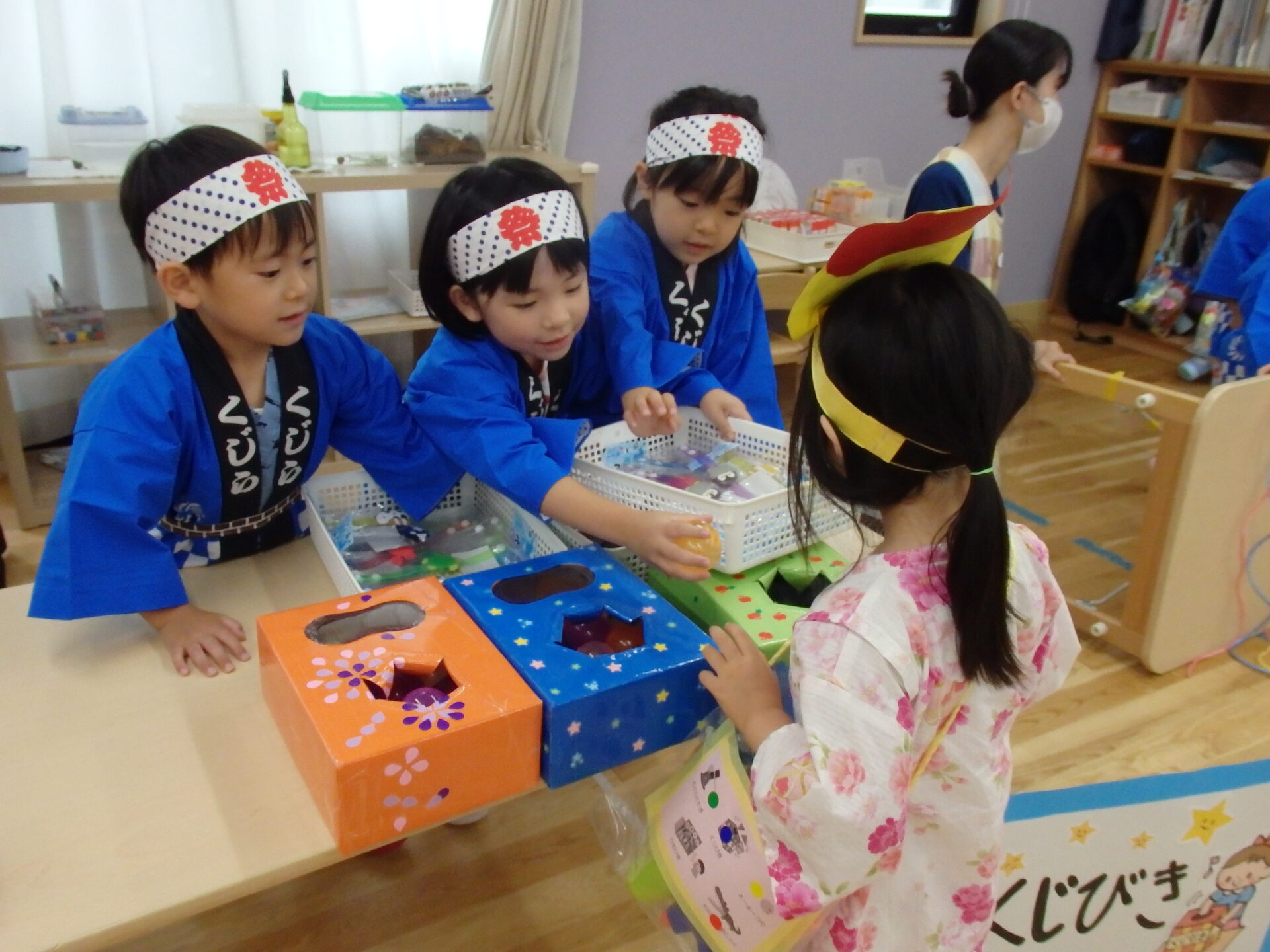 全クラスの子が楽しみに来ていたので、わにわにパニックやくじ引きでは、小さい組のお客さんがやってくると・・・