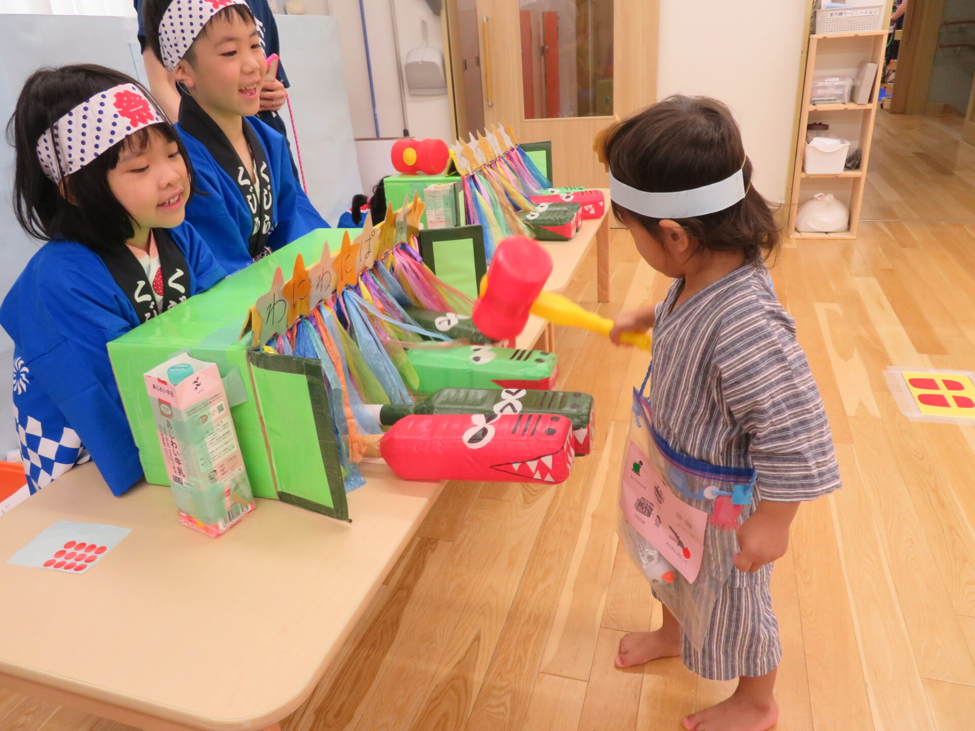 わにわにパニック・もぐらたたき・ひも引き・くじ引き・ヨーヨー釣りの5つのブースを開店!