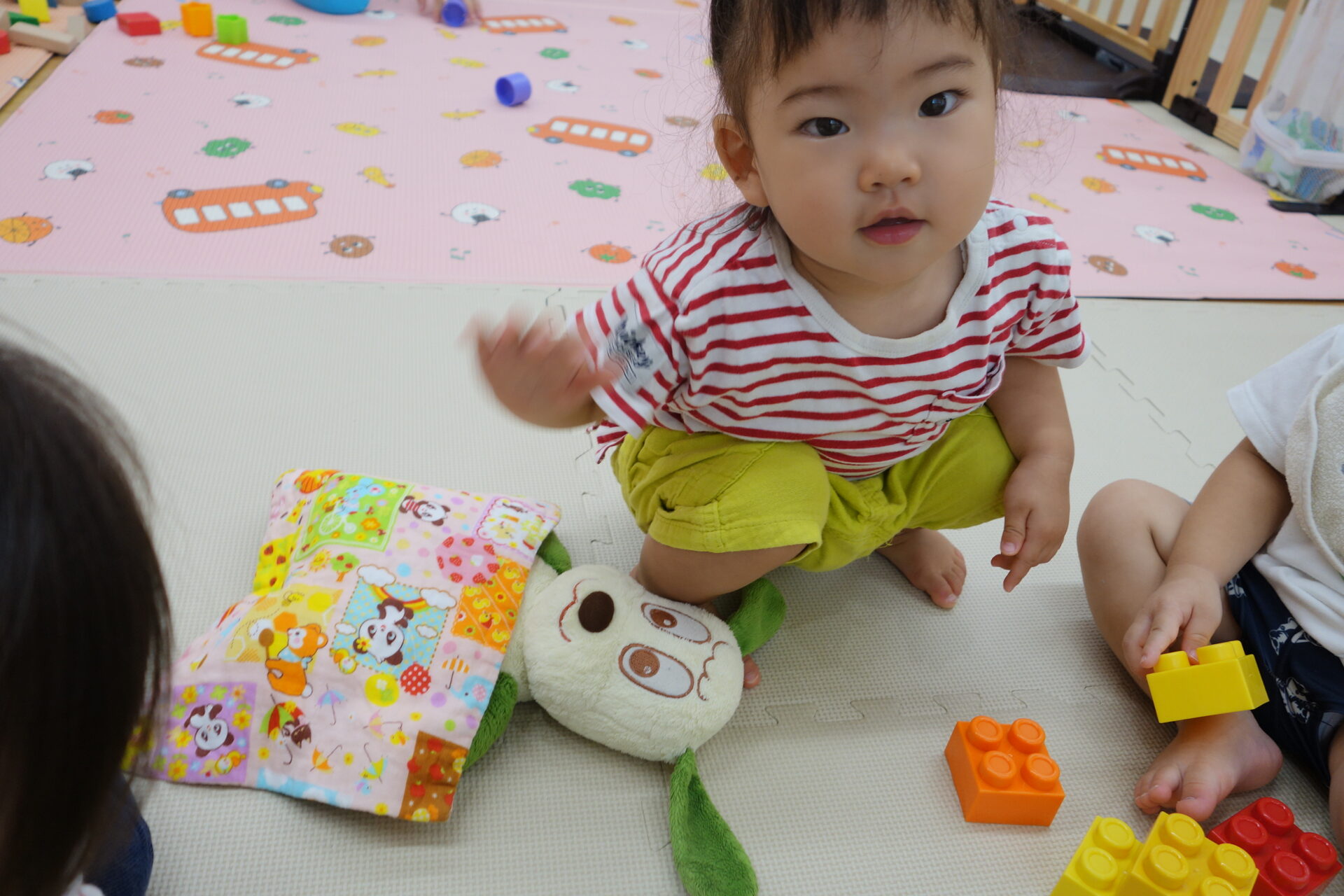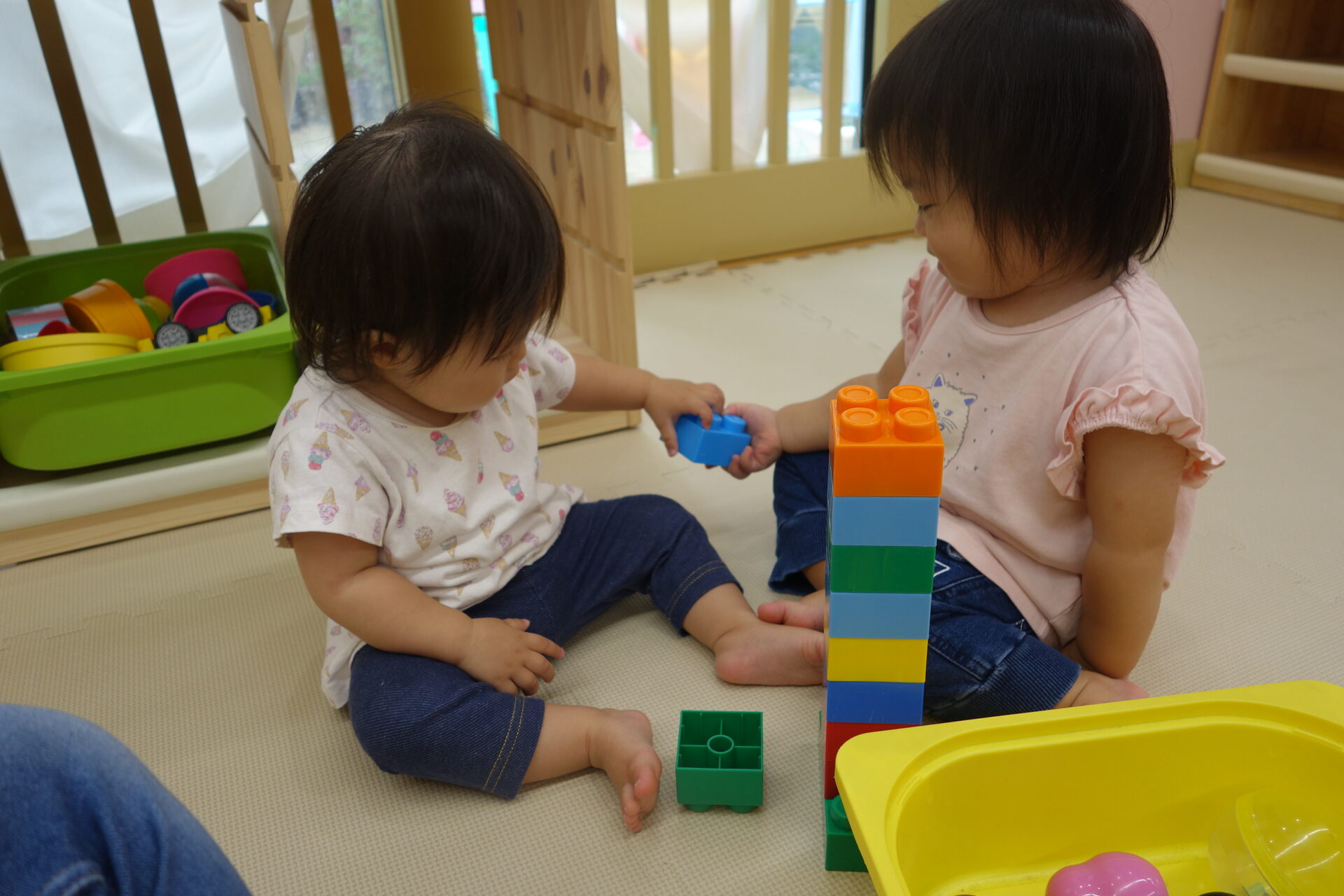 遊んでいるとうちに、お友達に「はい!」とブロックを渡す係、高く積み上げる係にに分かれて協力して作りはじめていたので、保育士もびっくりです。