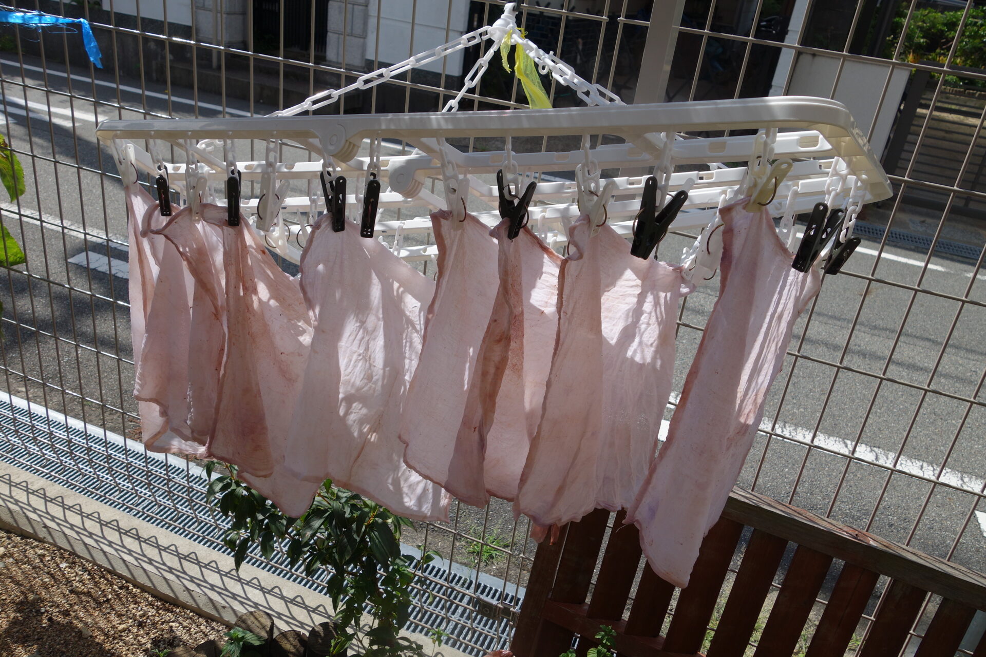 お洗濯が終わったら乾かします。良いお天気なのですぐに乾きました!