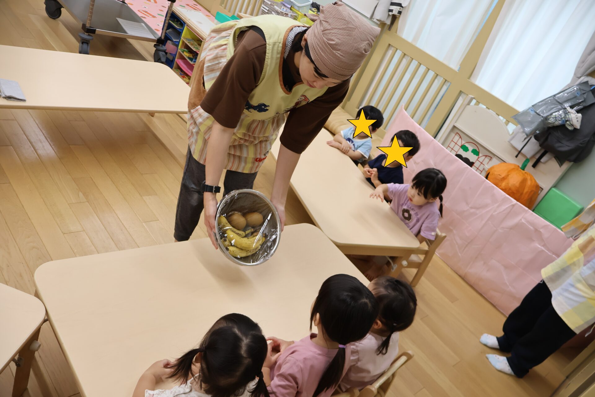 登園してくるとすぐに「せんせー、きょうじゅーしゅ?」と聞く程、楽しみにしてくれていた子ども達。