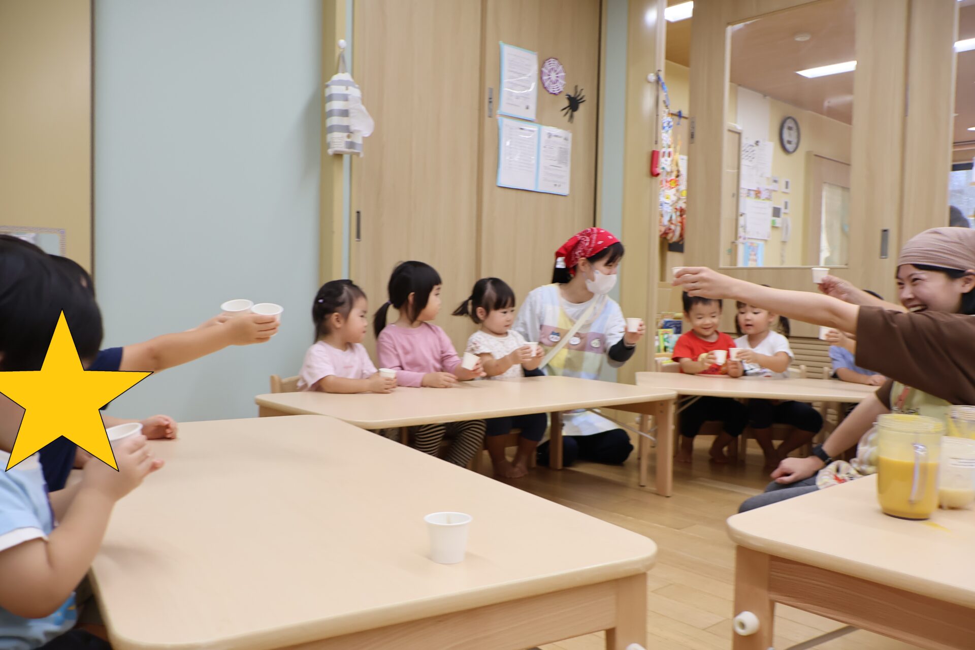 普段のおままごとでの遊びのように、お隣の友だちともカンパイをしている姿もありました🍻