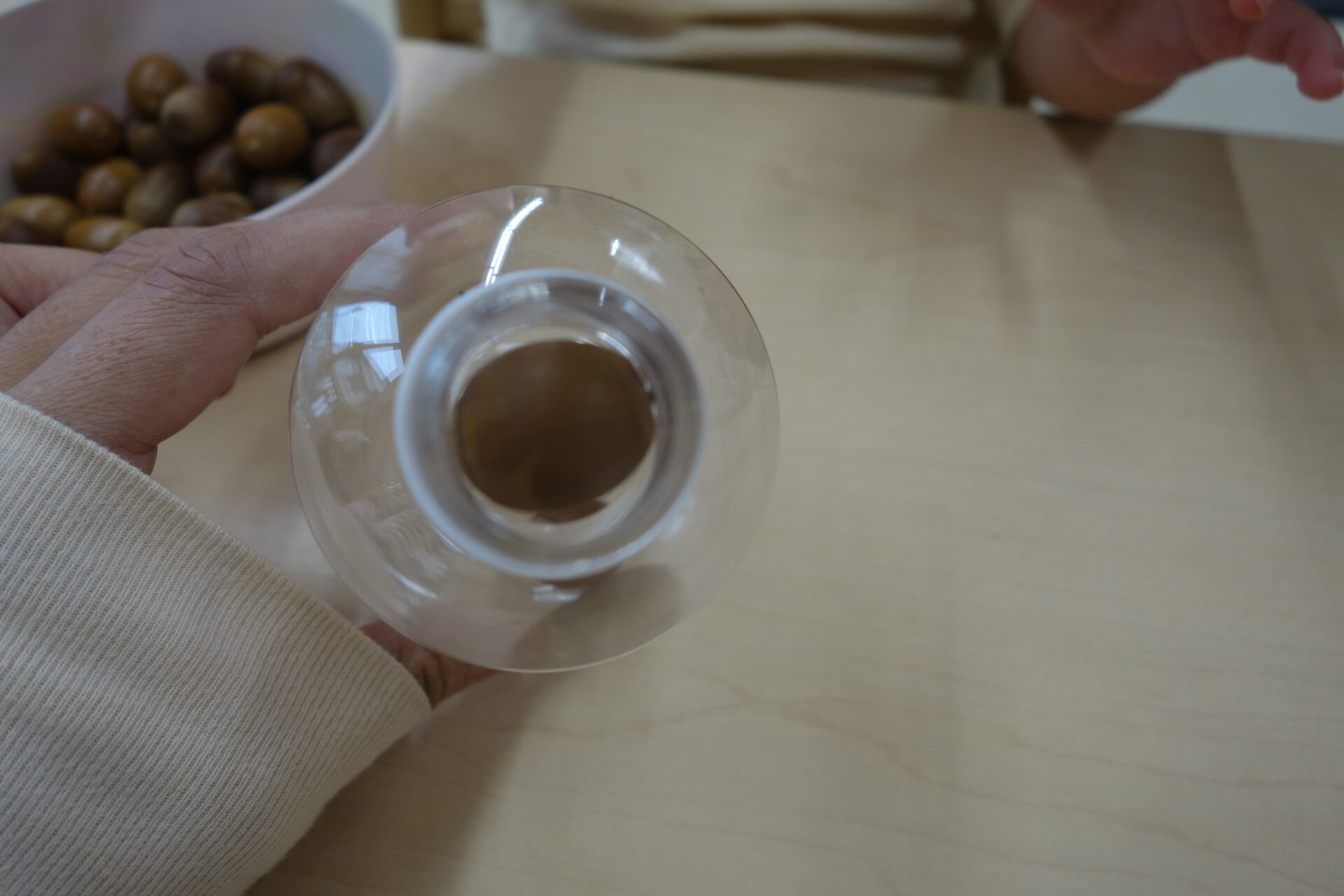 すると、困った表情になるお友だちがいました。どうしたのかな?と見てみると中でどんぐりが詰まっていました。