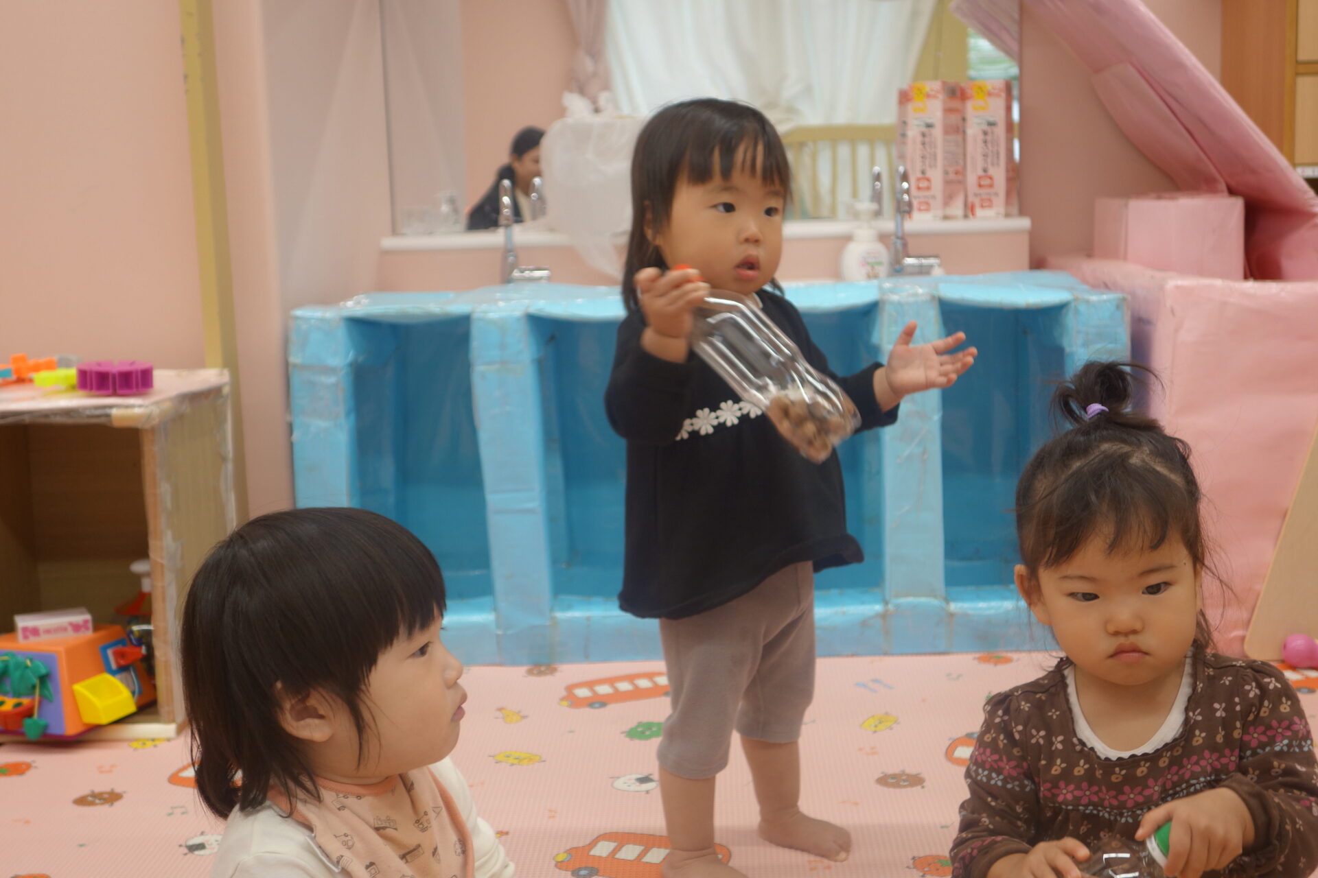 真剣に取り組んだので、できた時の喜びも倍増です!一個入るたびに保育士の顔を見て嬉しそうに拍手をして喜ぶお友達もいましたよ。