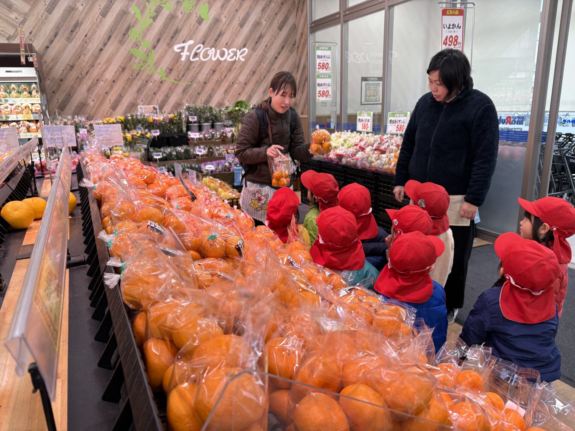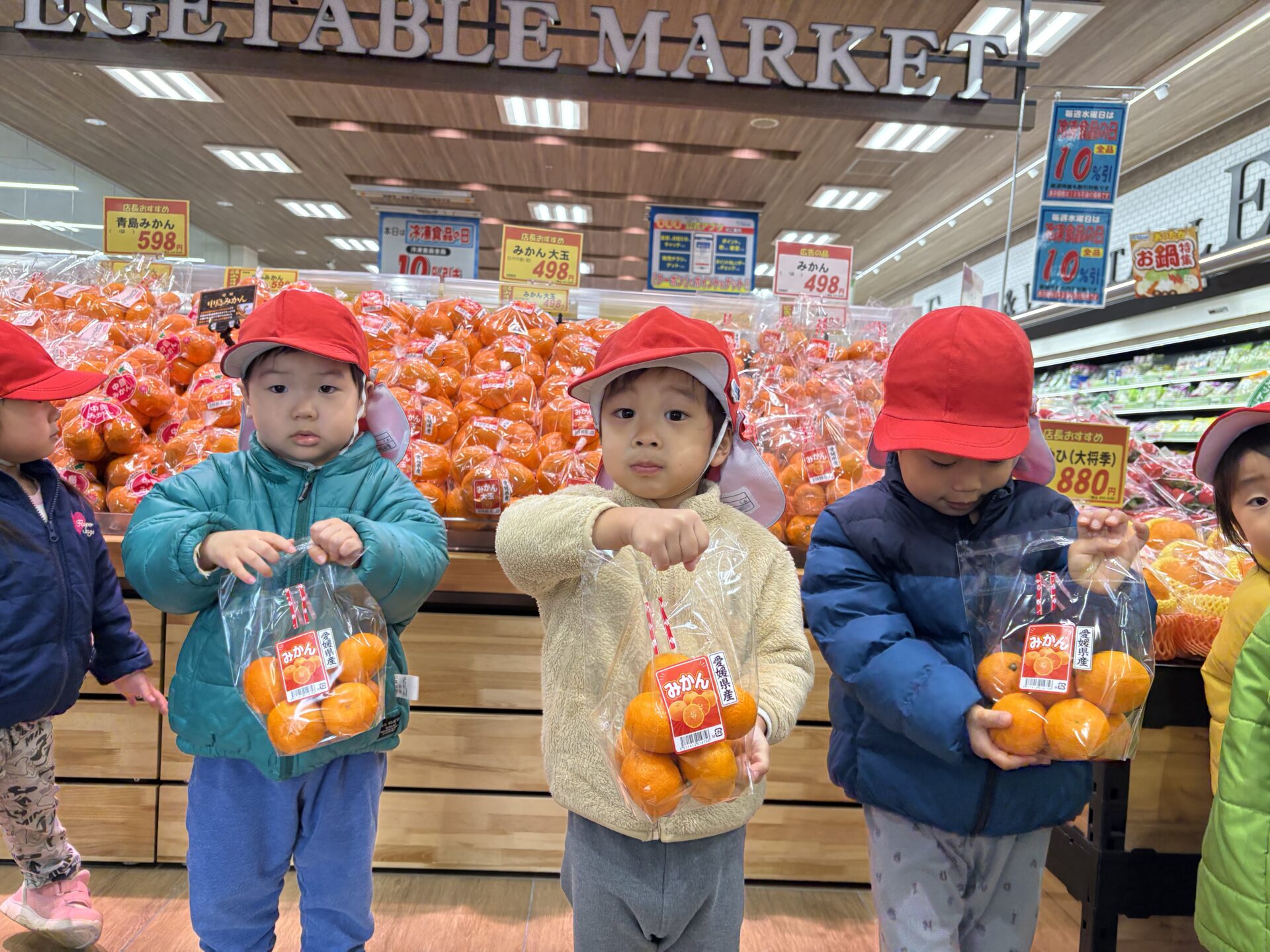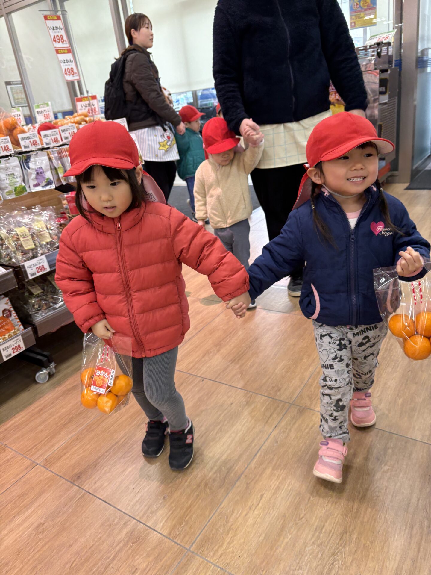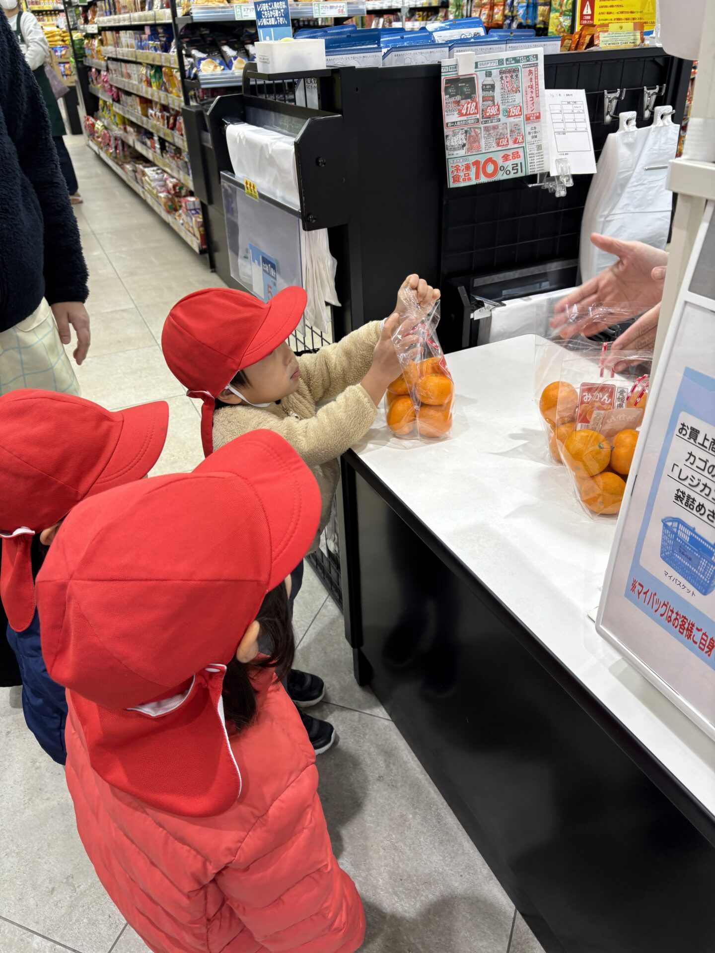 みかんを棚から取る担当、レジまで運ぶ担当、お会計担当に分かれてみんなで協力してお買い物をしました😊お買い物の流れもわかってきて上手に分担することができるようになってきました‼︎