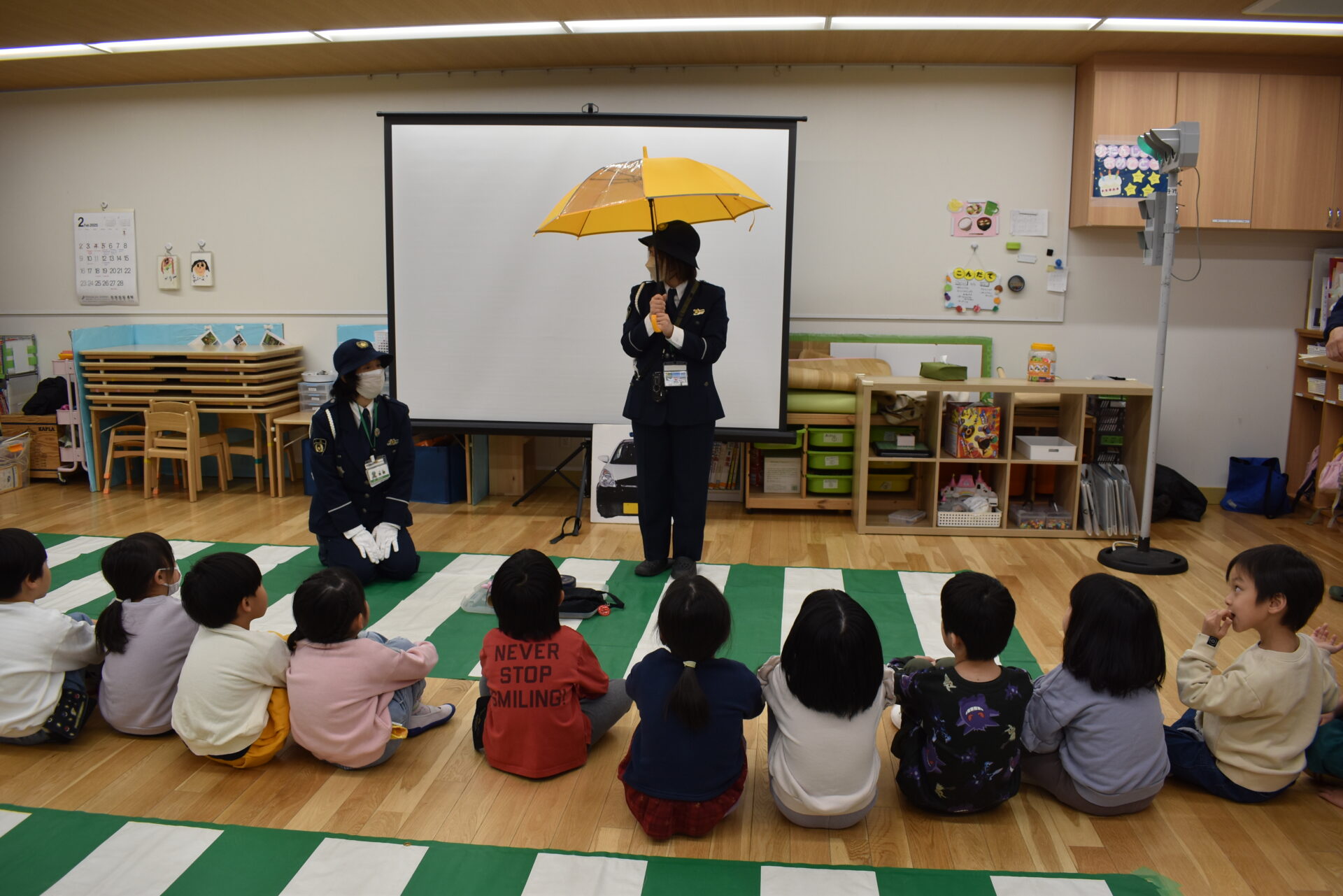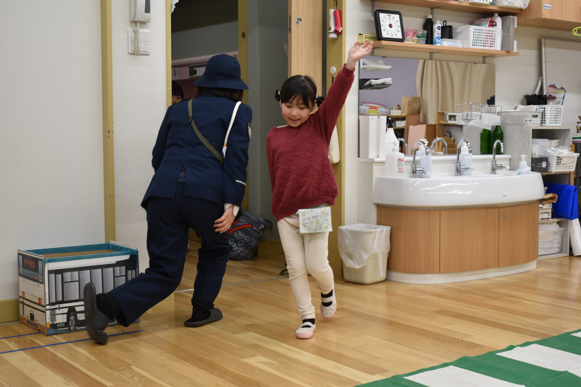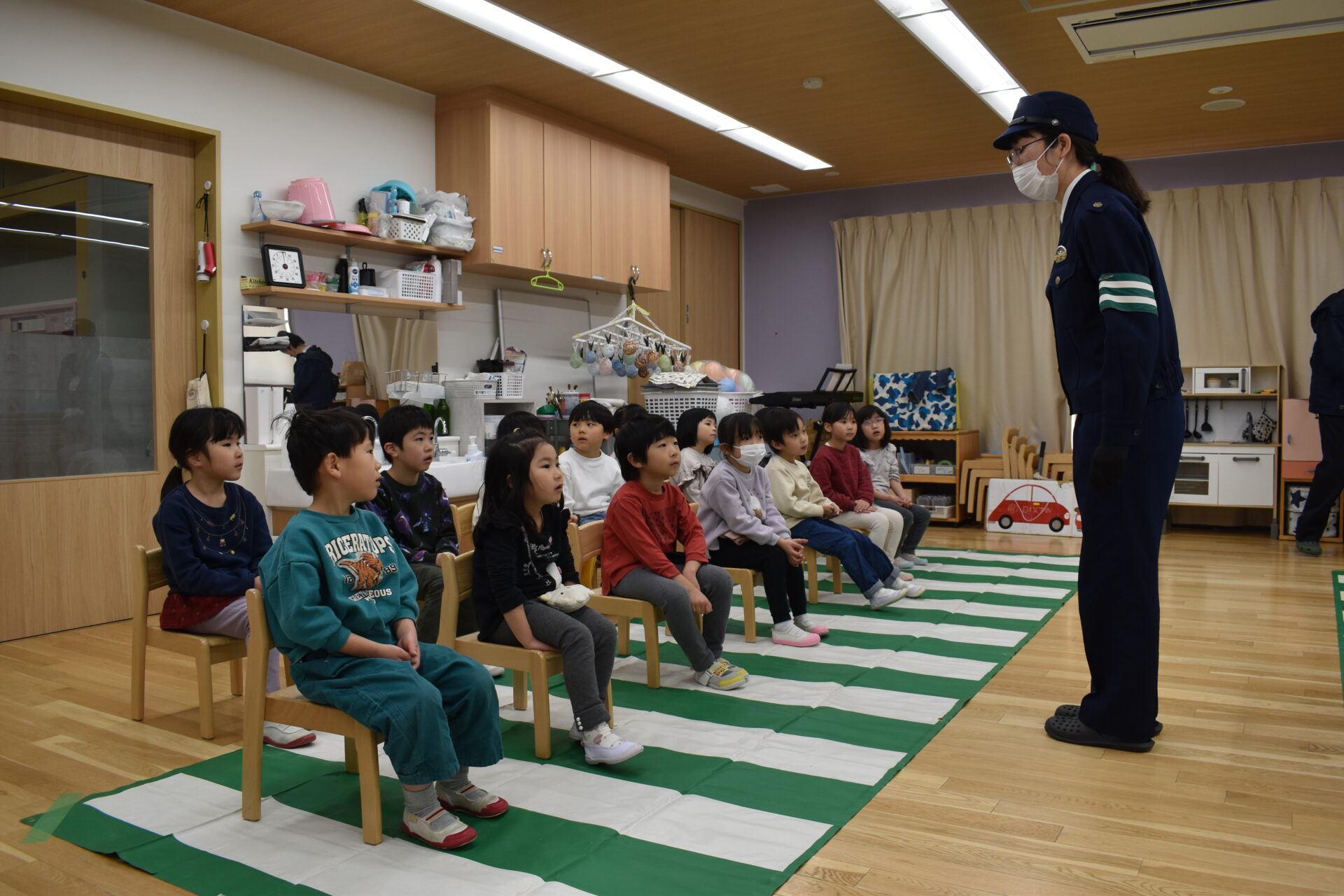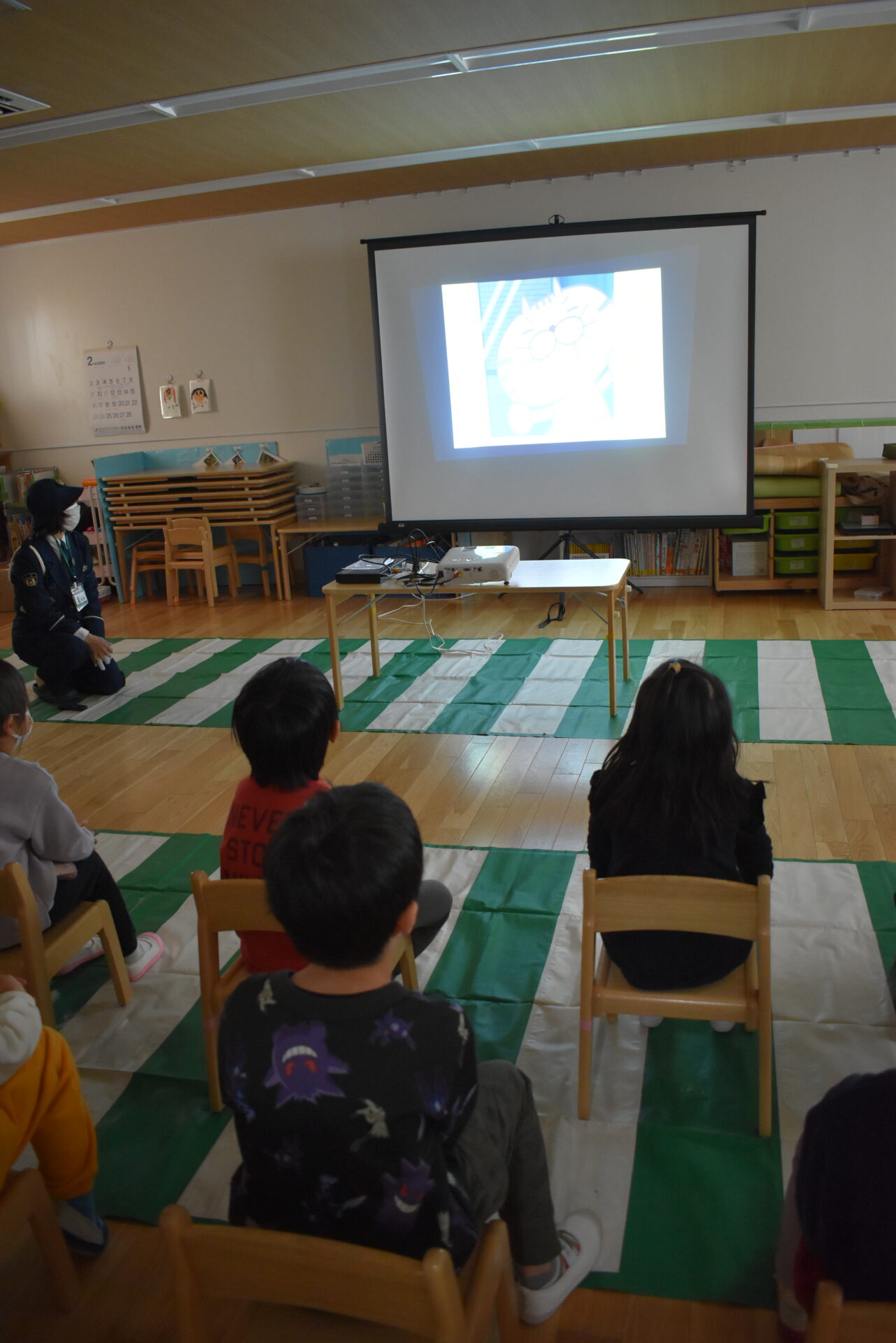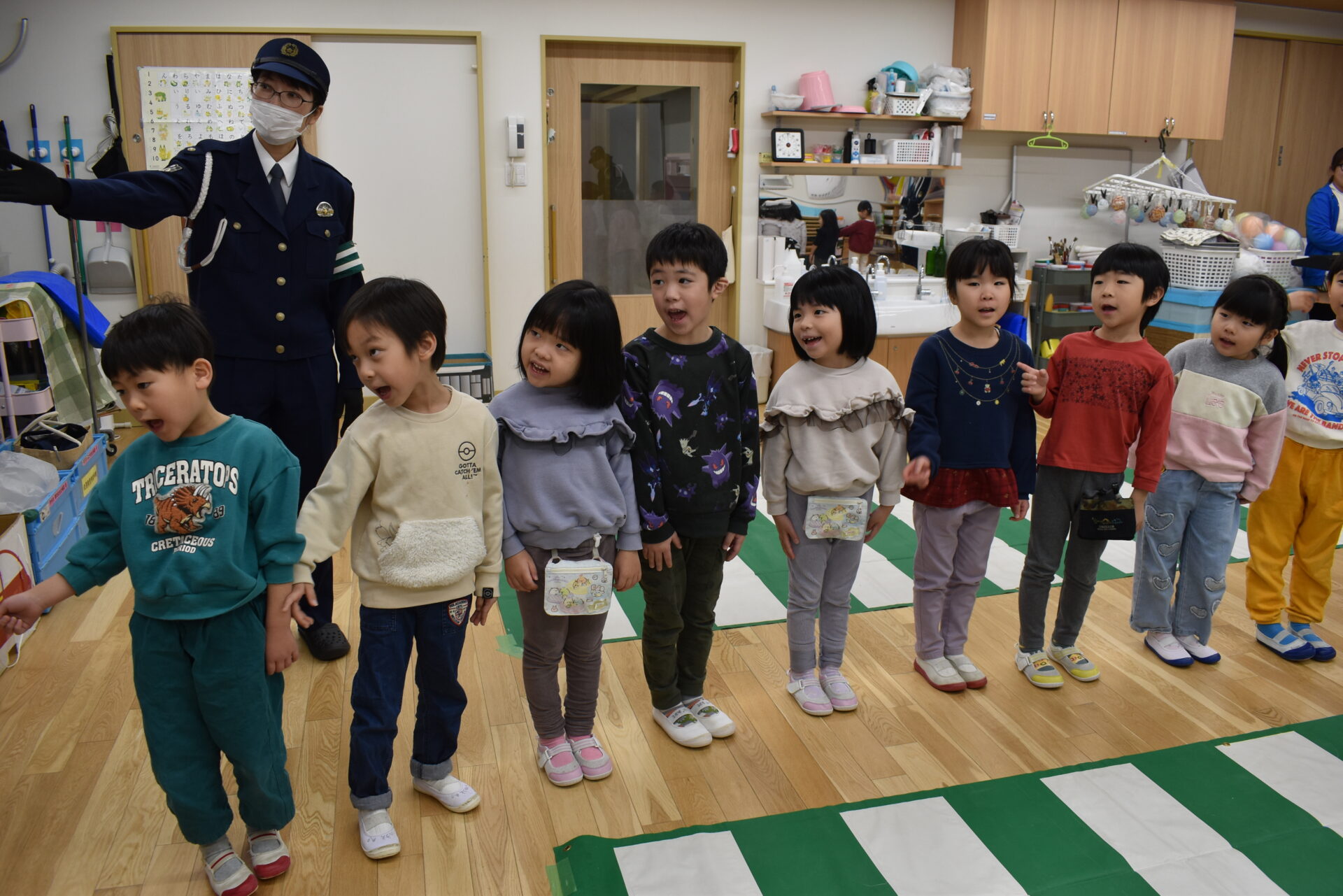 「今日は本物のおまわりさんが来るんだよ‼」と朝から楽しみにしていた子ども達。